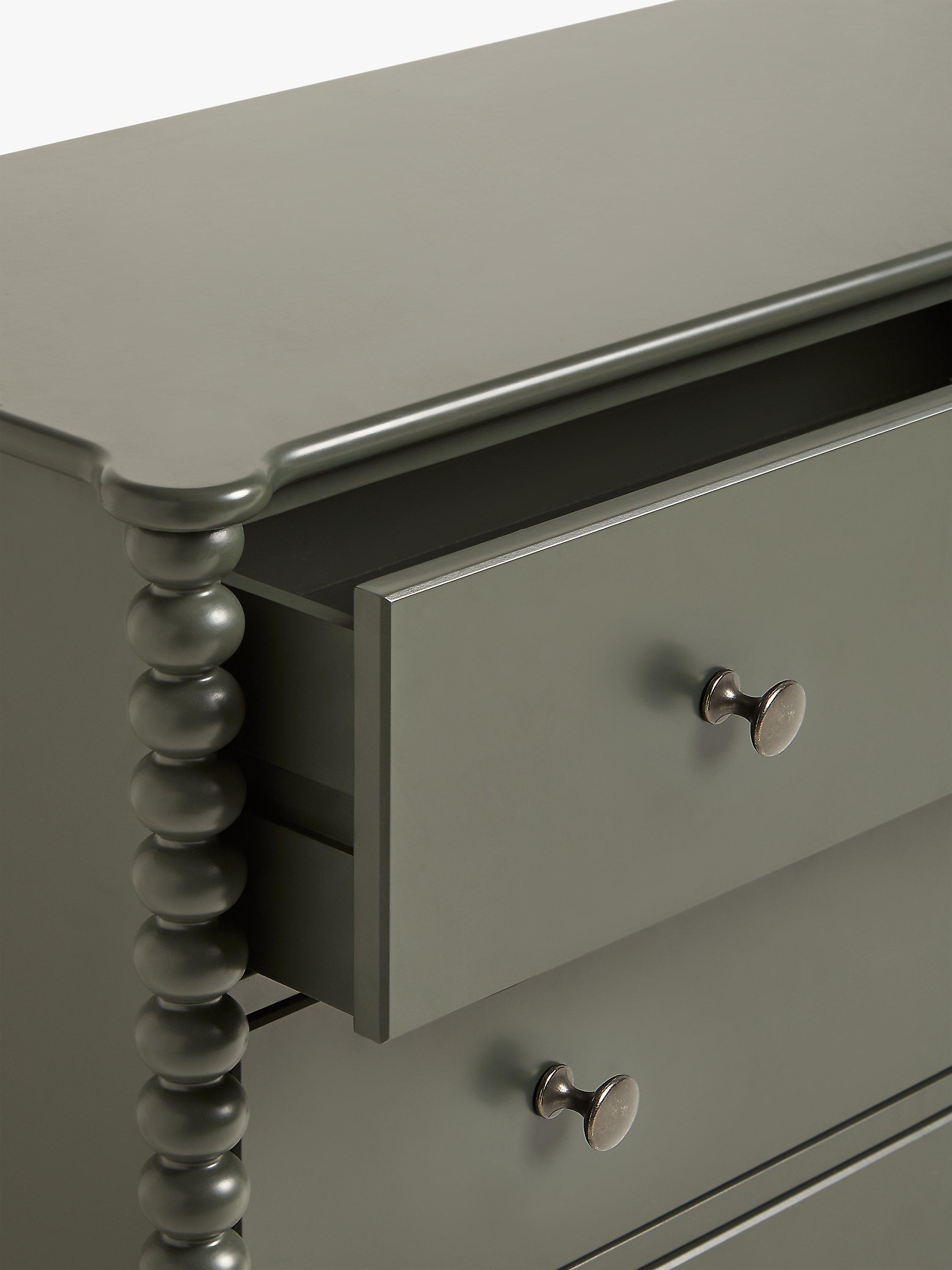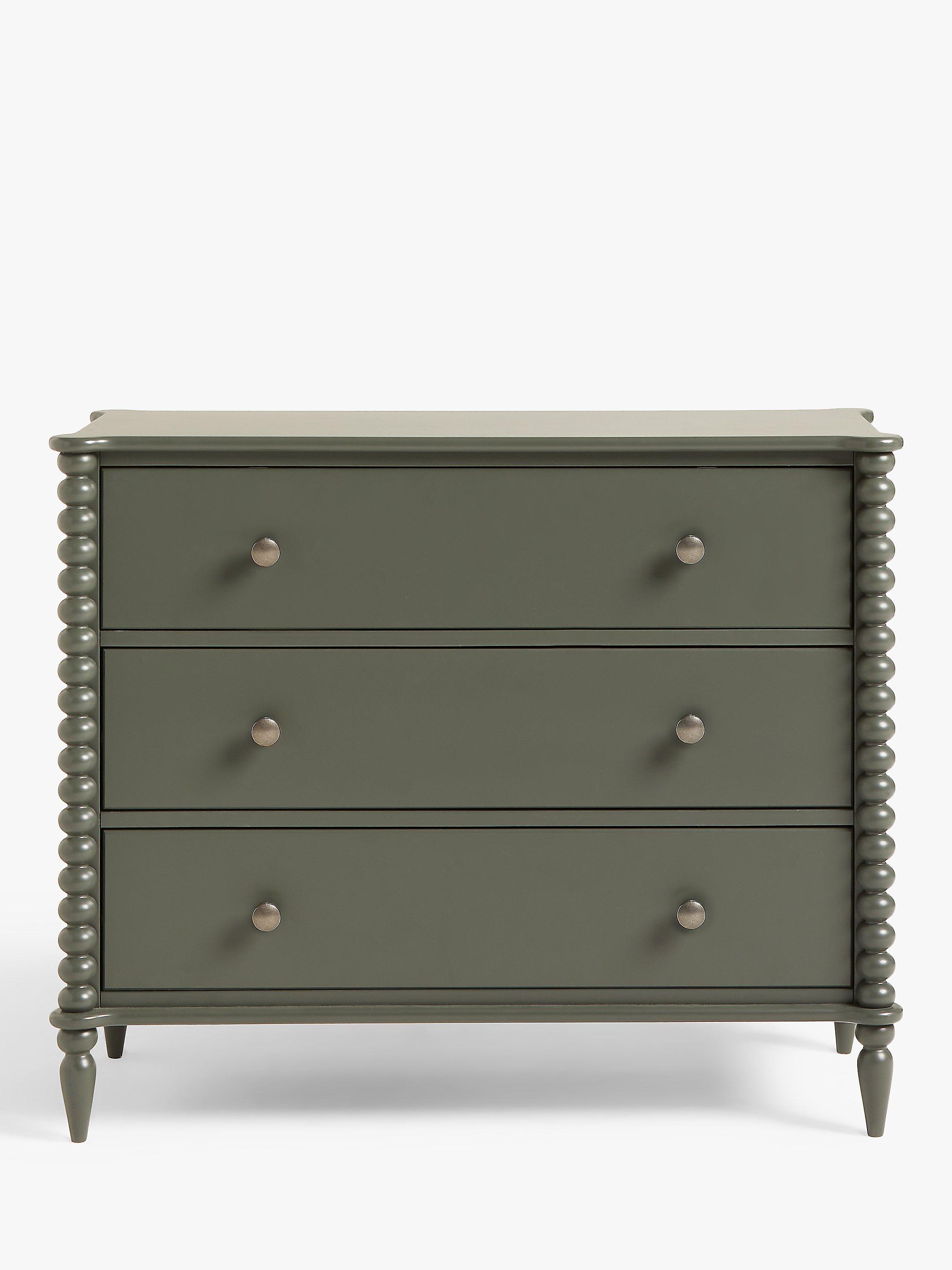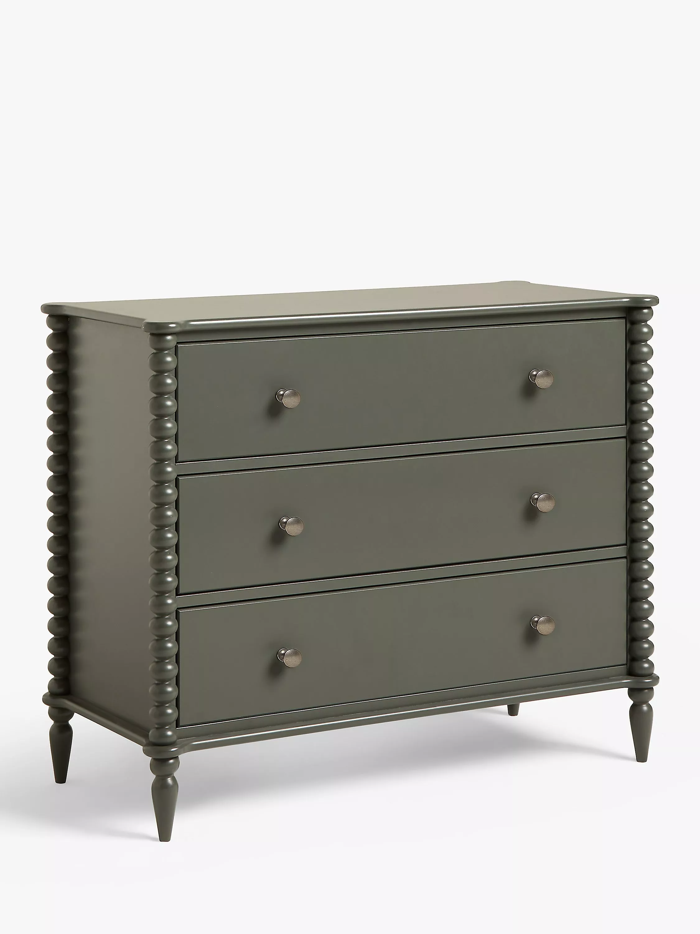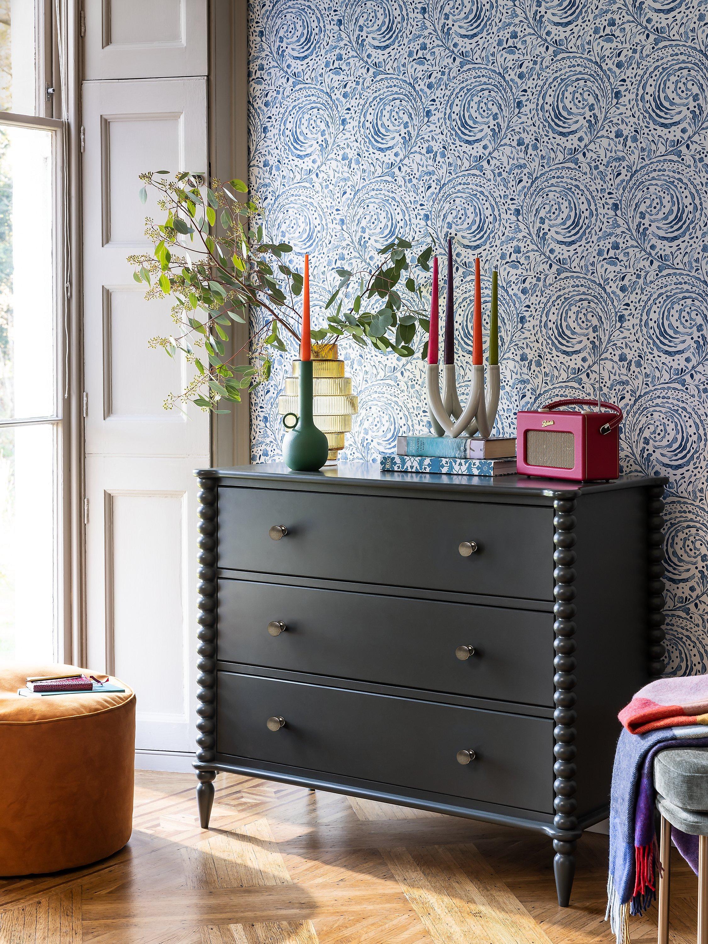 A revival of eclectic 17th century designs, our Bobbin range of furniture will bring a heritage feel back into your home. Decorative design points are awarded for this painted chest's round bobbin legs and shapely frame, which adds character and charm, and it's also impressively sturdy thanks to a combination of high-quality rubberwood and MDF. Complete with three deep drawers, who said storage had to be boring? This one is practically sized and a perfect amount of playful.