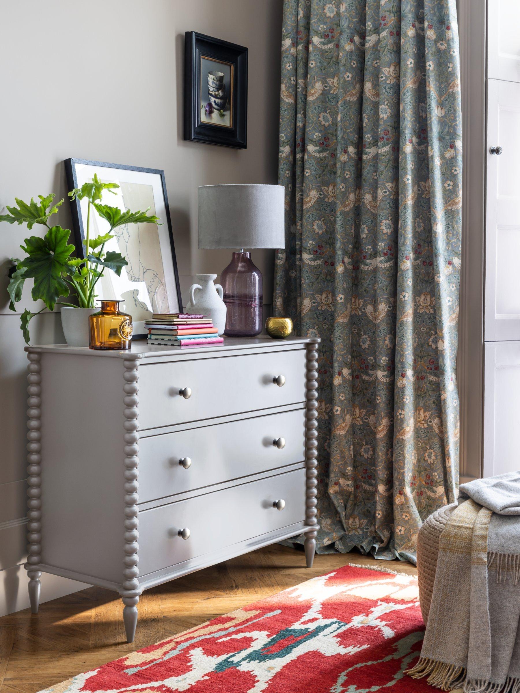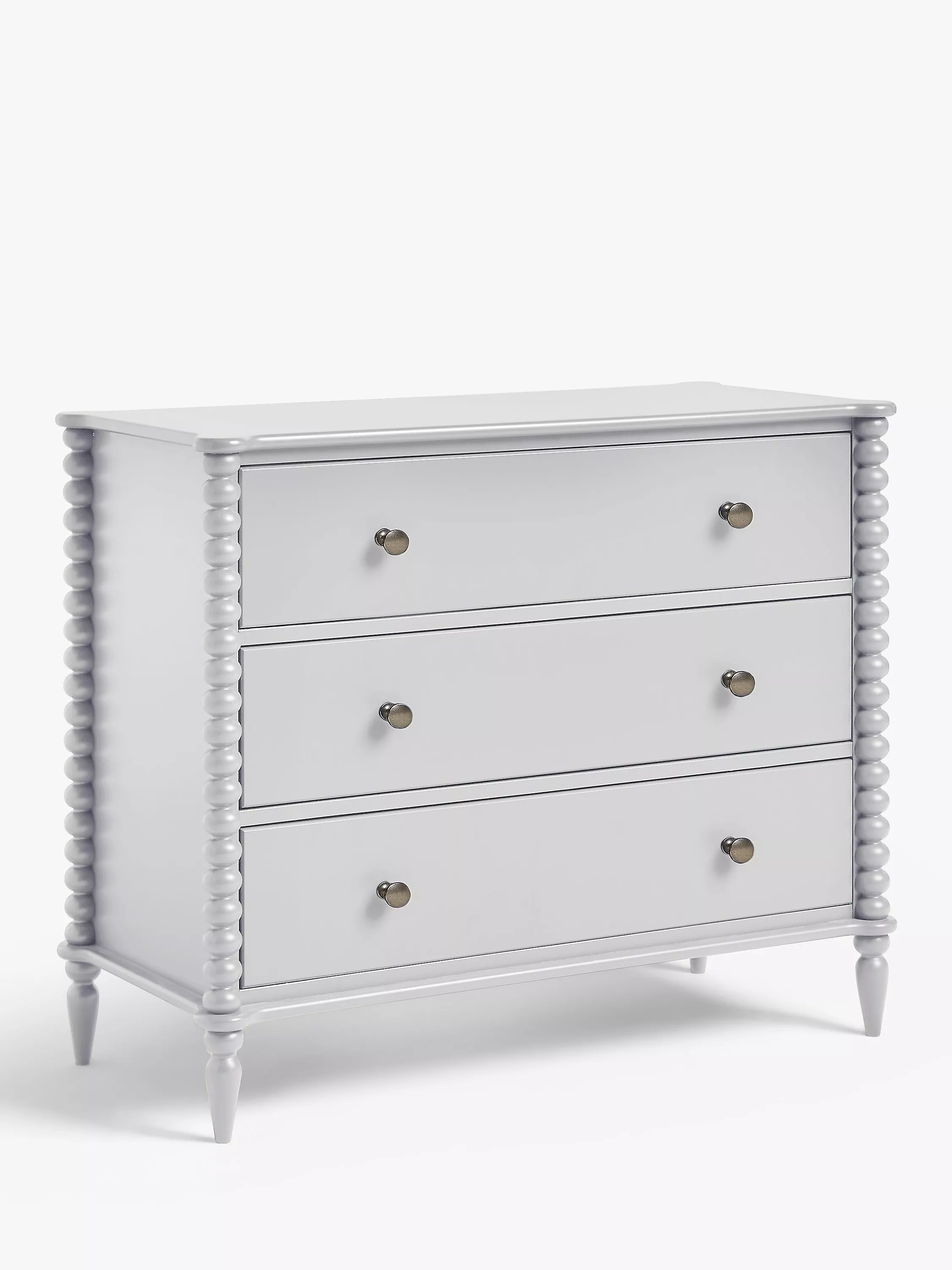 A revival of eclectic 17th century designs, our Bobbin range of furniture will bring a heritage feel back into your home. Decorative design points are awarded for this painted chest's round bobbin legs and shapely frame, which adds character and charm, and it's also impressively sturdy thanks to a combination of high-quality rubberwood and MDF. Complete with three deep drawers, who said storage had to be boring? This one is practically sized and a perfect amount of playful.