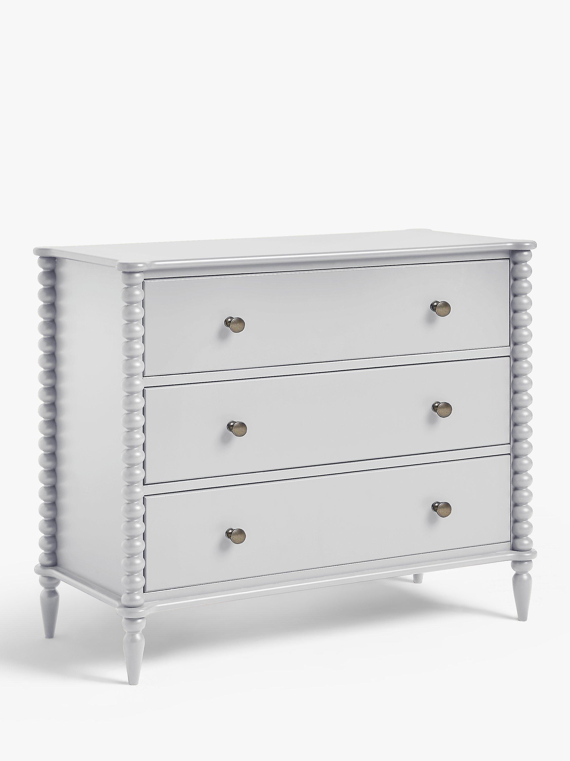 A revival of eclectic 17th century designs, our Bobbin range of furniture will bring a heritage feel back into your home. Decorative design points are awarded for this painted chest's round bobbin legs and shapely frame, which adds character and charm, and it's also impressively sturdy thanks to a combination of high-quality rubberwood and MDF. Complete with three deep drawers, who said storage had to be boring? This one is practically sized and a perfect amount of playful.