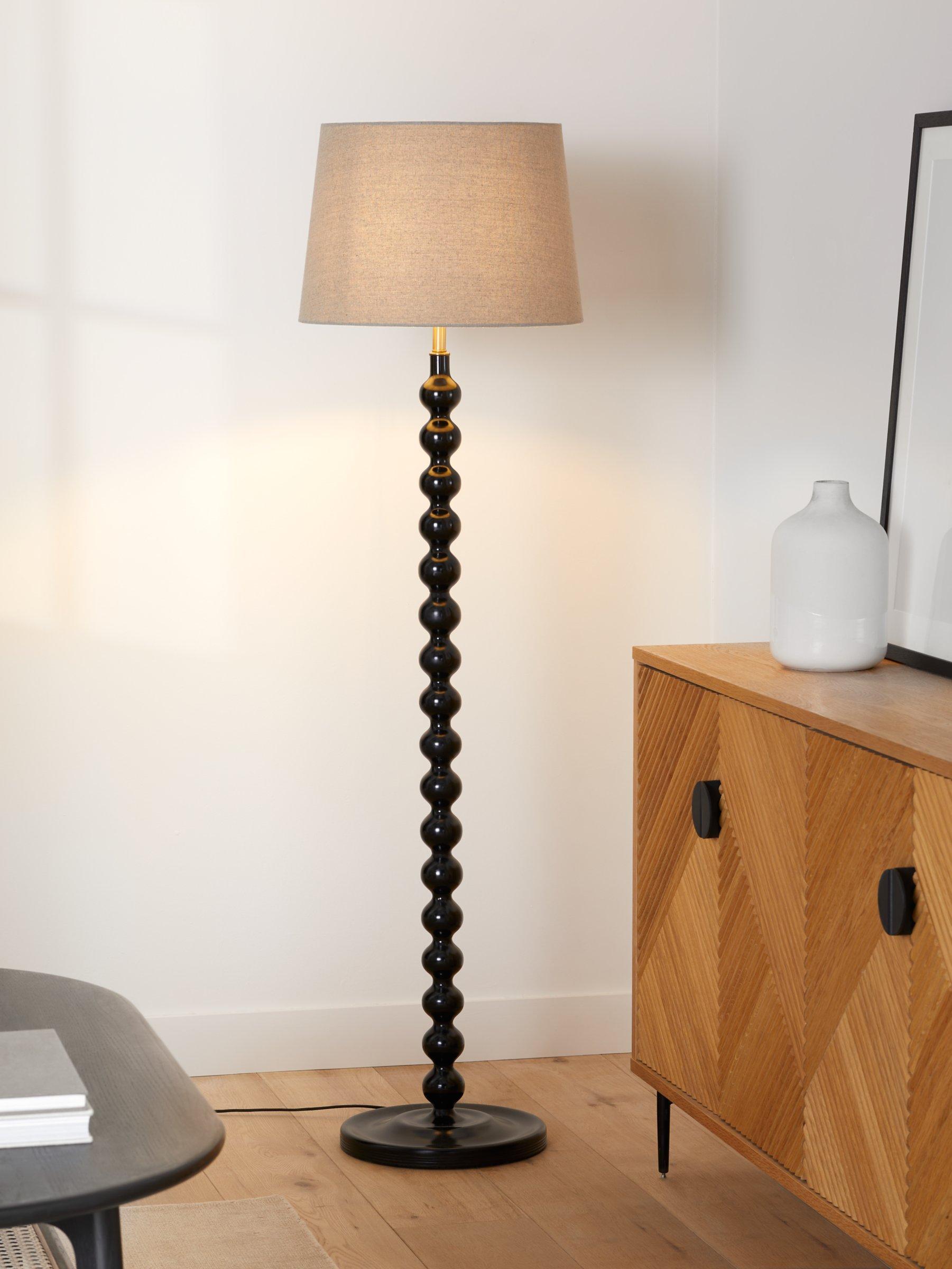 The Bobbin floor lamp looks super stylish with its shapely spun stem and smooth finish. To complete the look we added touches of metalwork with a textured linen shade.