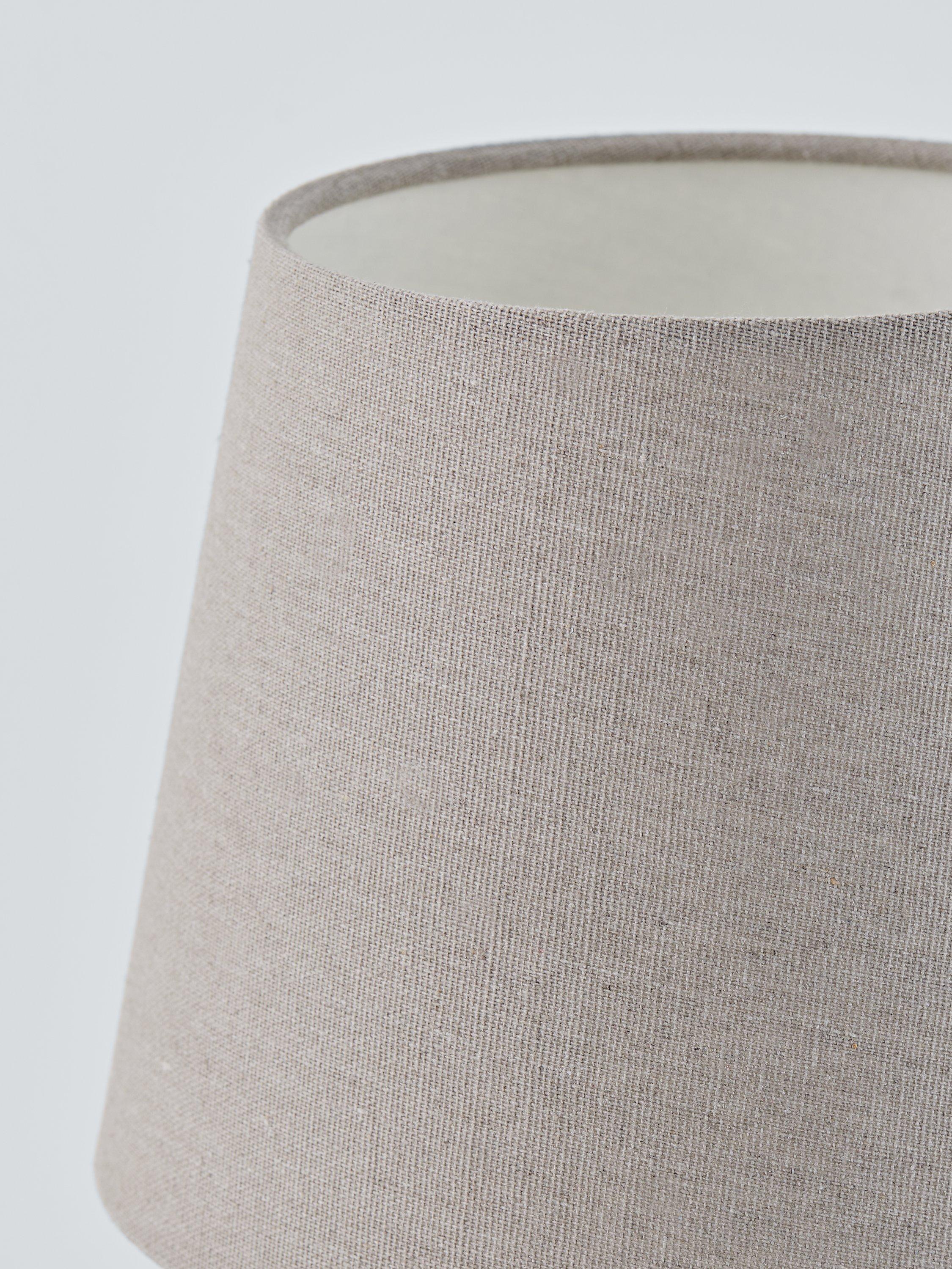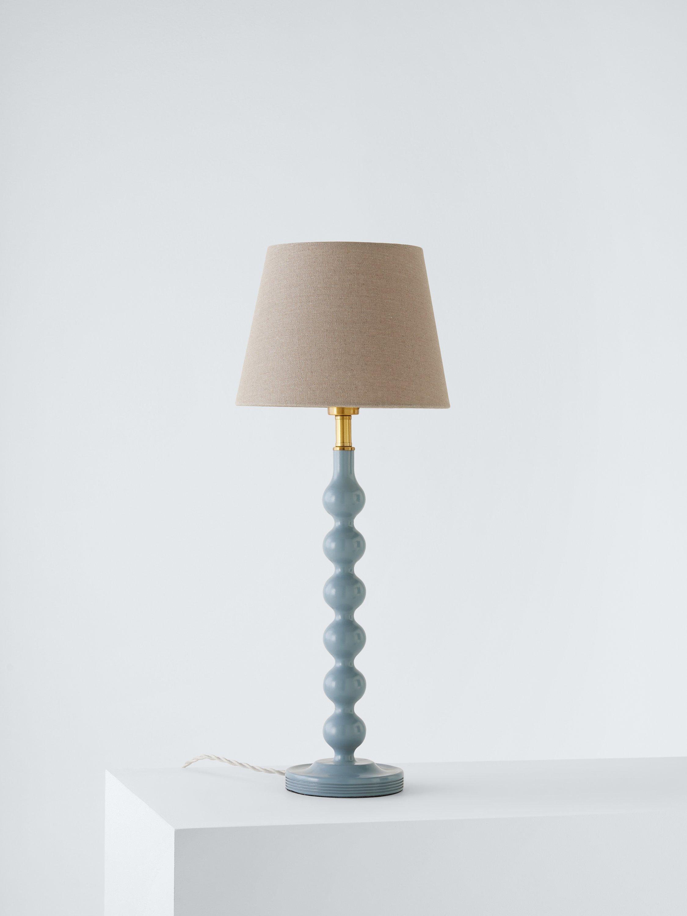 The Bobbin table lamp looks super stylish with its shapely spun stem and lovely painted finish. To complete the look we added touches of antique brass with a textured linen shade.