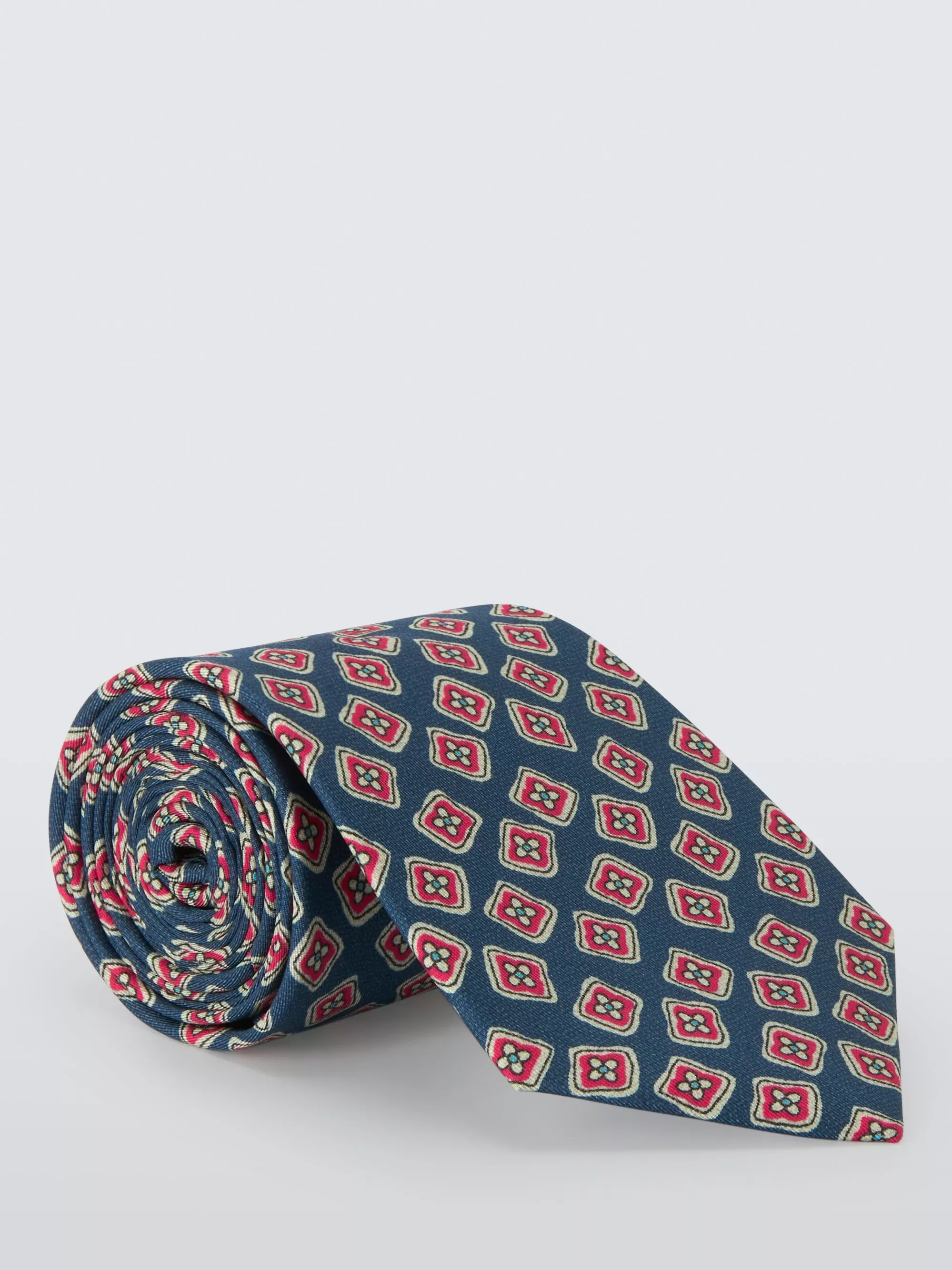 A bold diamond and floral pattern lends this pure silk tie a sophisticated angle, blending classic charm with contemporary precision. Woven from pure silk, the fabric boasts a natural, lustrous sheen and the luxuriously smooth handle hallmark of fine tailoring. The traditional twill weave provides a subtle diagonal texture that is notably hard-wearing, ensuring the tie retains its shape and holds a substantial knot.