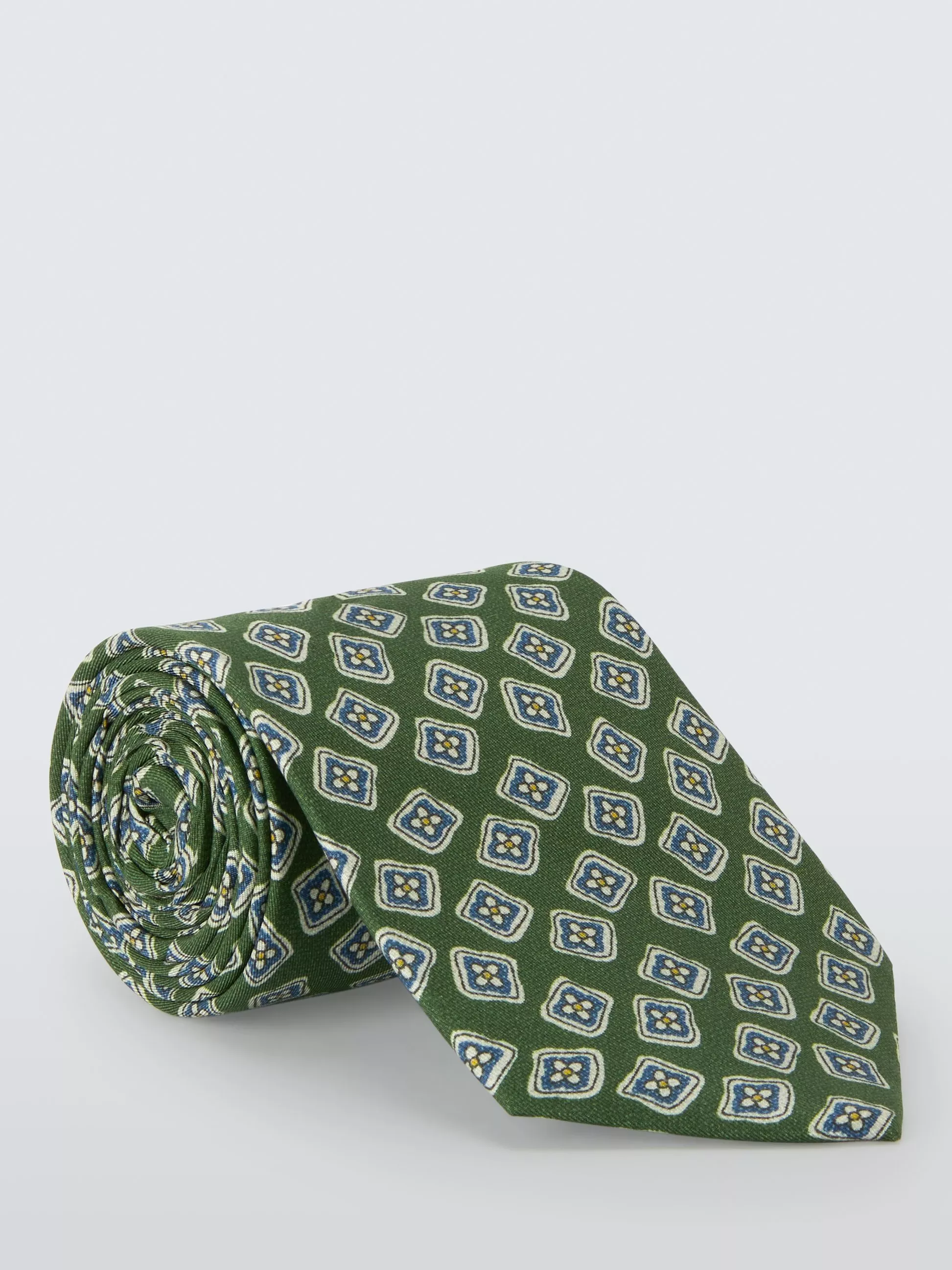 A bold diamond and floral pattern lends this pure silk tie a sophisticated angle, blending classic charm with contemporary precision. Woven from pure silk, the fabric boasts a natural, lustrous sheen and the luxuriously smooth handle hallmark of fine tailoring. The traditional twill weave provides a subtle diagonal texture that is notably hard-wearing, ensuring the tie retains its shape and holds a substantial knot.