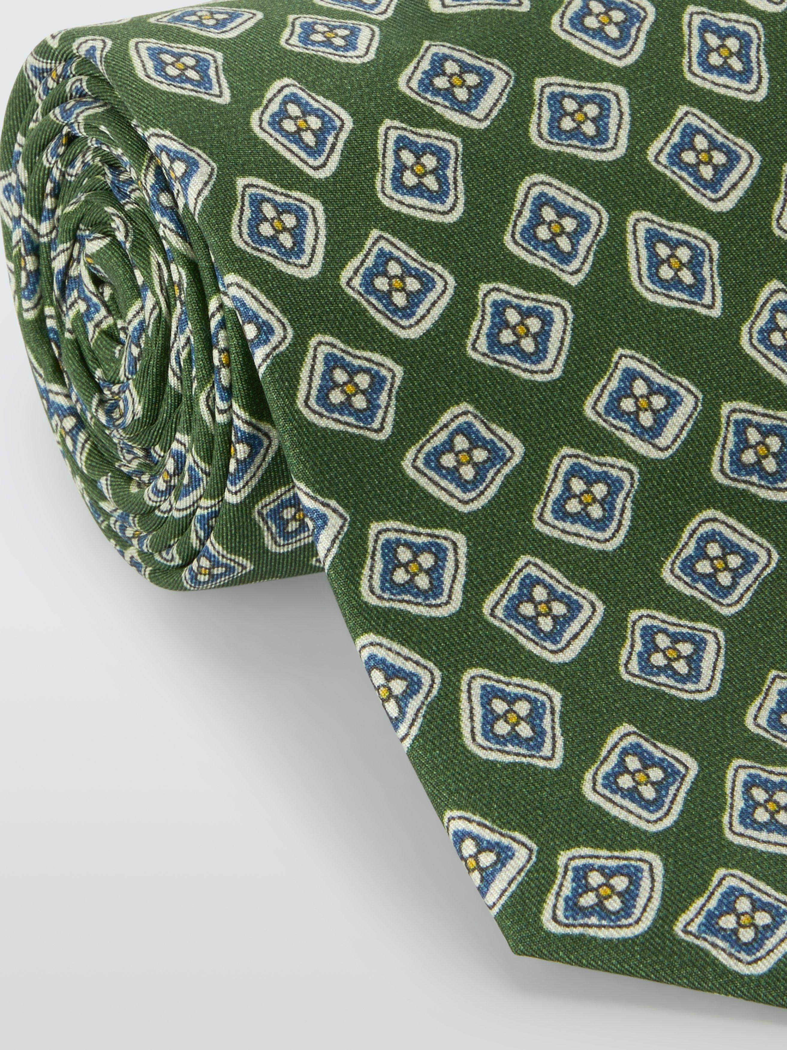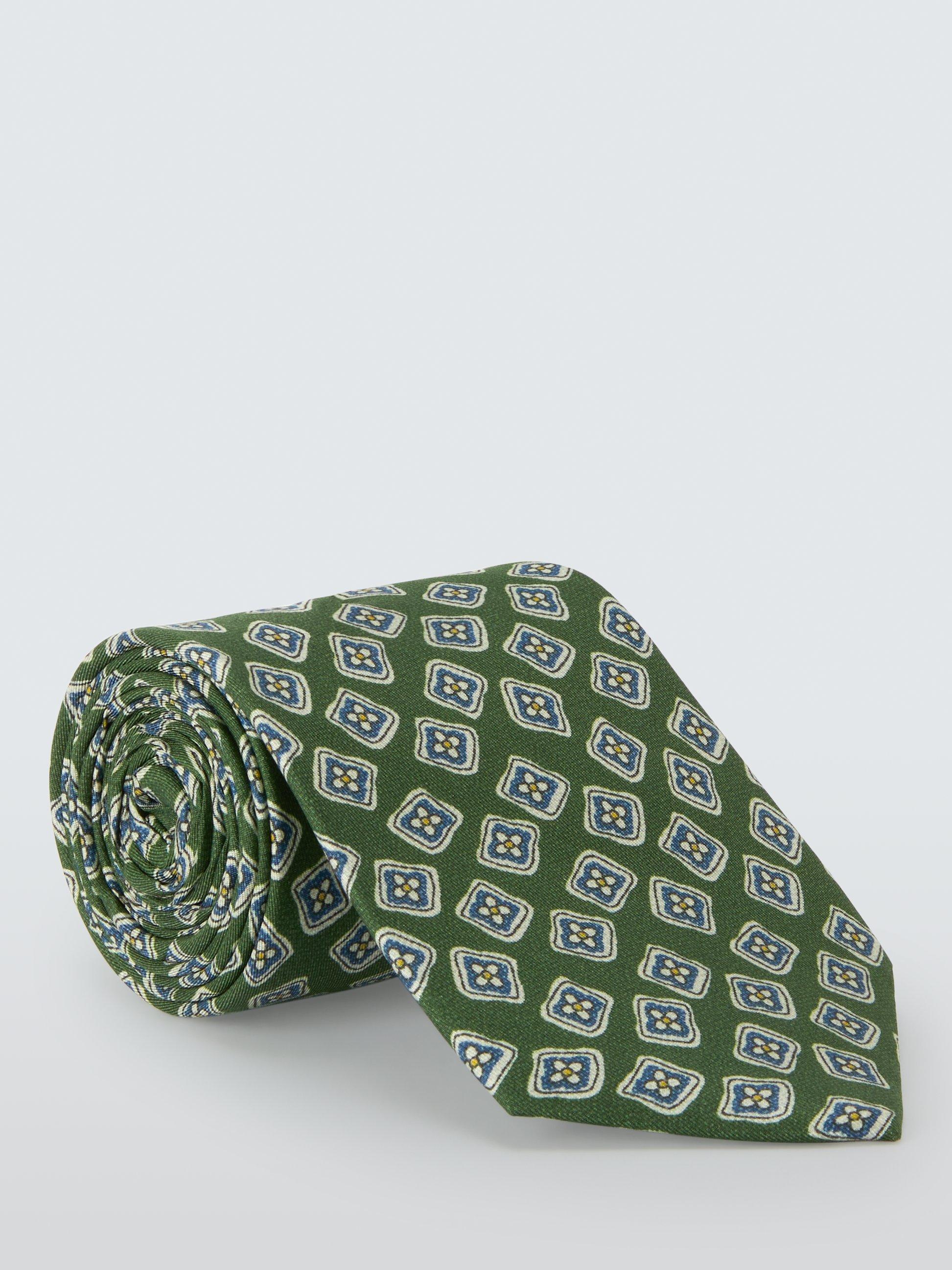 John LewisBold Floral Pattern Silk Tie, Green