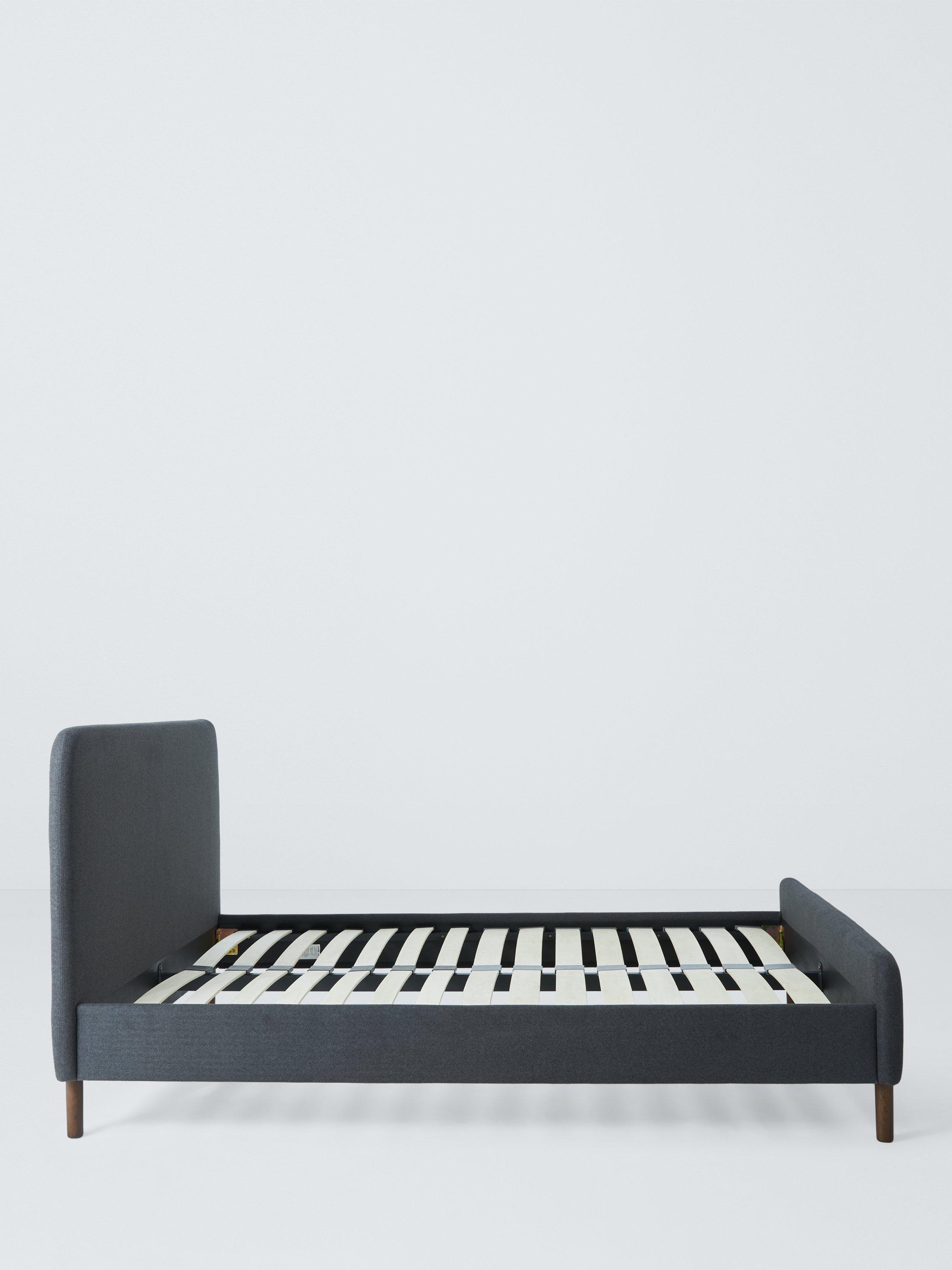 Beautifully simple, impressively sturdy and available at a price you'll love. Our modern Bonnie bed frame has a gently curved shape, with a wide headboard and sleek wooden legs. Available in a choice of fabrics, it's a design that will keep your bedroom feeling serene and calm. We've also added sprung Smart Slats to the base which are wider at the shoulders, lumbar and feet for enhanced support where you need it most.