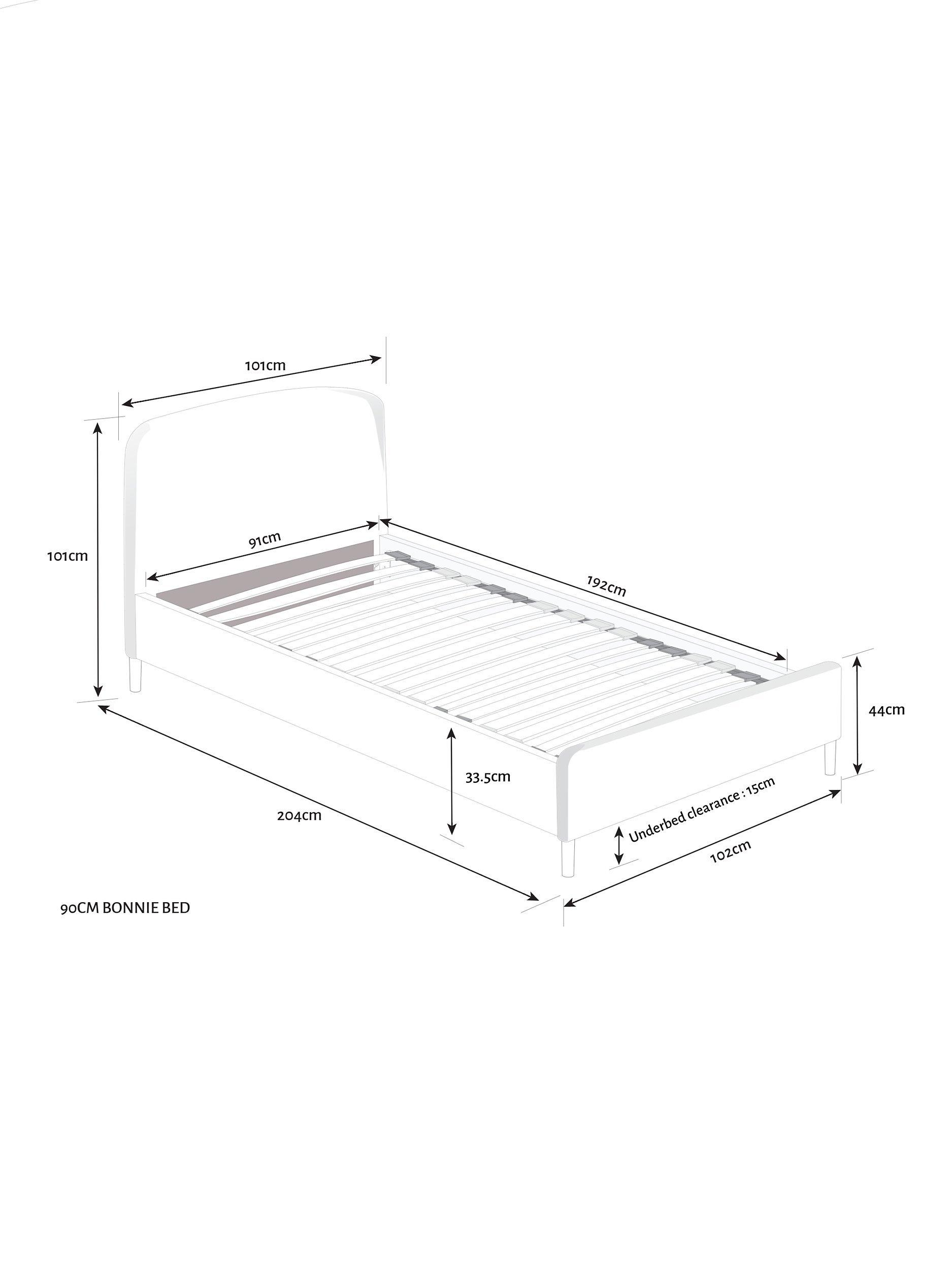 Beautifully simple, impressively sturdy and available at a price you'll love. Our modern Bonnie bed frame has a gently curved shape, with a wide headboard and sleek wooden legs. Available in a choice of fabrics, it's a design that will keep your bedroom feeling serene and calm. We've also added sprung Smart Slats to the base which are wider at the shoulders, lumbar and feet for enhanced support where you need it most.