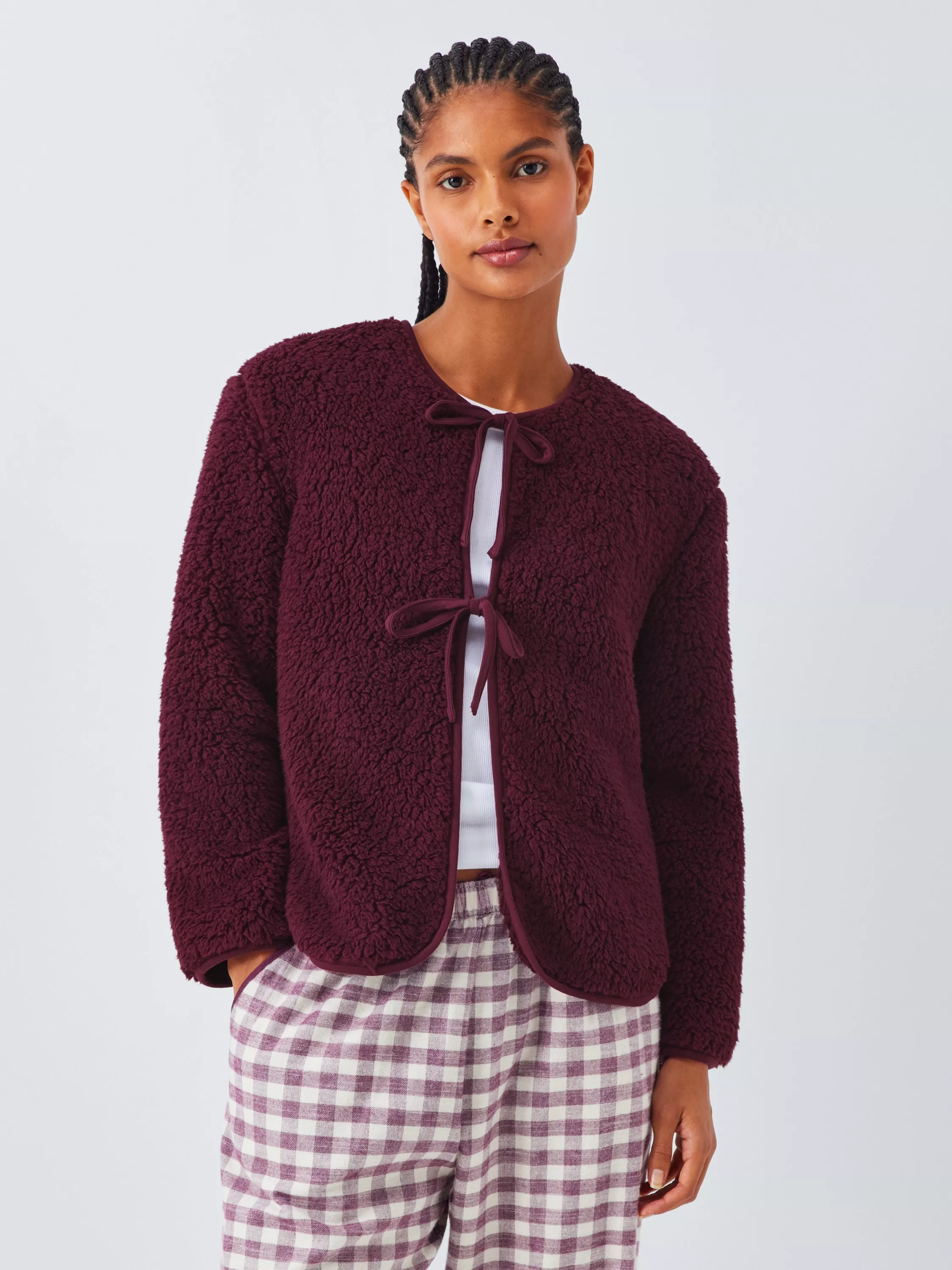 Combining an on-trend tie front with the cosiness of borg, this lounge top was made for snuggling up in style.