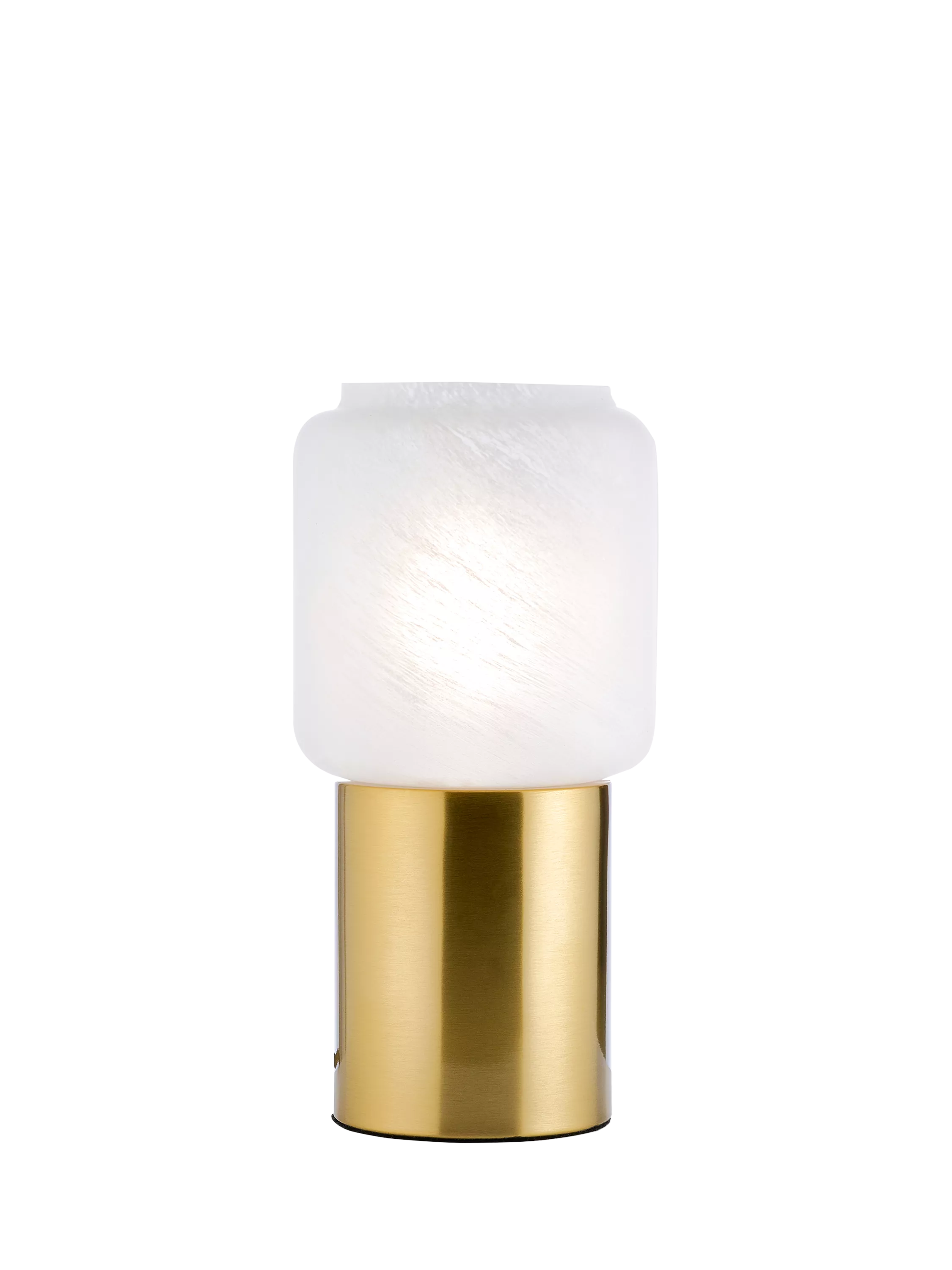 This unique table lamp pairs a beautiful alabaster-effect glass shade with a warm brass body. The touch dimming function allows you to easily adjust the light to suit your preference. Great as a bedside lamp or on a curated bookcase.
