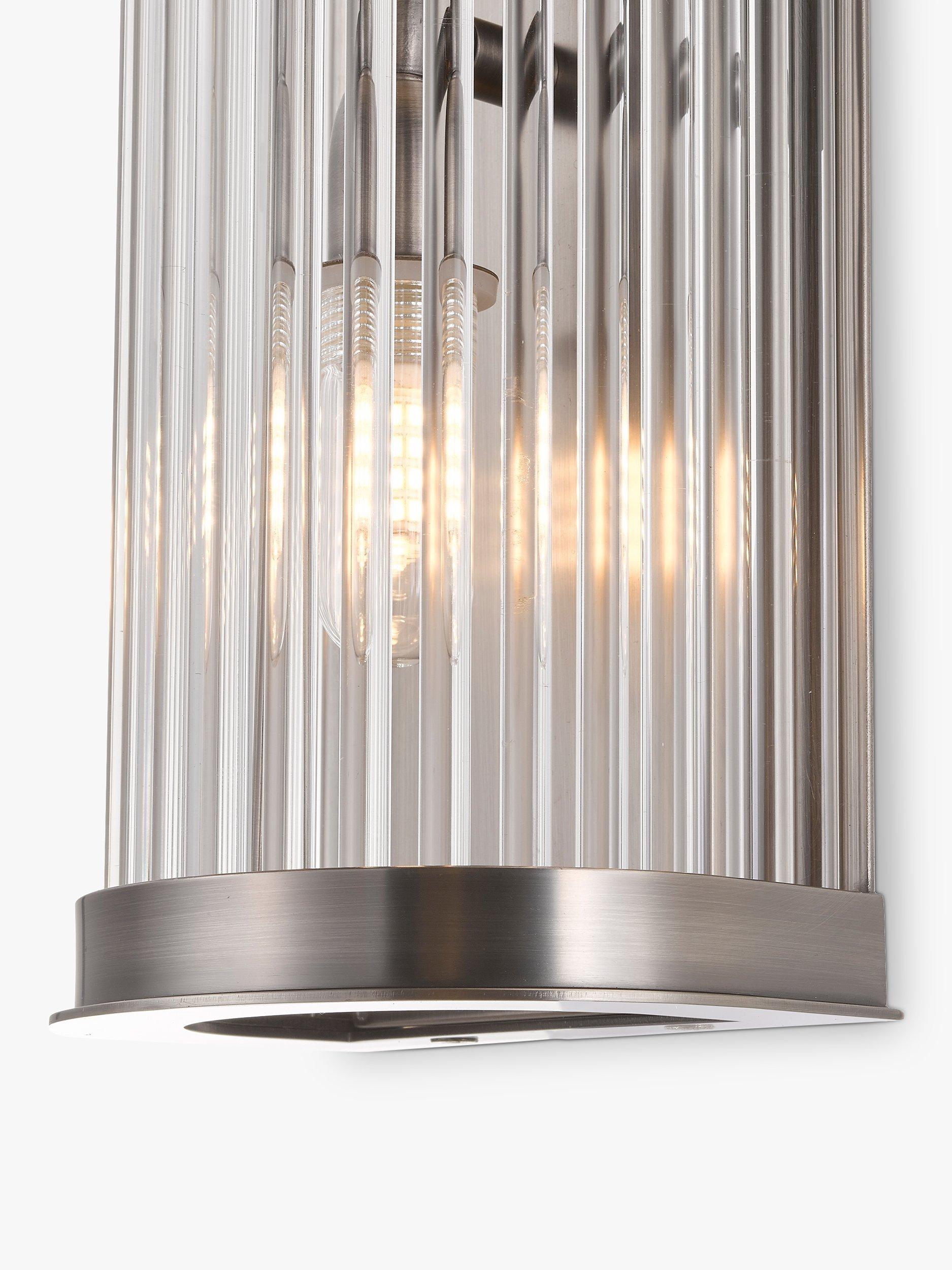 Inspired by the classic crystal chandelier, our Boston wall light features clear glass rods that are designed to refract light and enhance a bright glow when the light is switched on. Equally as impressive when the light is off, this stunning crystal wall lamp is IP44 Bathroom rated.