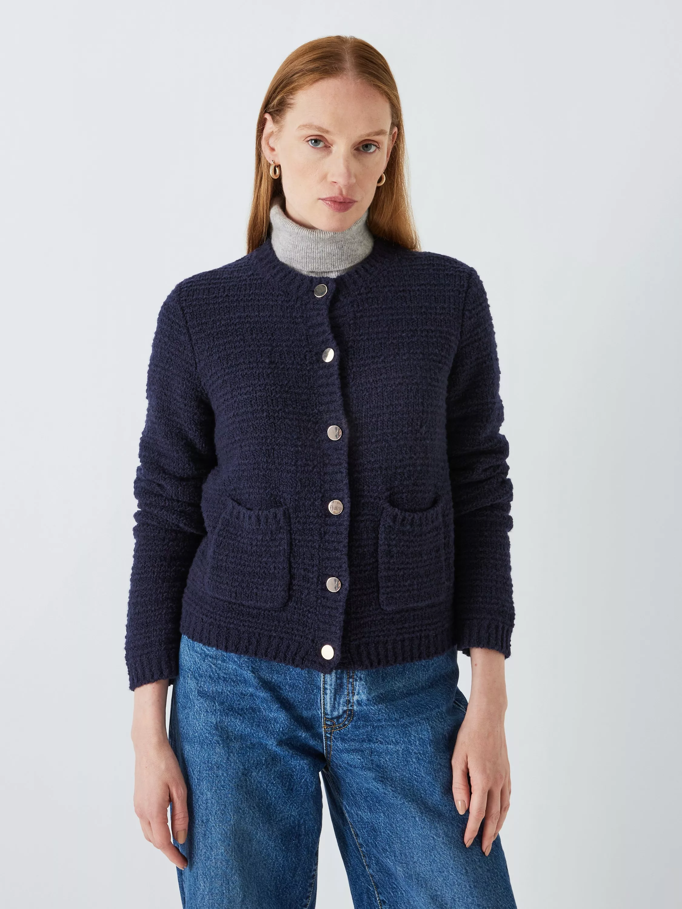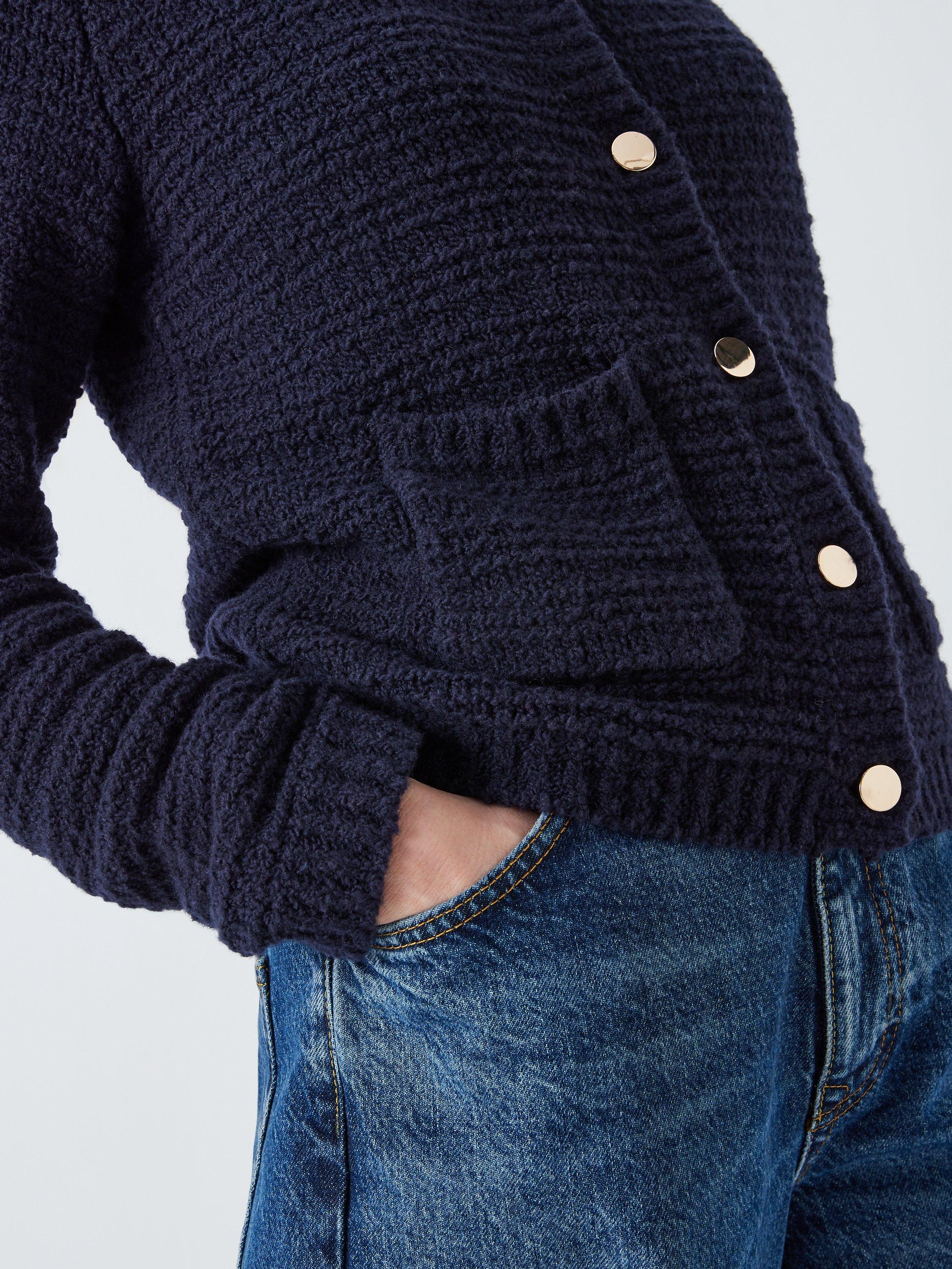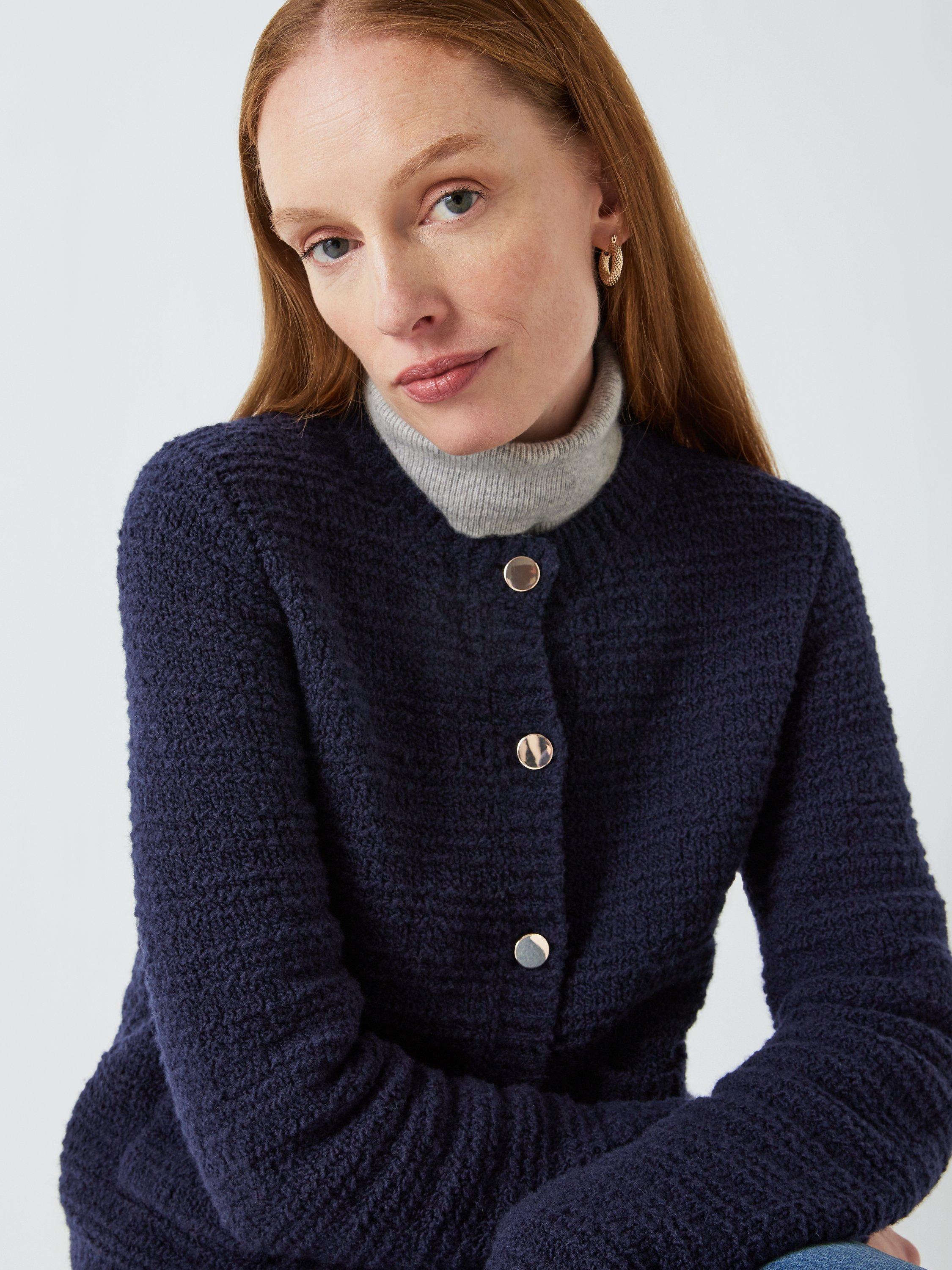 In a charming boucle handle, this cardigan is the epitome of cosy. Framed by an easy crew neckline, the wool-rich fabric is sure to make this one a go-to option as the cooler weather hits.
