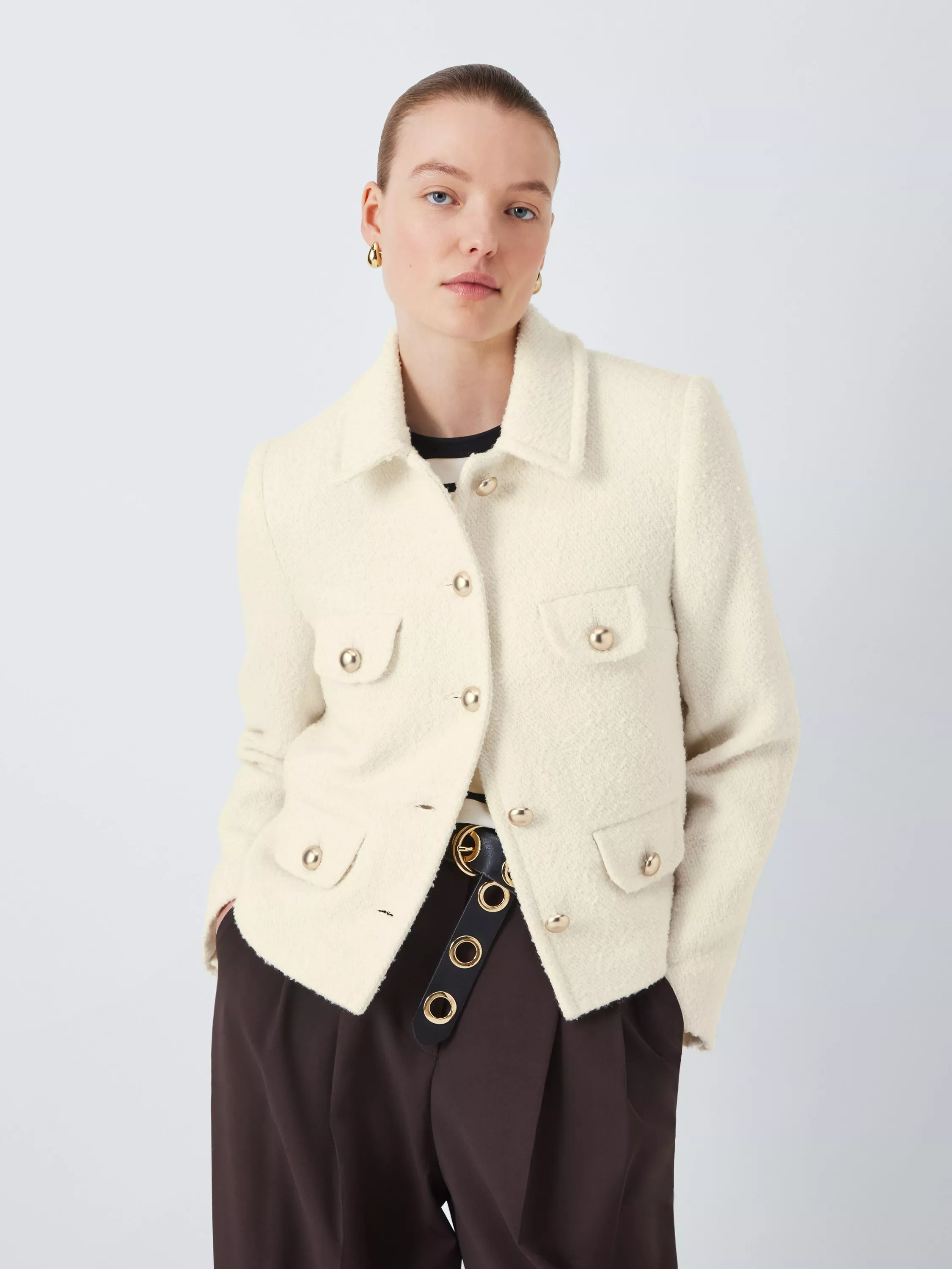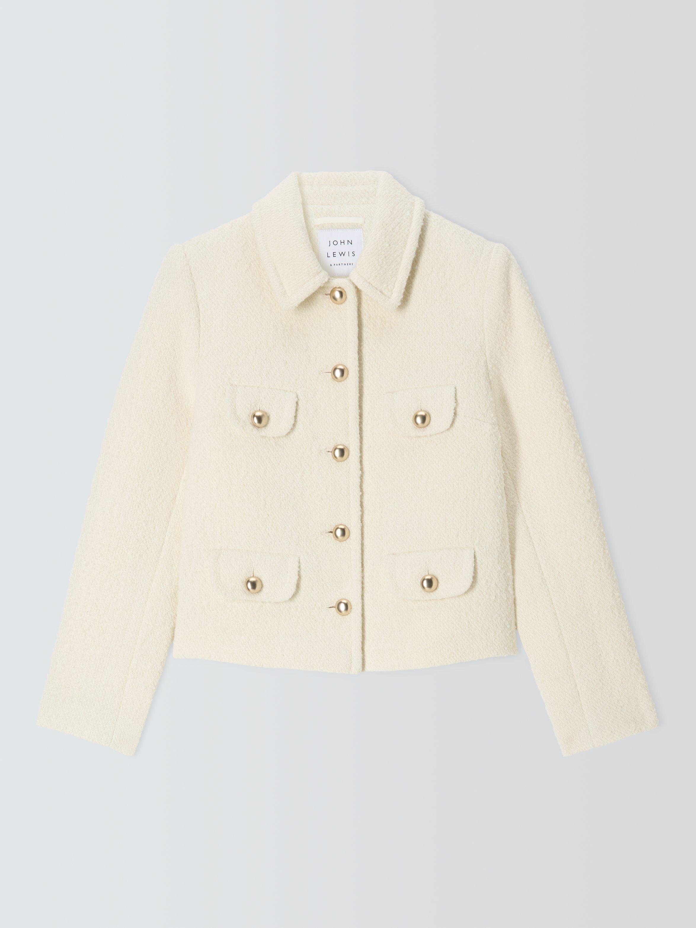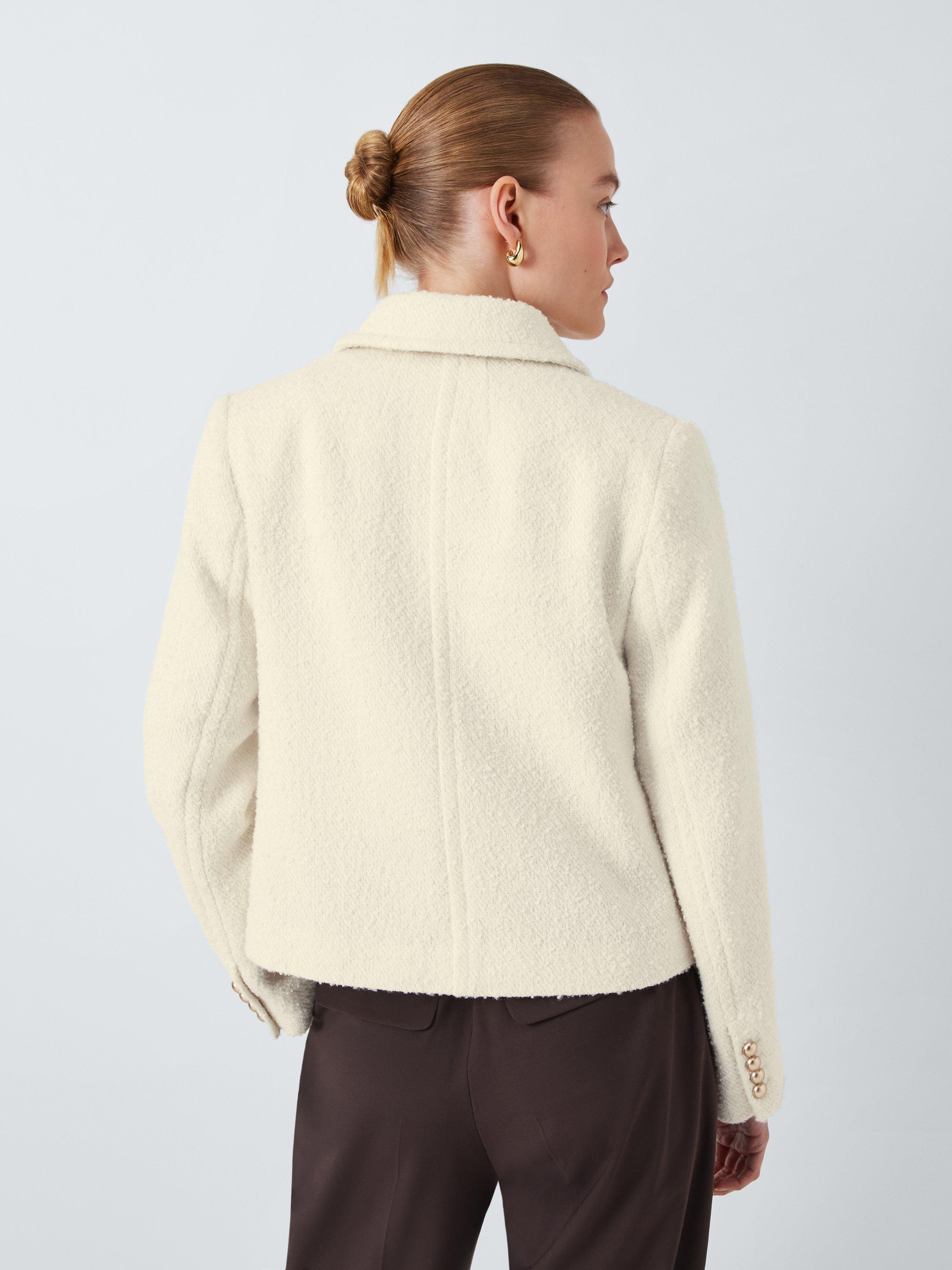 Elevating your look with ease, this single breasted boucle jacket boasts both durability and style.