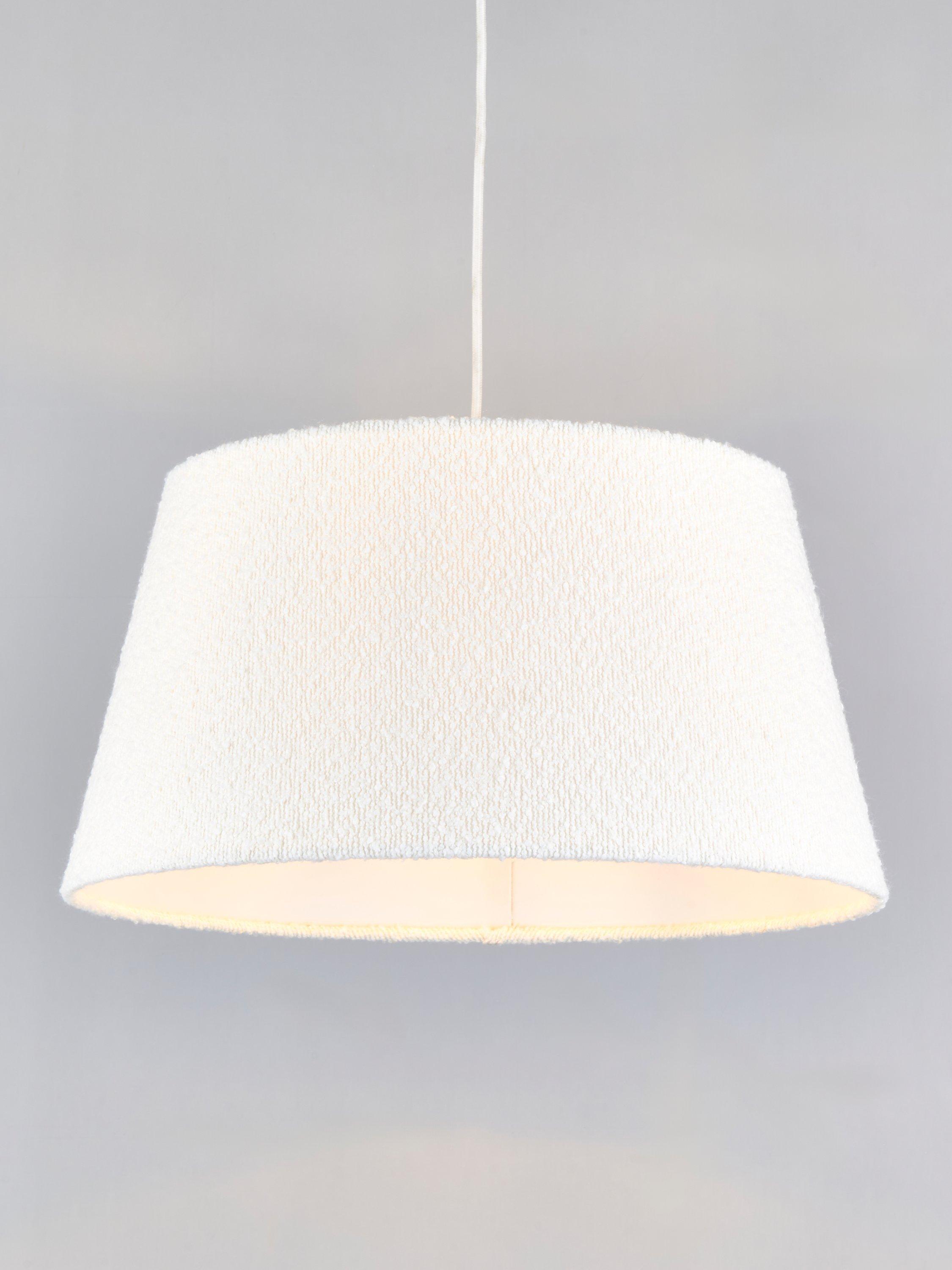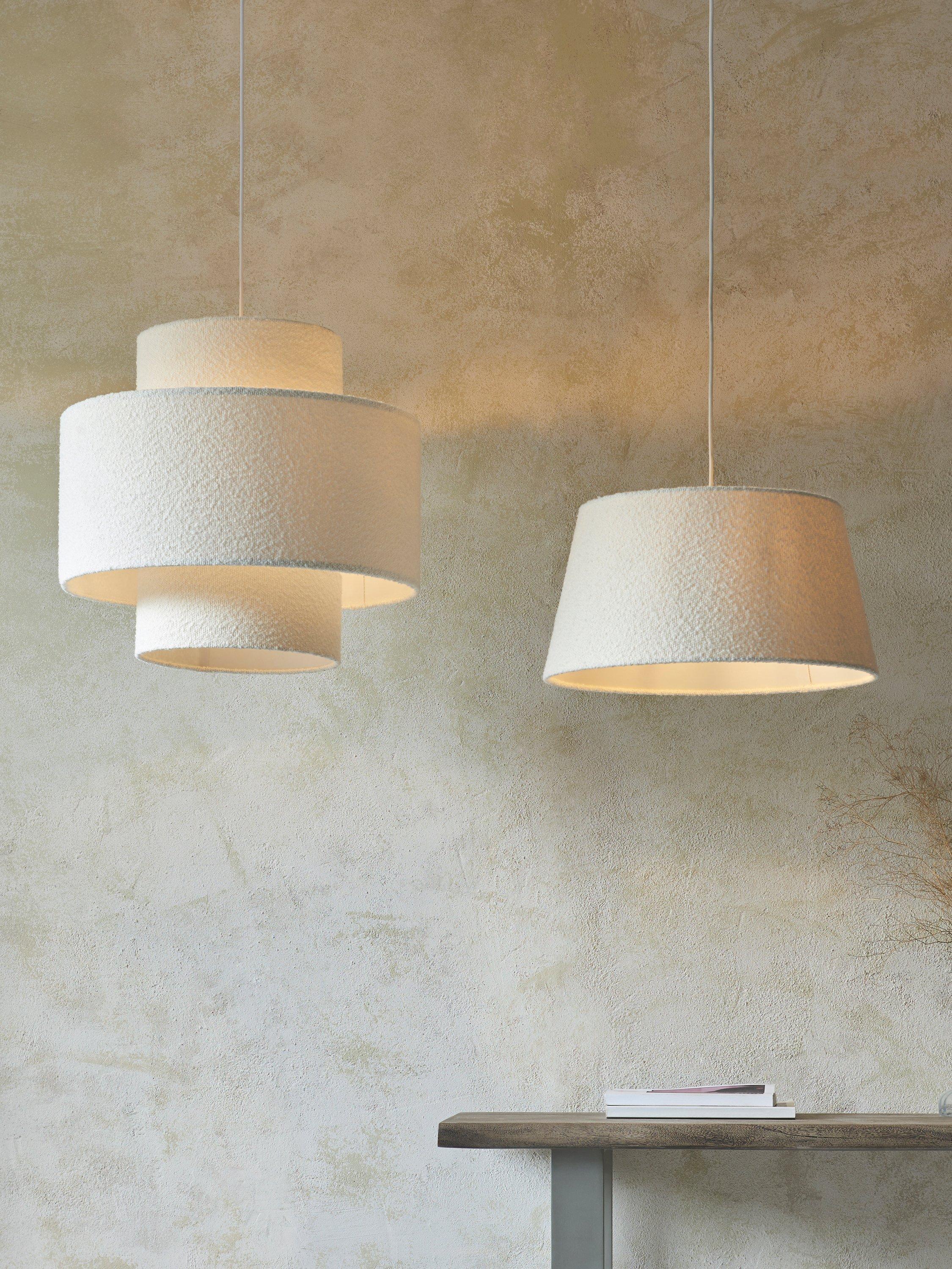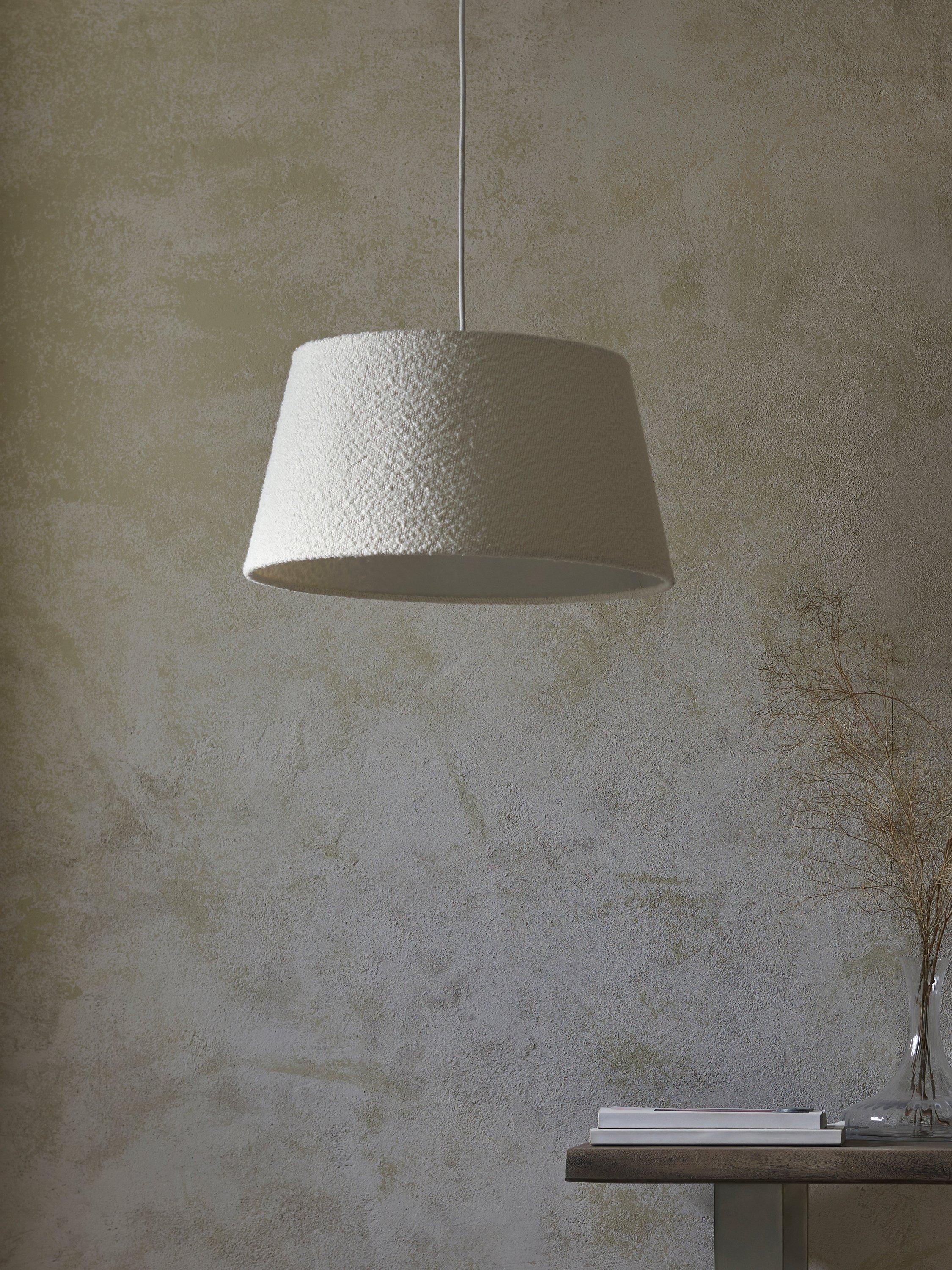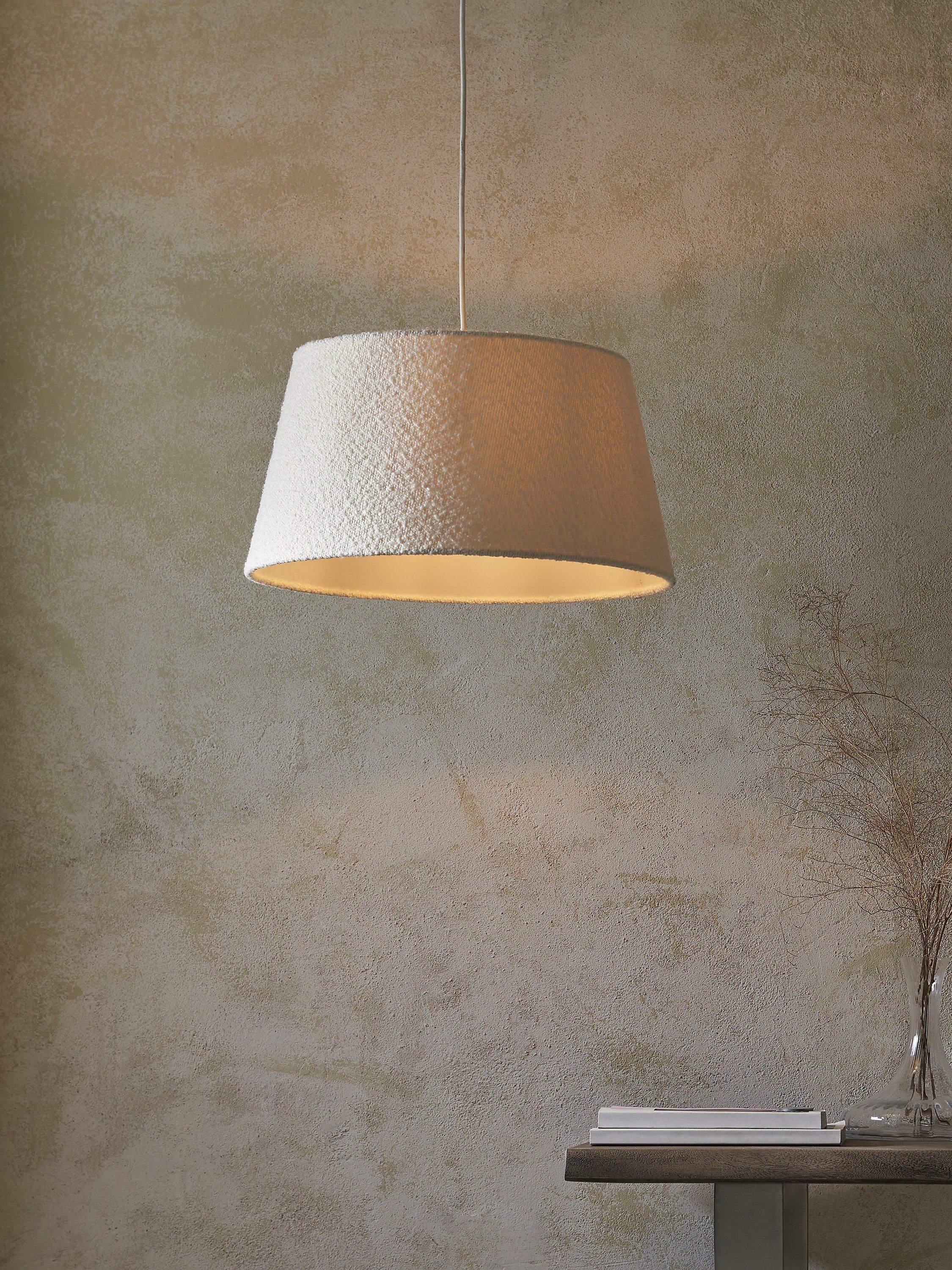 Tapered lampshade, a contemporary look that suits most ceiling fittings in a living room and bedroom. The oversized profile and on-trend boucle fabric add texture to a room.