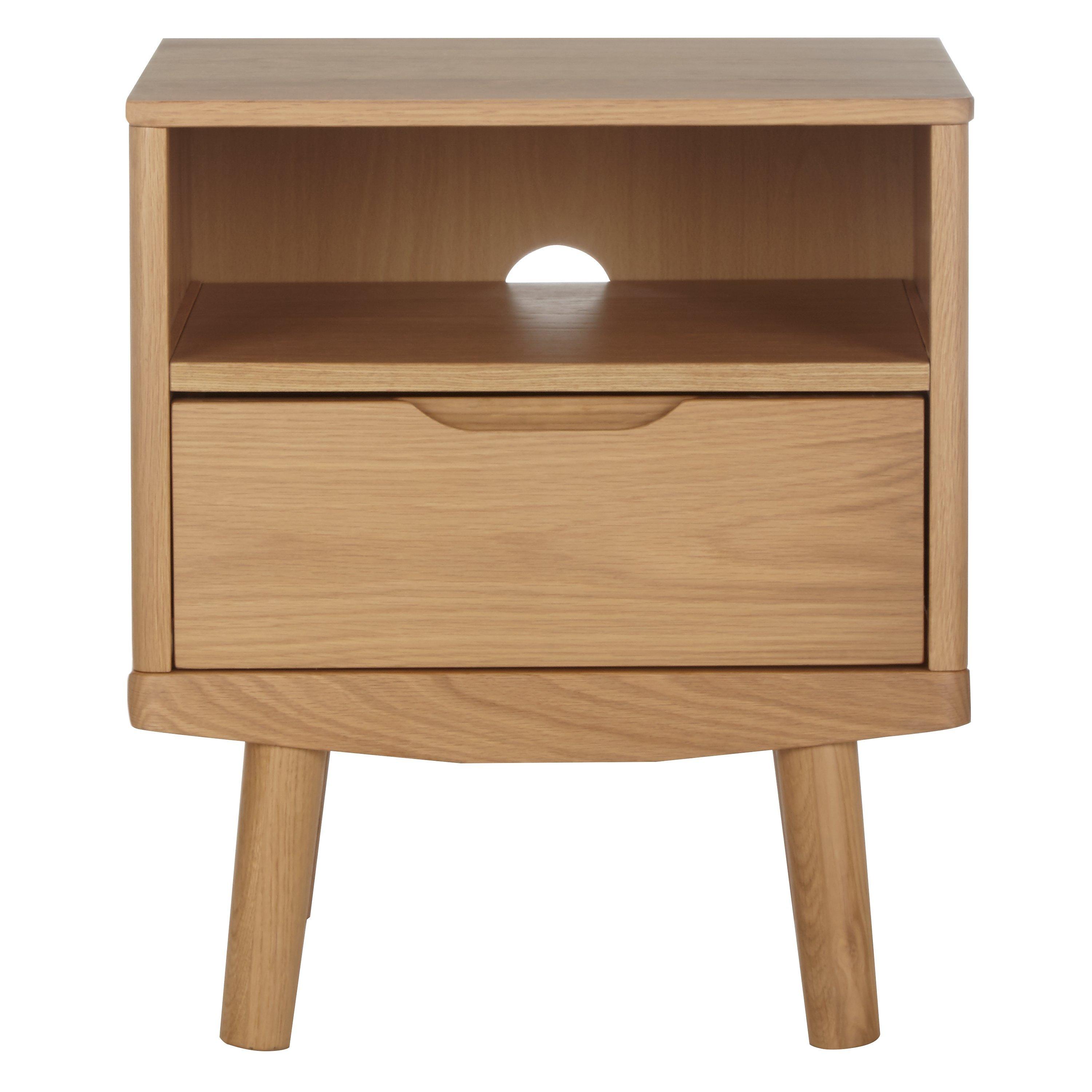 The Bow bedside table offers plenty of storage space, with a shelf and a convenient single drawer. A cable tidy at the back means you can keep wires from your bedside lamp, or tech gadgets neat, tidy and out of sight.