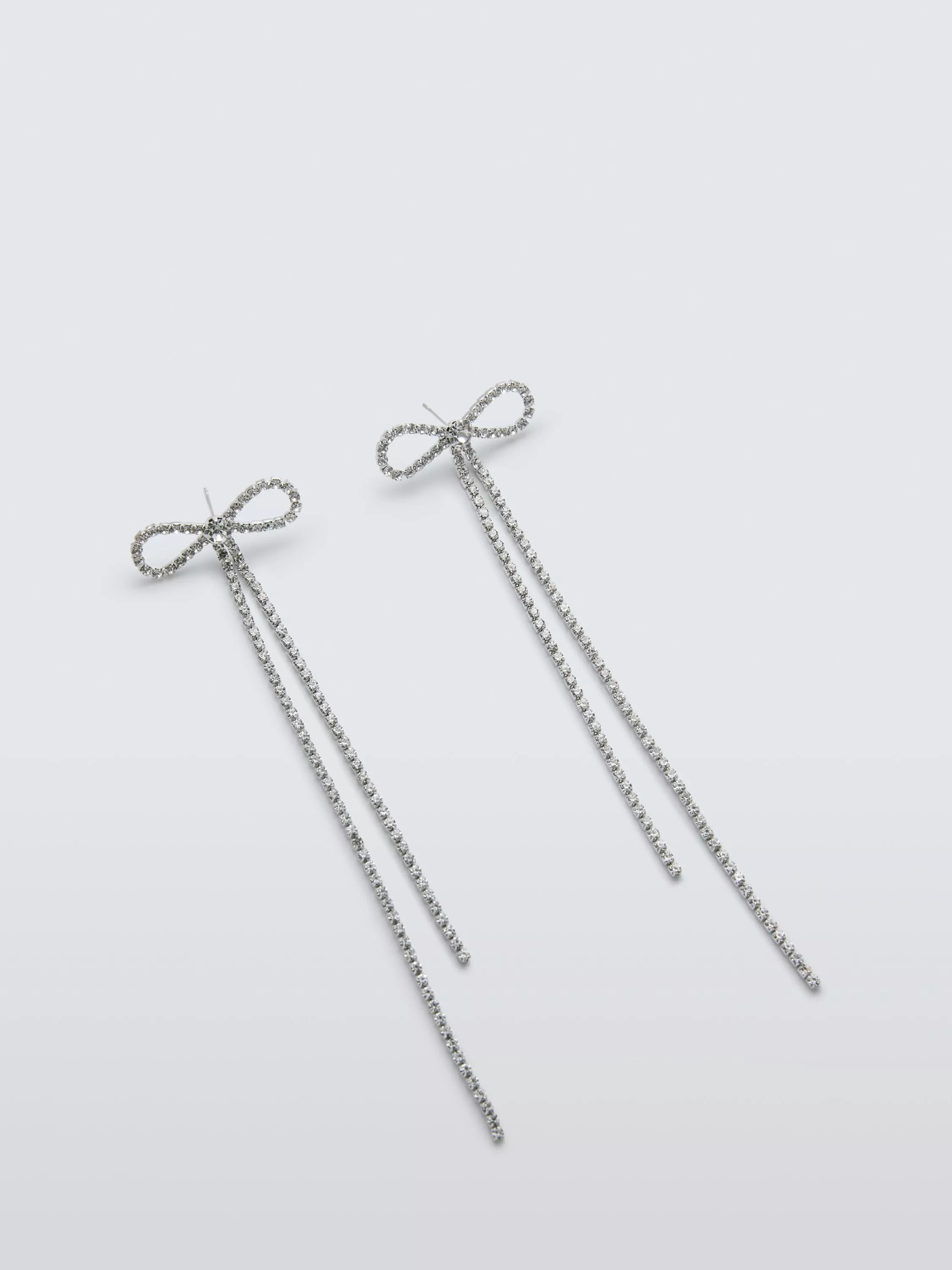 These bow and double diamante chain drop earrings add instant elegance to any look, catching the light with sparkling glass stones. Lightweight and easy to wear, they offer a touch of modern charm for everyday confidence. With post fittings, they are for pierced ears only.