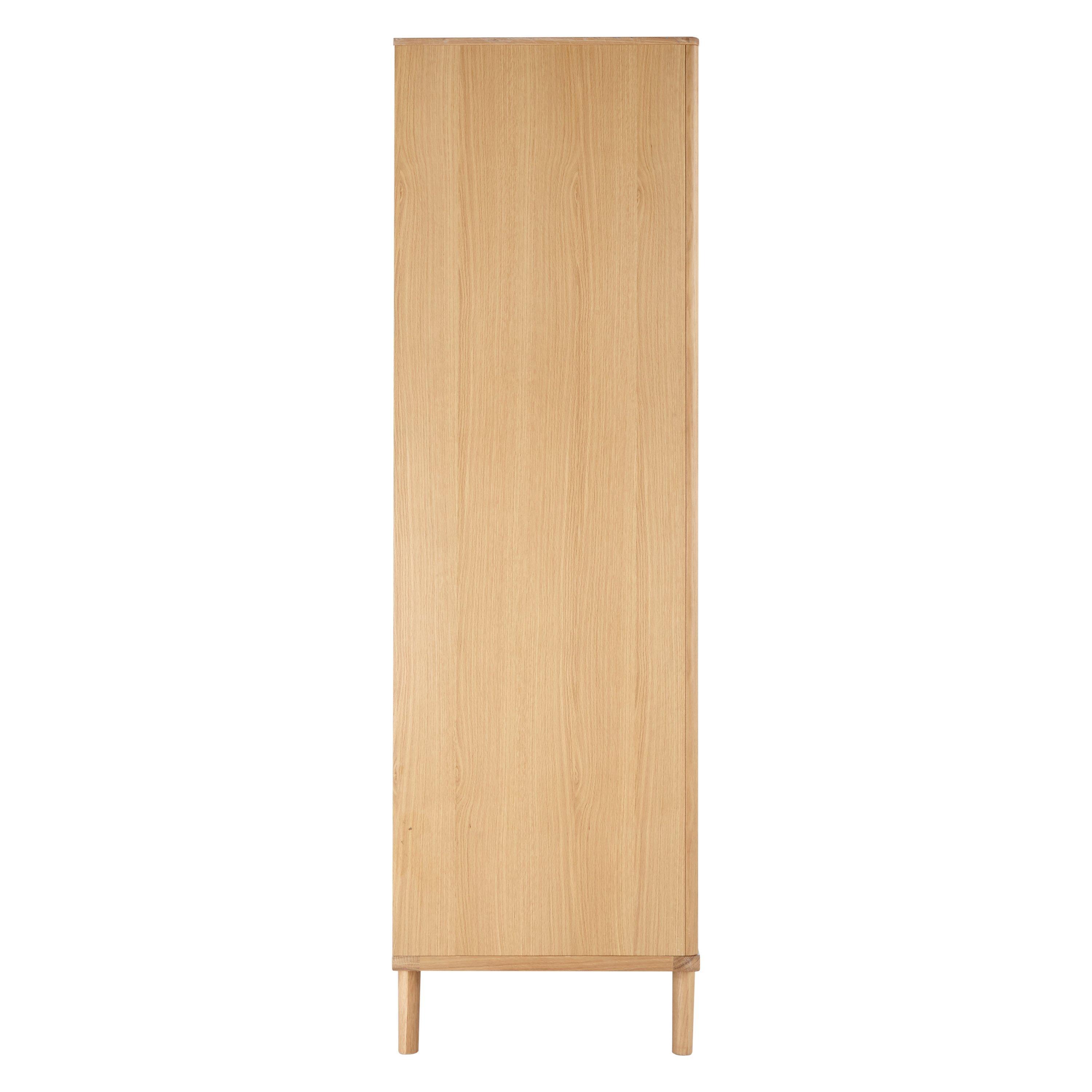 Our Bow range of bedroom furniture is modern, durable and made predominantly from solid oak and veneers. Showcasing the natural warmth and pattern of the wood grain, this double wardrobe opens to reveal a single hanging rail and shelf section, and there's also a drawer for extra storage. It's practically sized and offers plenty of storage space.