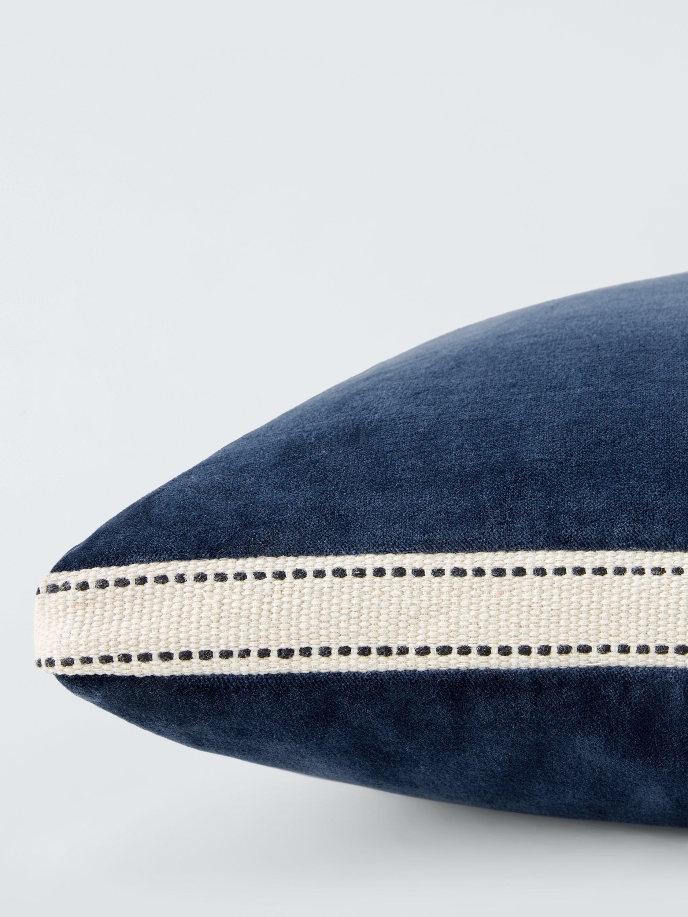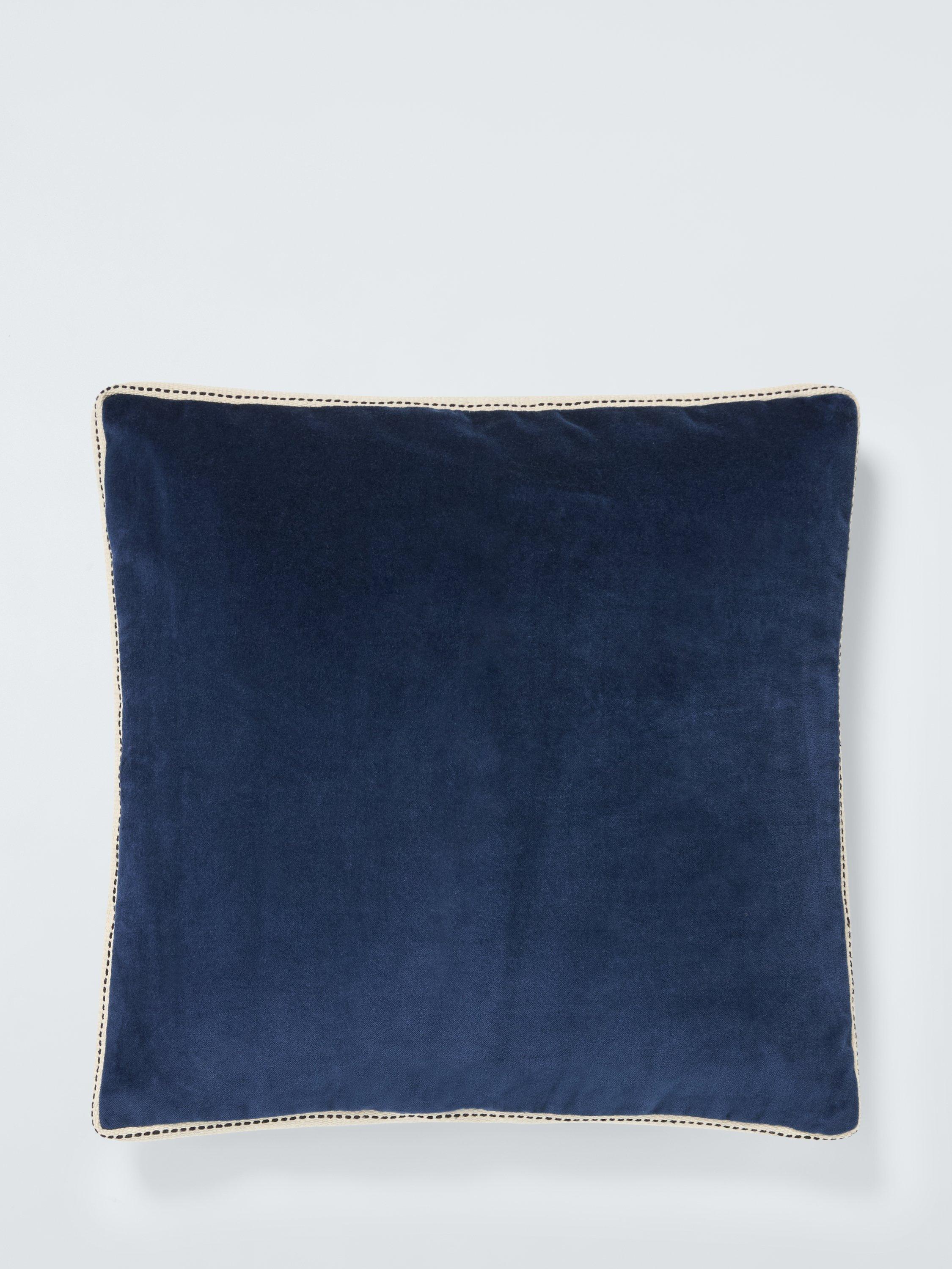 This cotton velvet cushion has a contrast boxed border in a cream weave with a dark running stitch. Ideal for switching up your living room look this spring.