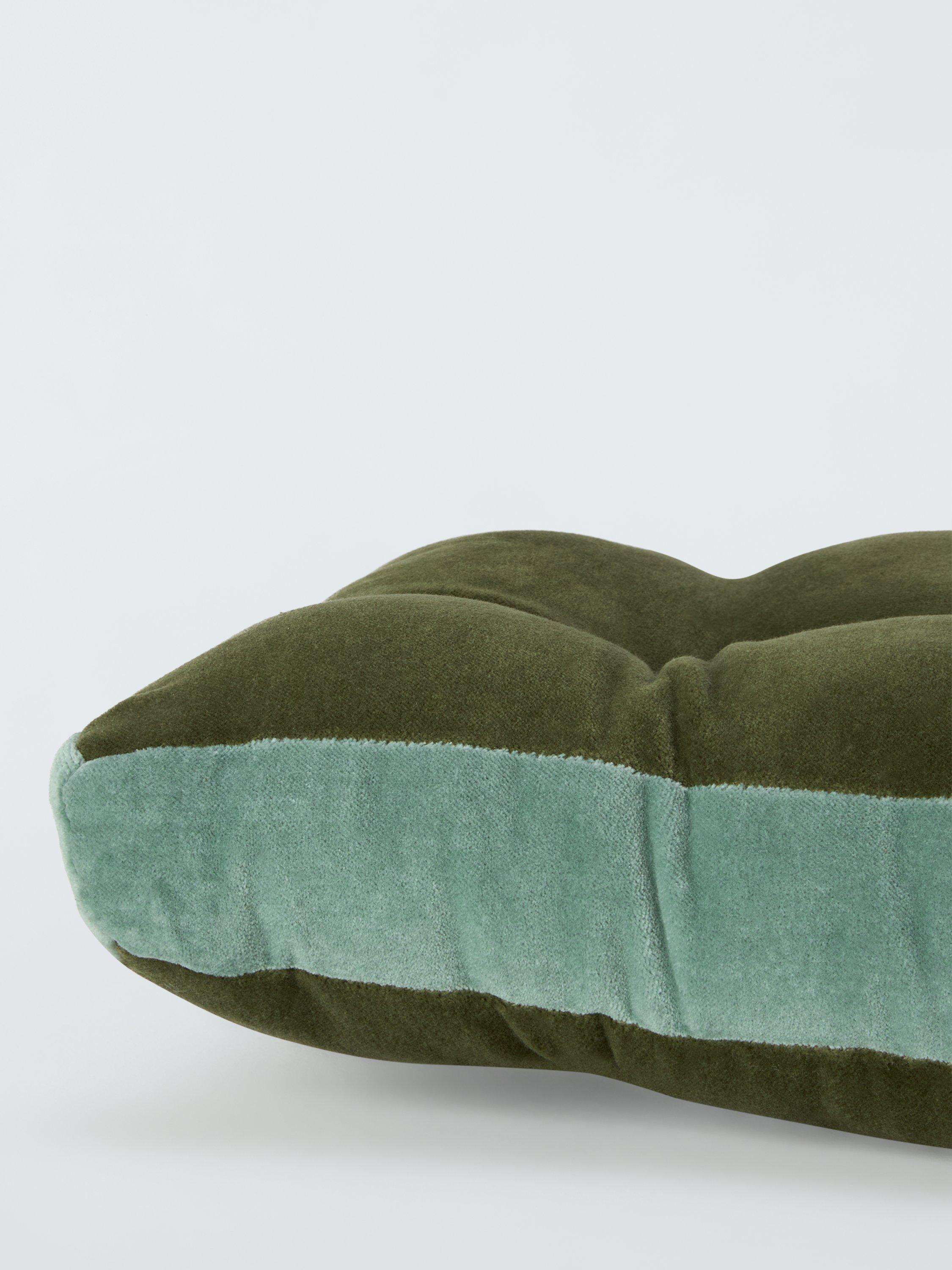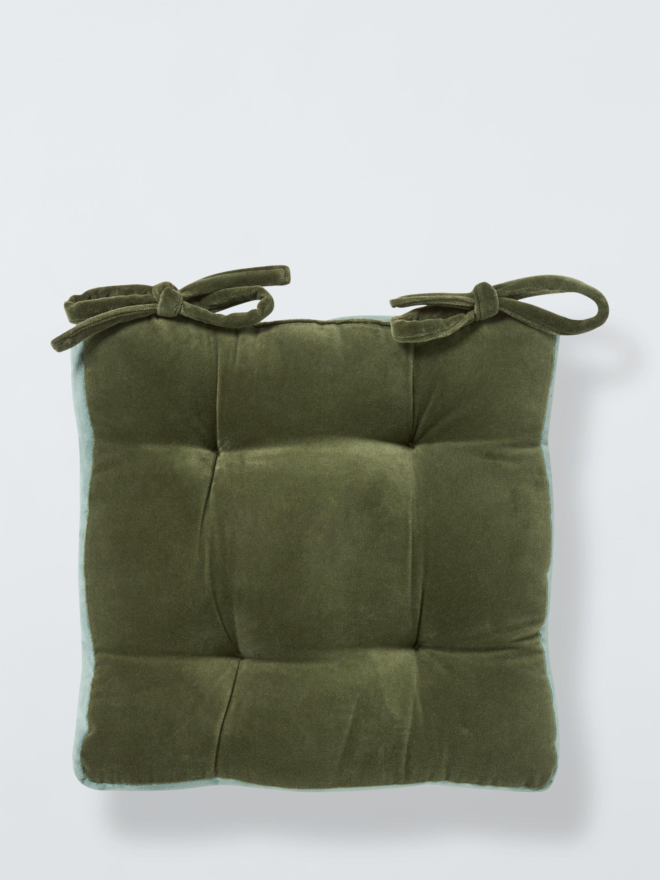 Add a comfortable layer to dining chairs with these polyester filled seat pads. They fasten easily at the back with ties and are covered in plush velvet in two contrasting shades.