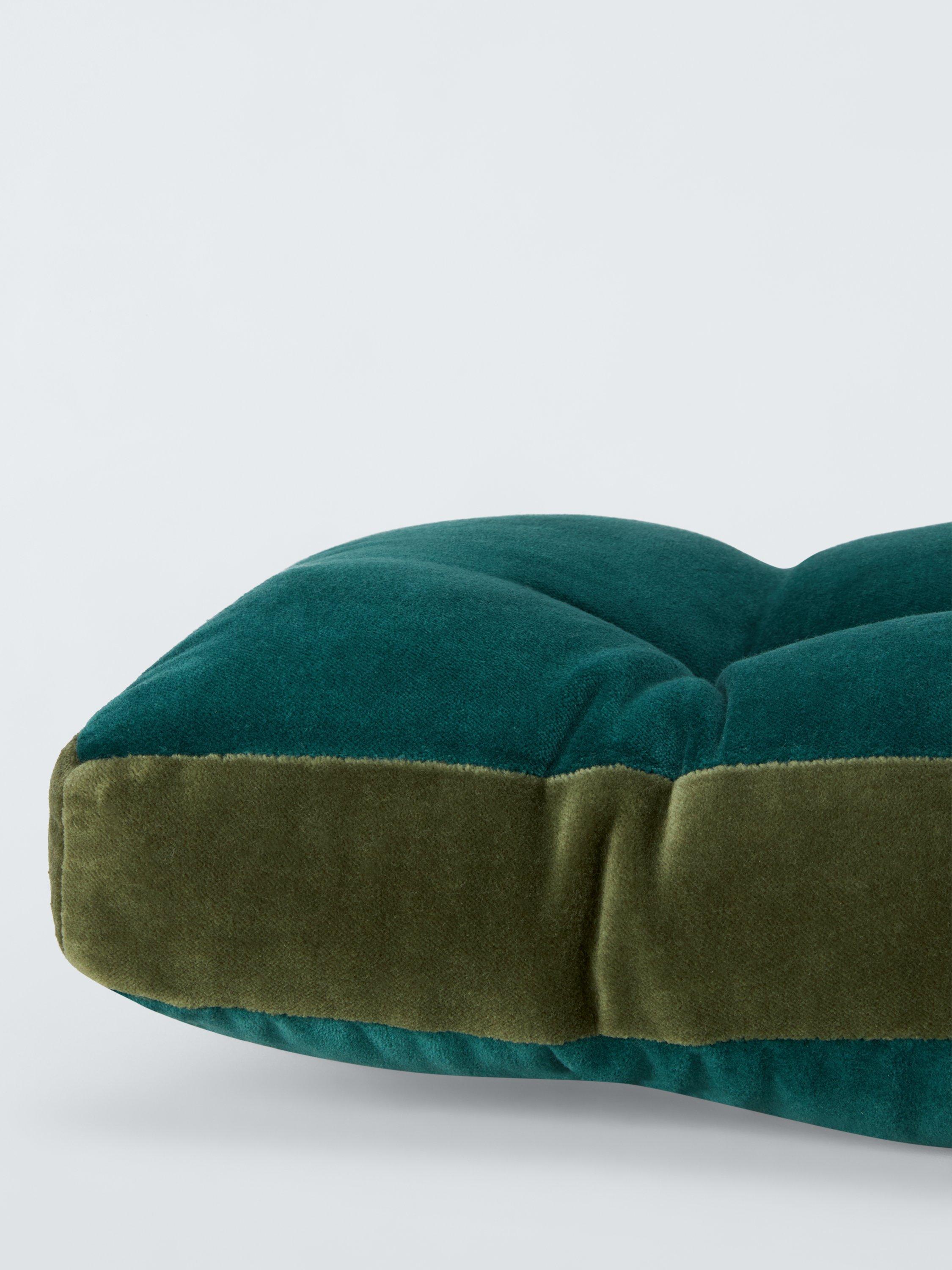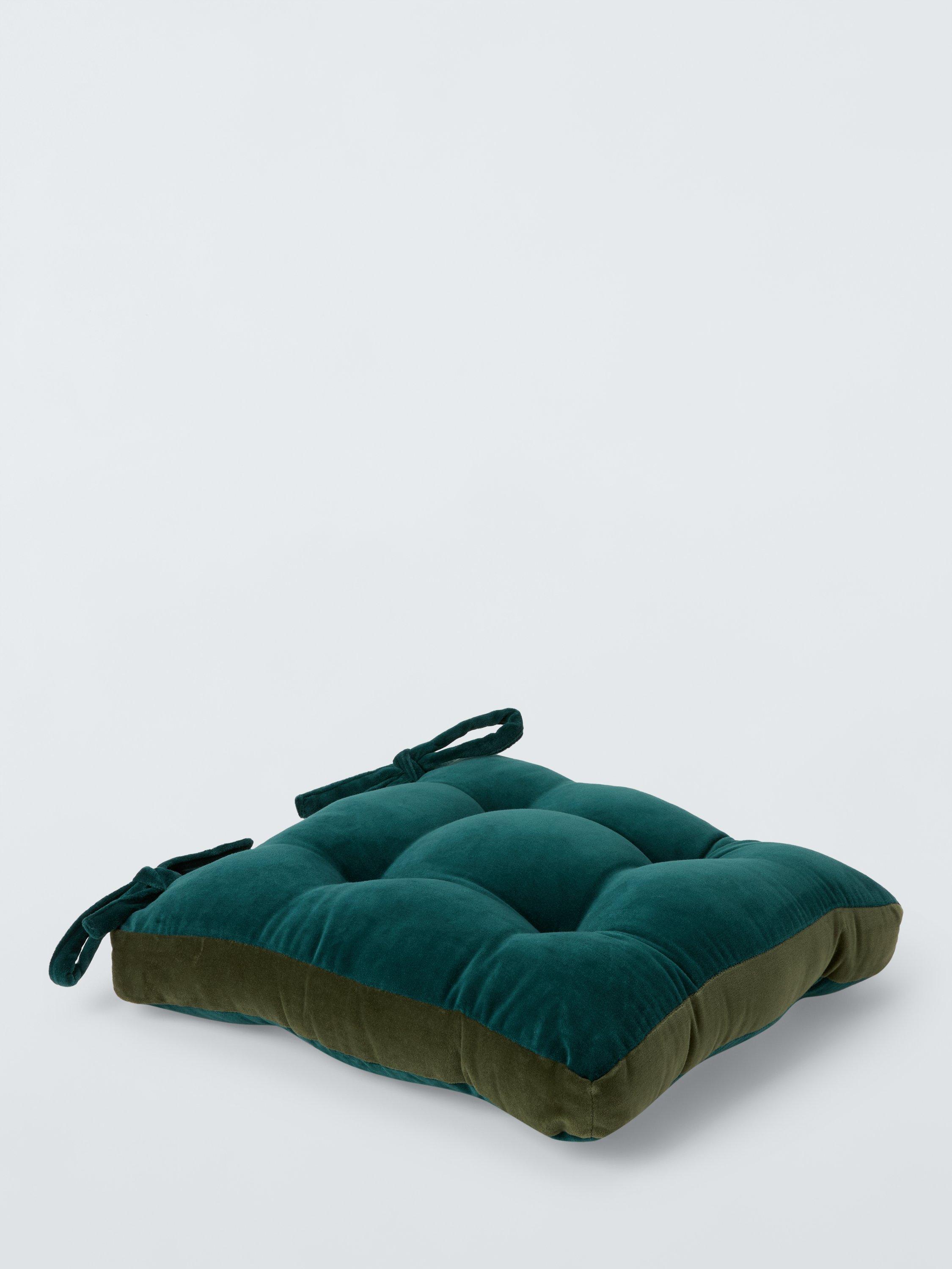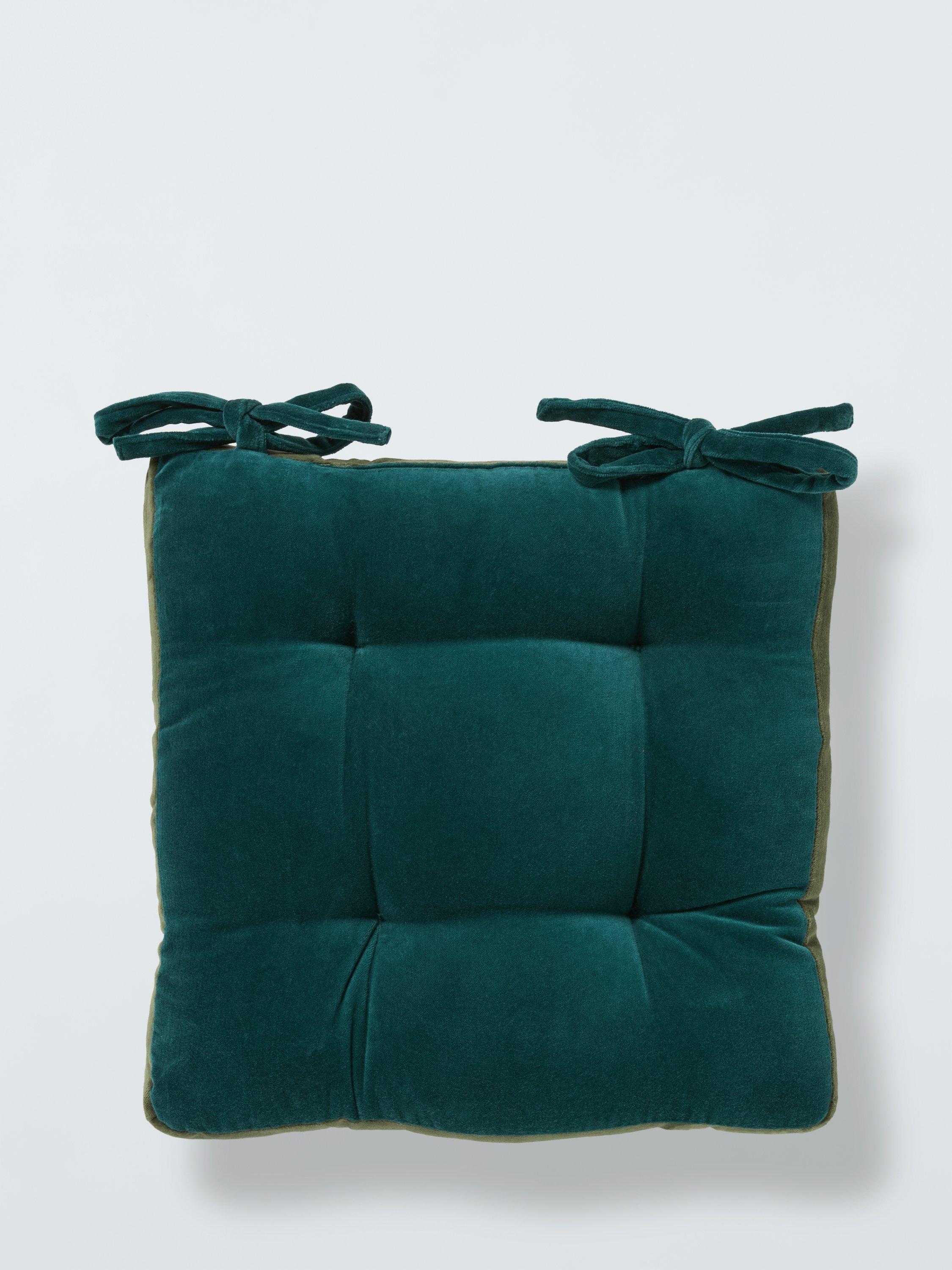 Add a comfortable layer to dining chairs with these polyester filled seat pads. They fasten easily at the back with ties and are covered in plush velvet in two contrasting shades.