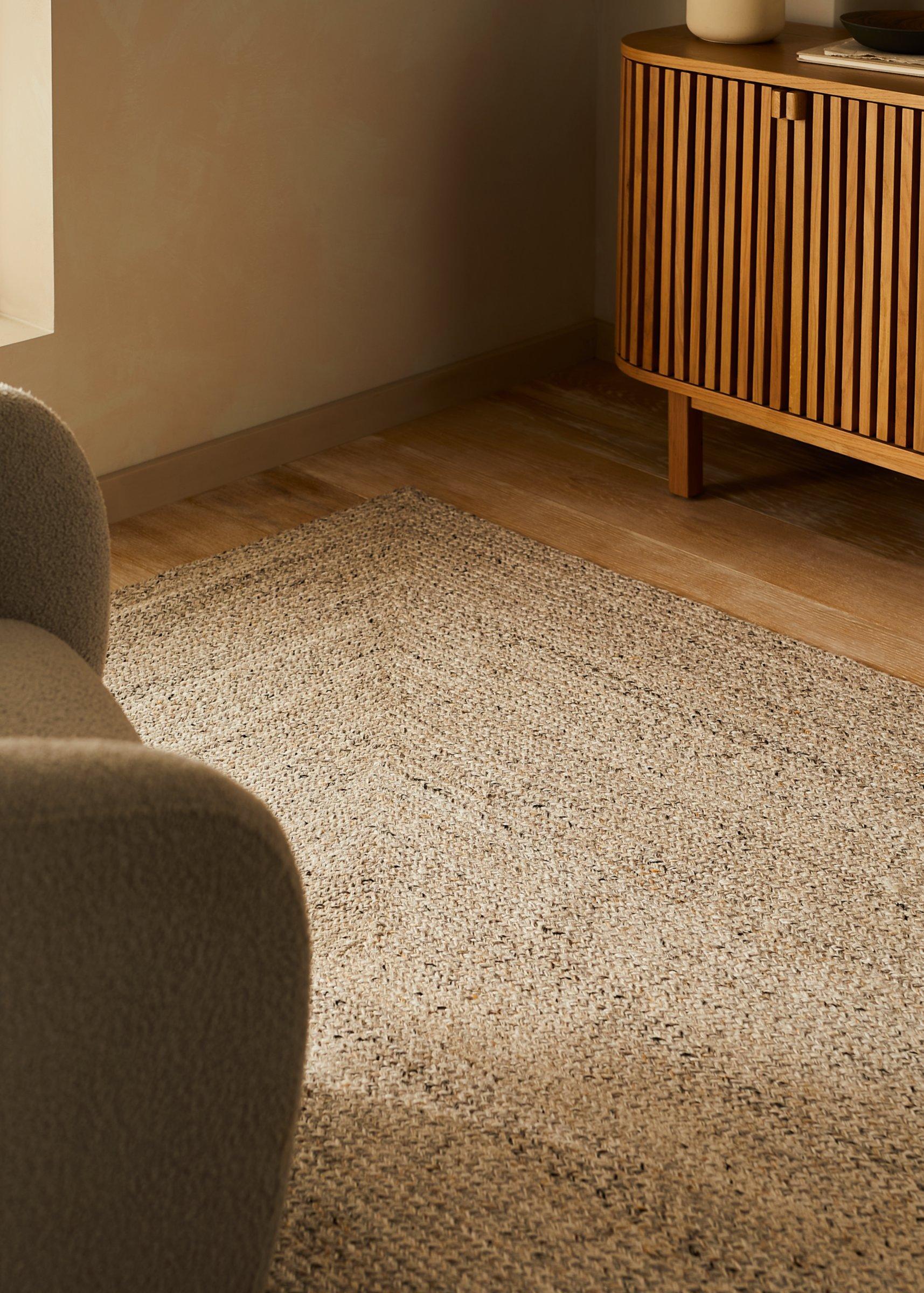 With a flat finish making this rug ideal for busy, high-traffic rooms, the materials in this rug have been woven together by hand to create a strong construction.
