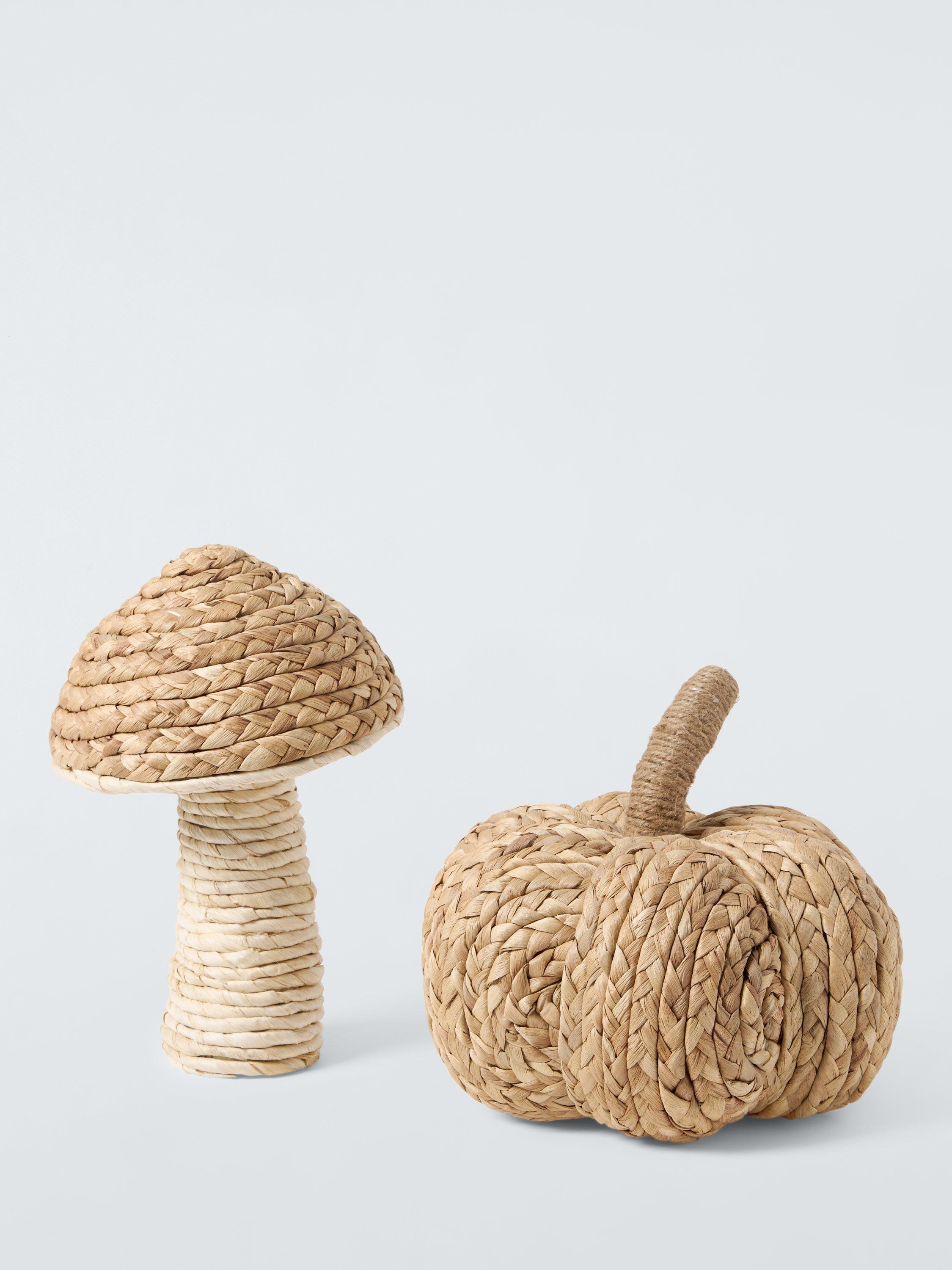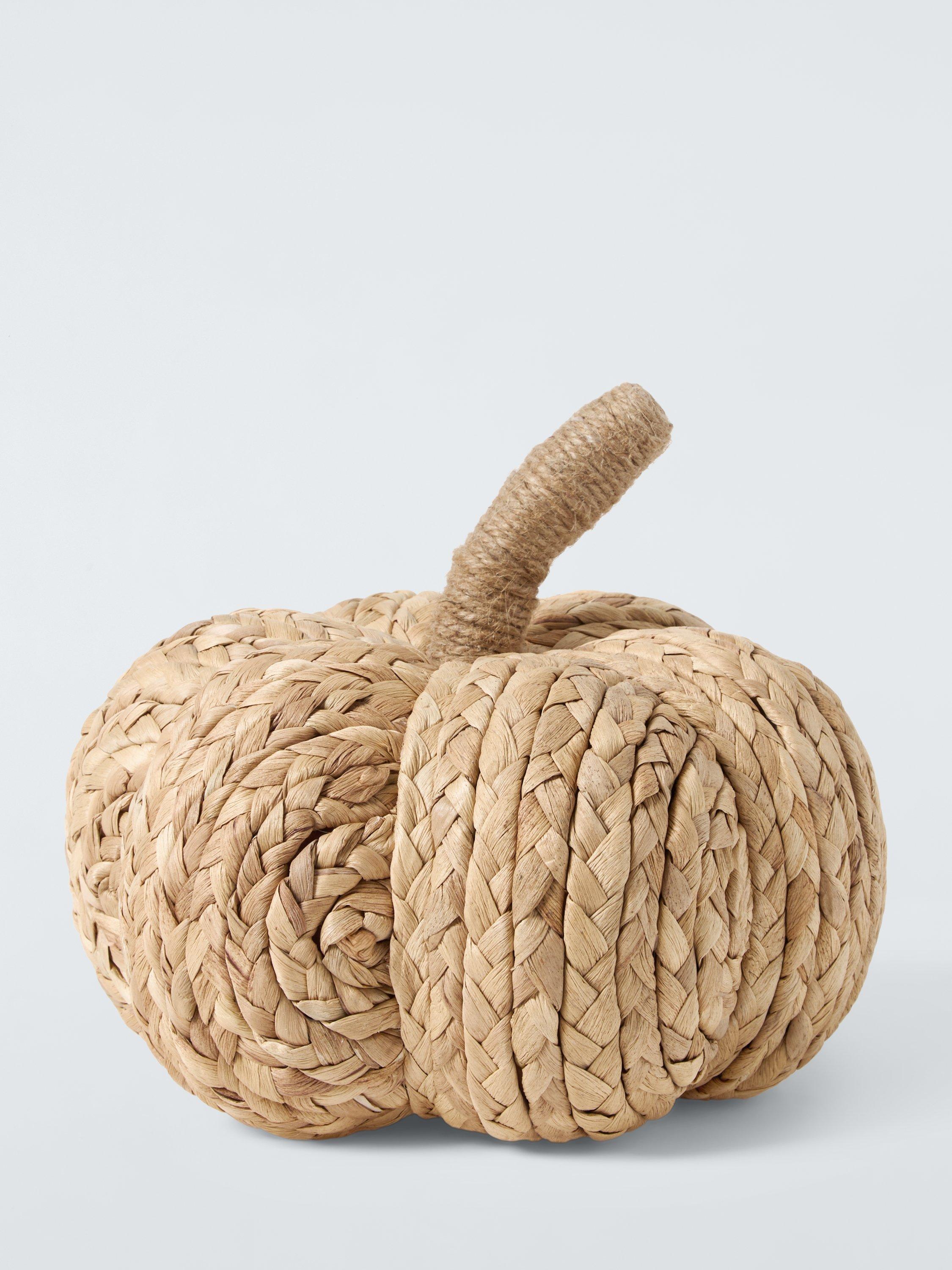 This pretty pumpkin decoration is made from braided corn leaves and sisal string on a foam base.