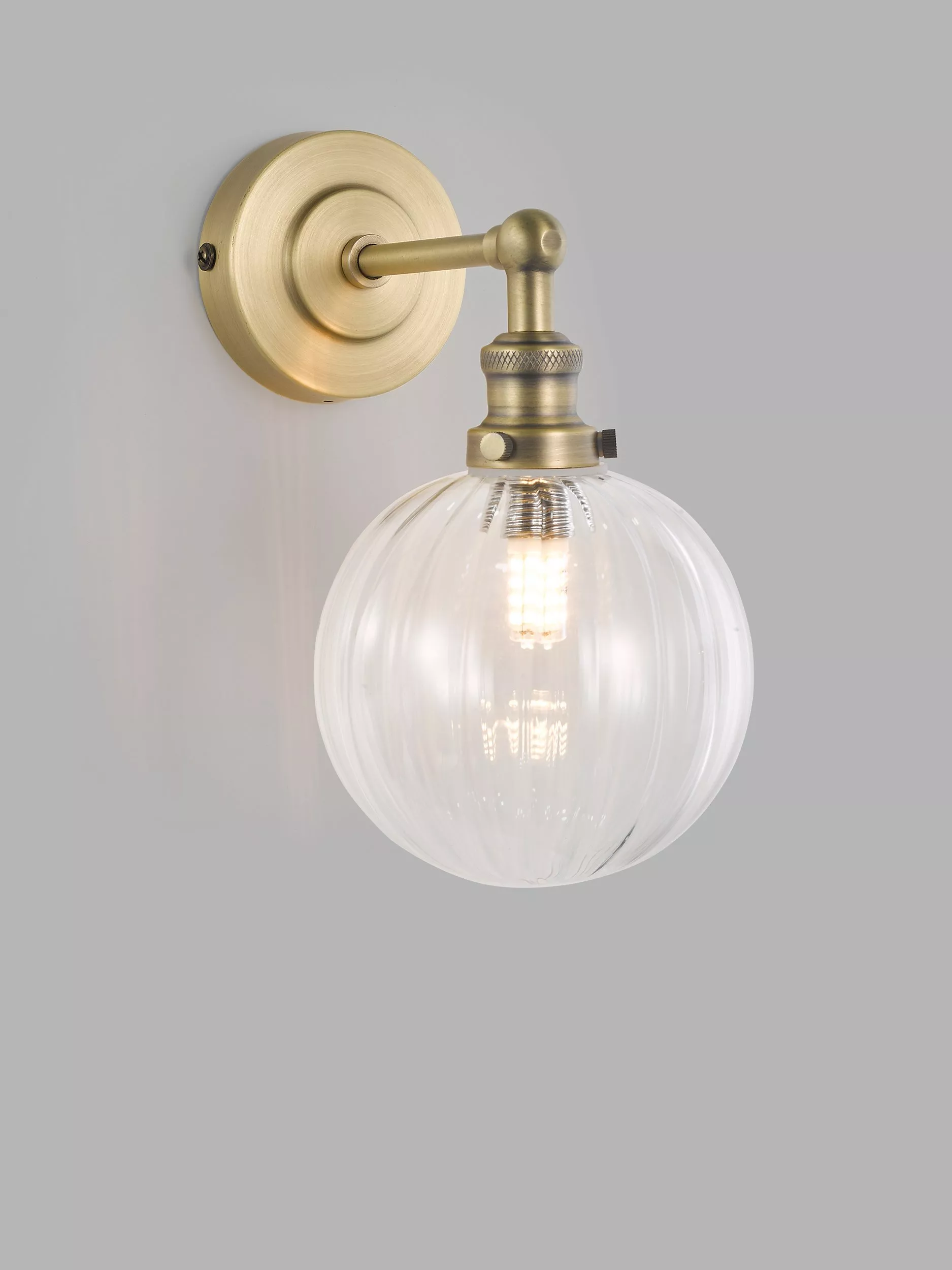 Combining industrial and timeless styling, the Brasserie wall light showcases a matte antique finish with a ribbed glass shade. This wall light offers a classy finish to your interior and is suitable for bathroom use.
