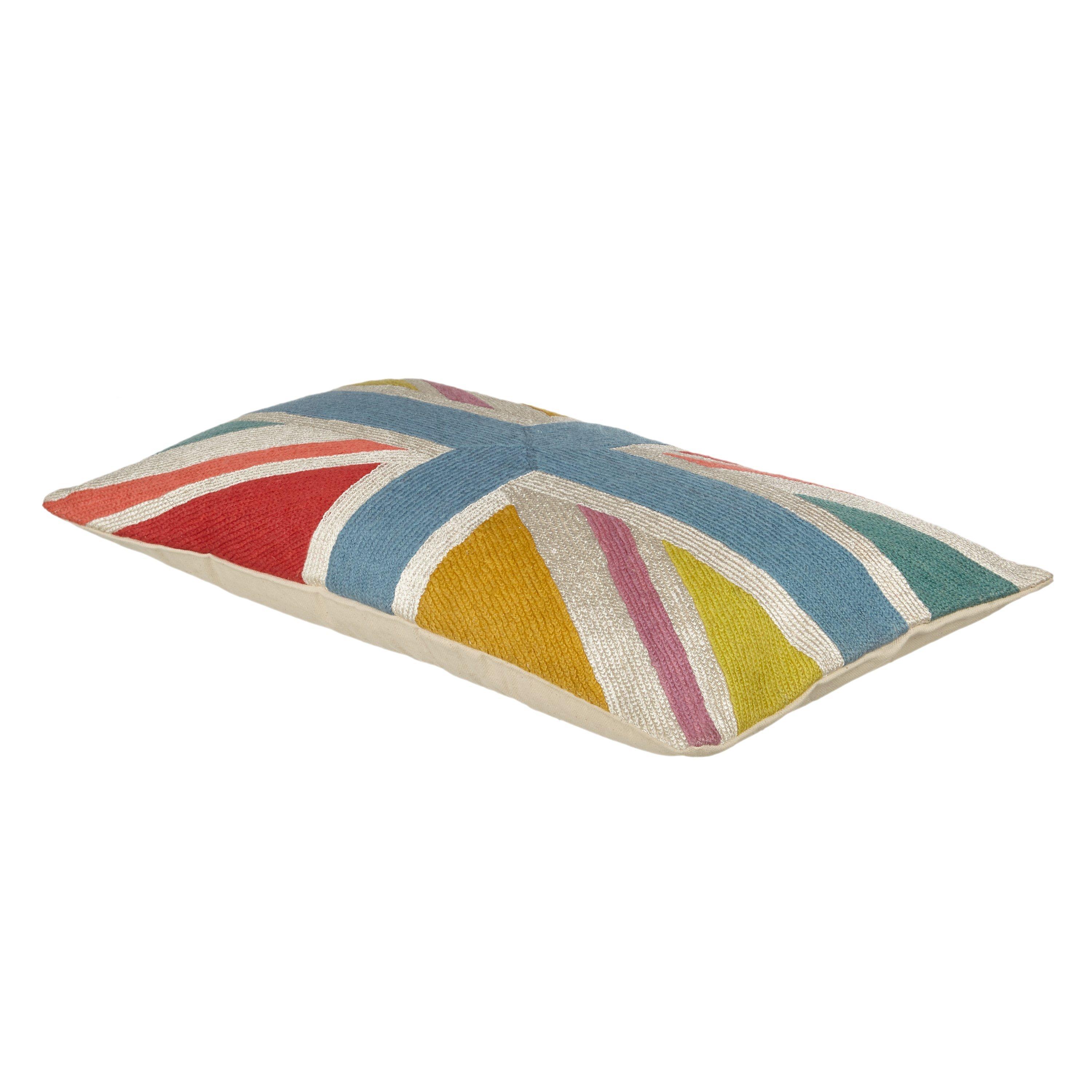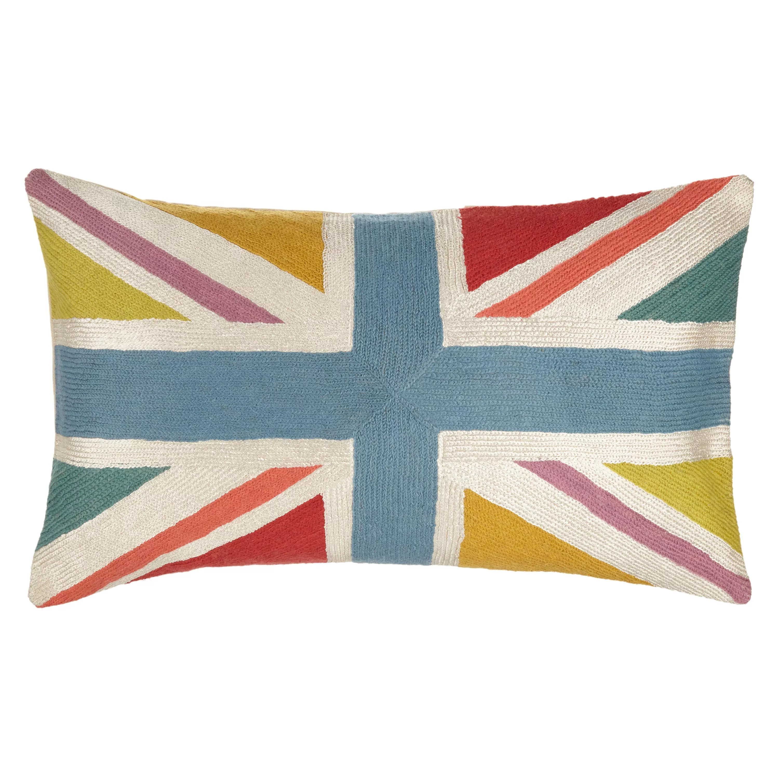 The Union Flag is given a quirky edge in stitched, candy colours. Great for teens' rooms or informal living areas.