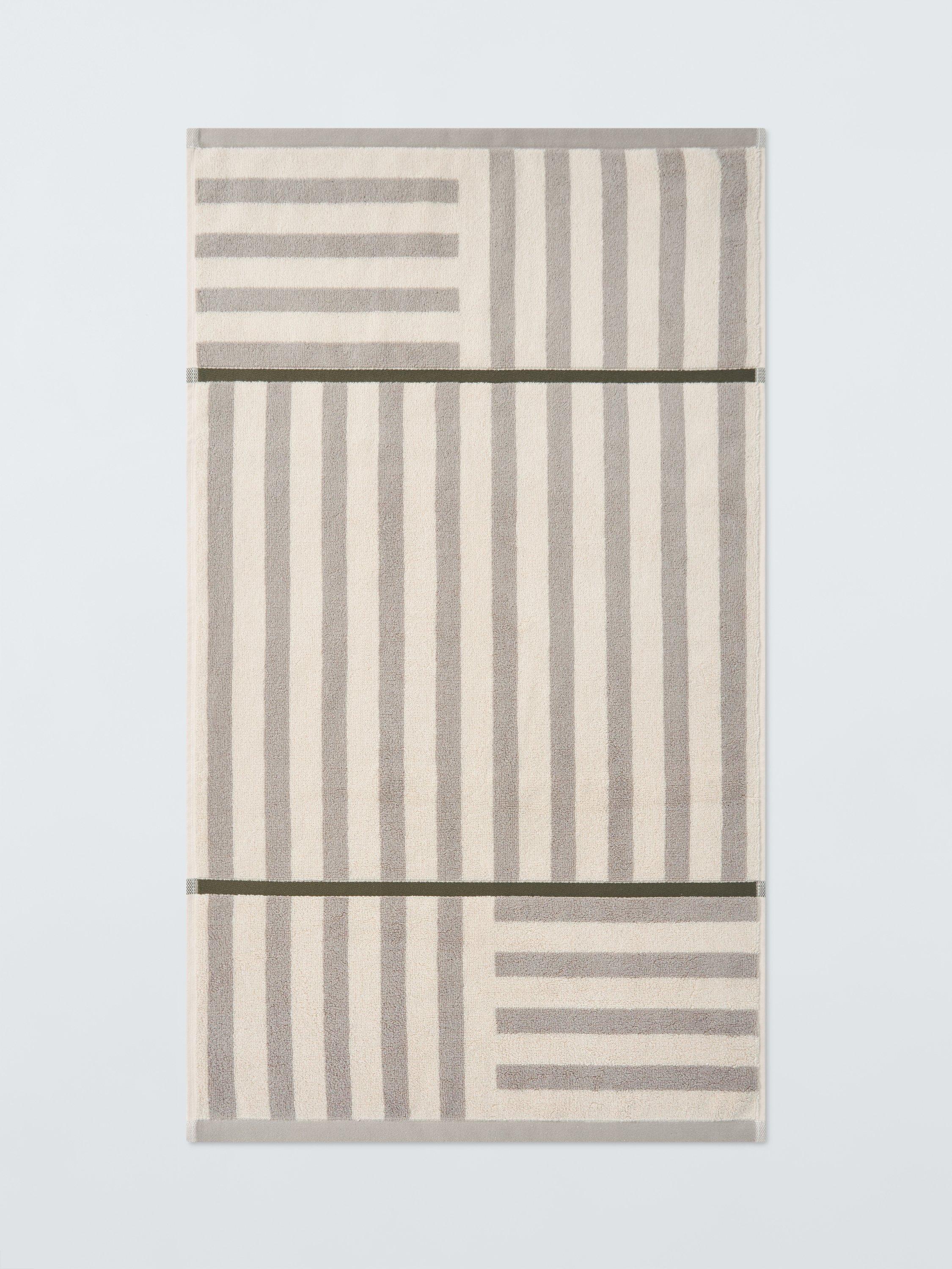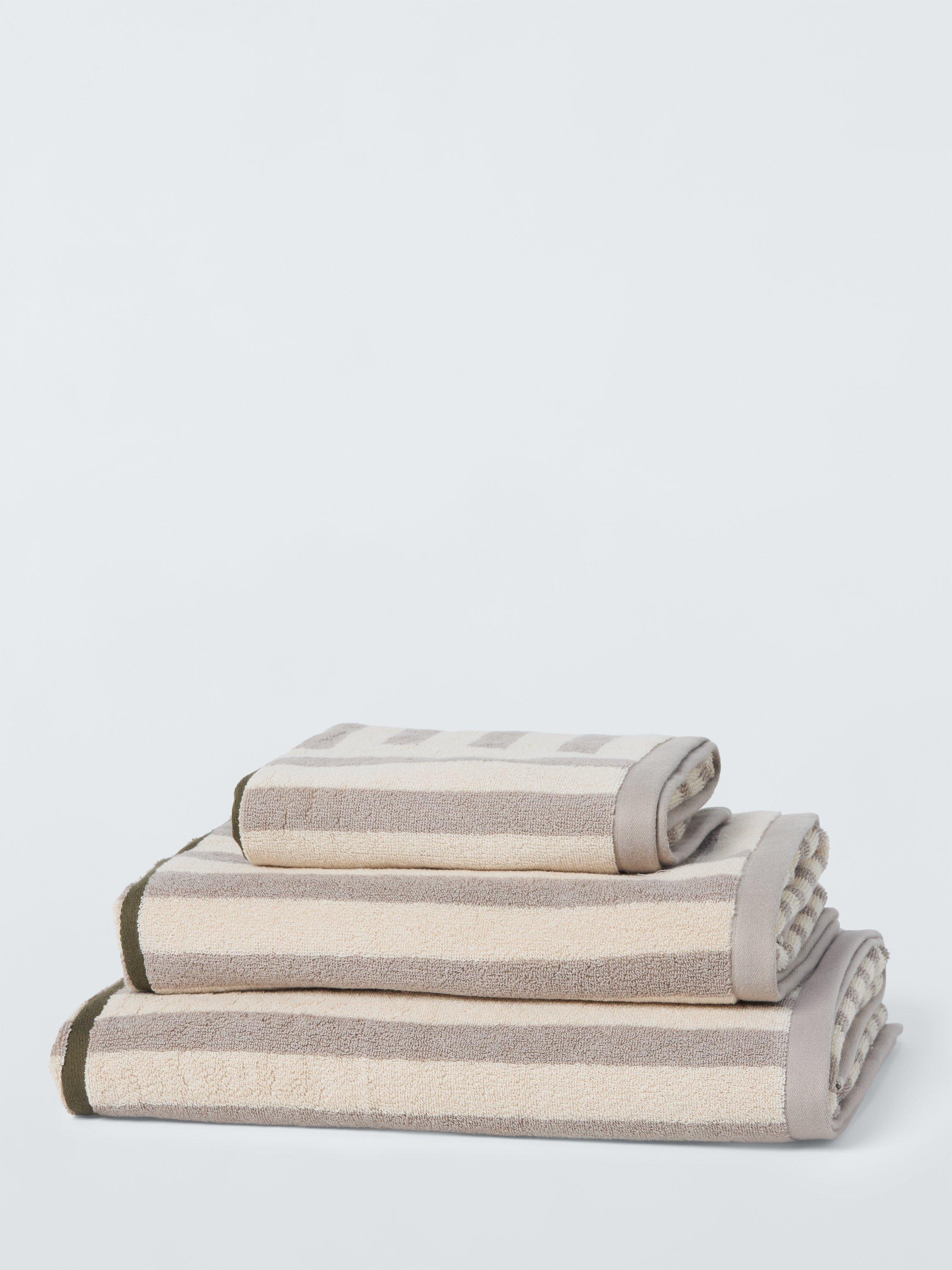 Cotton towels in a broken stripe design to suit modern bathrooms.