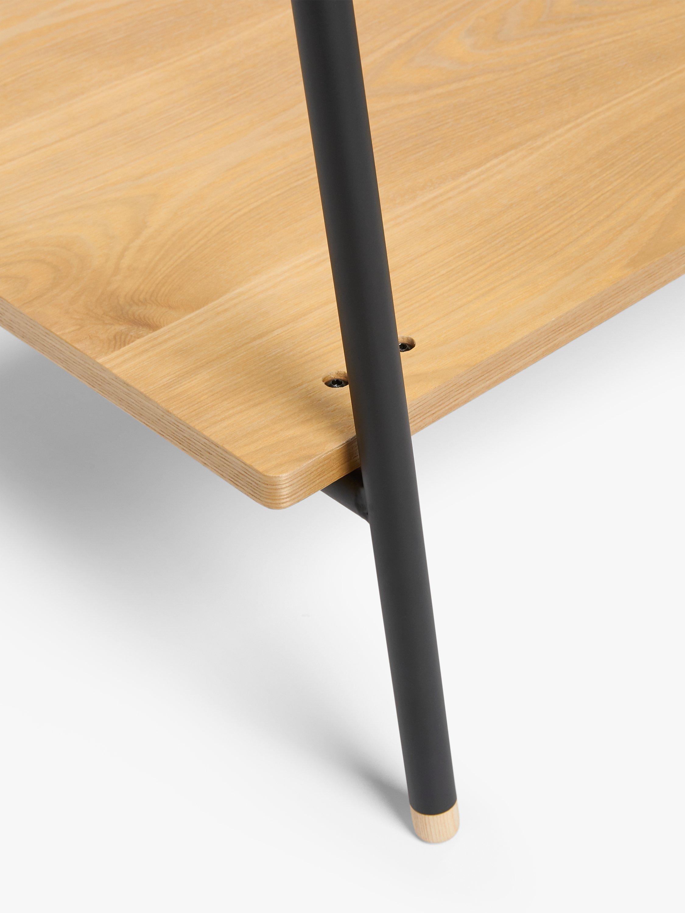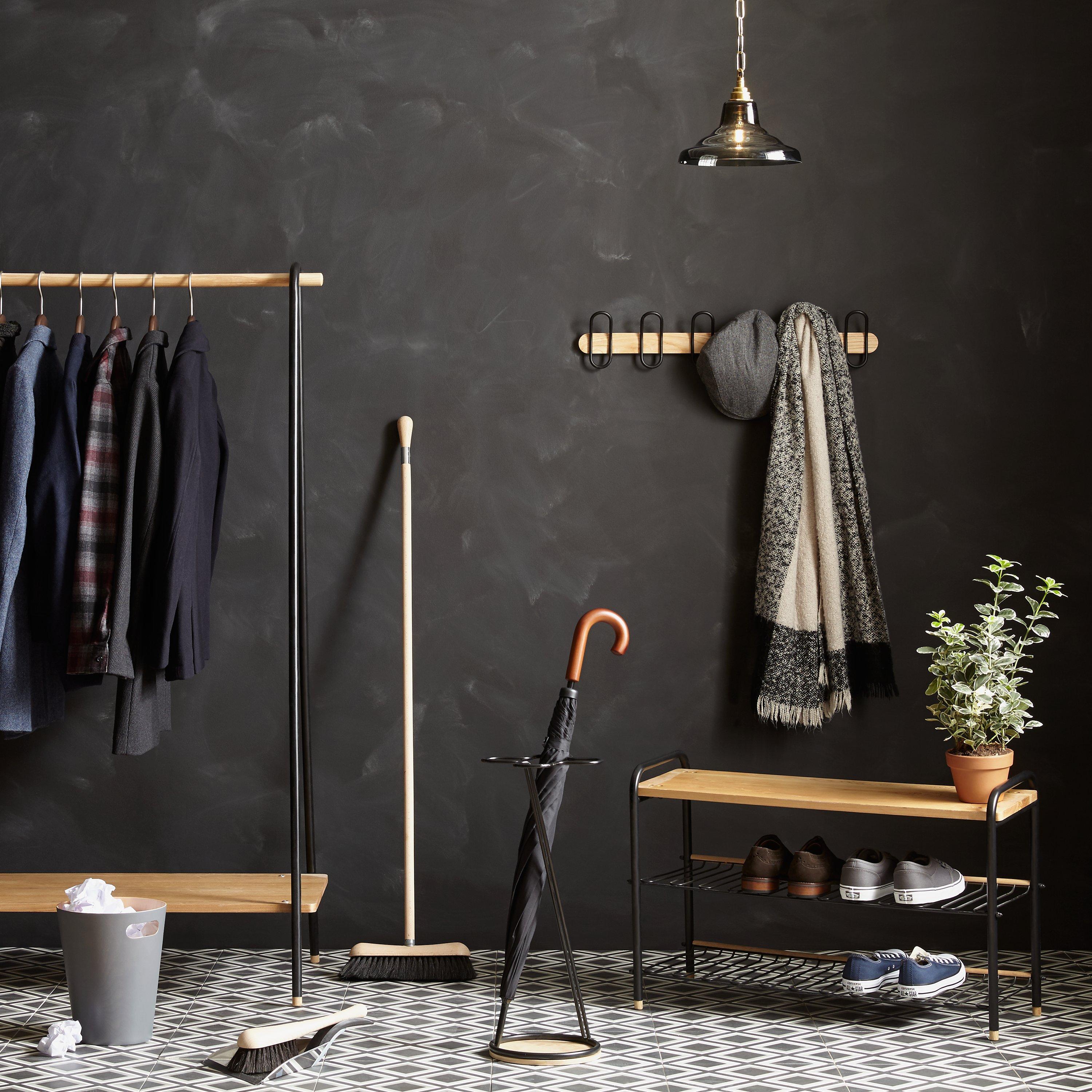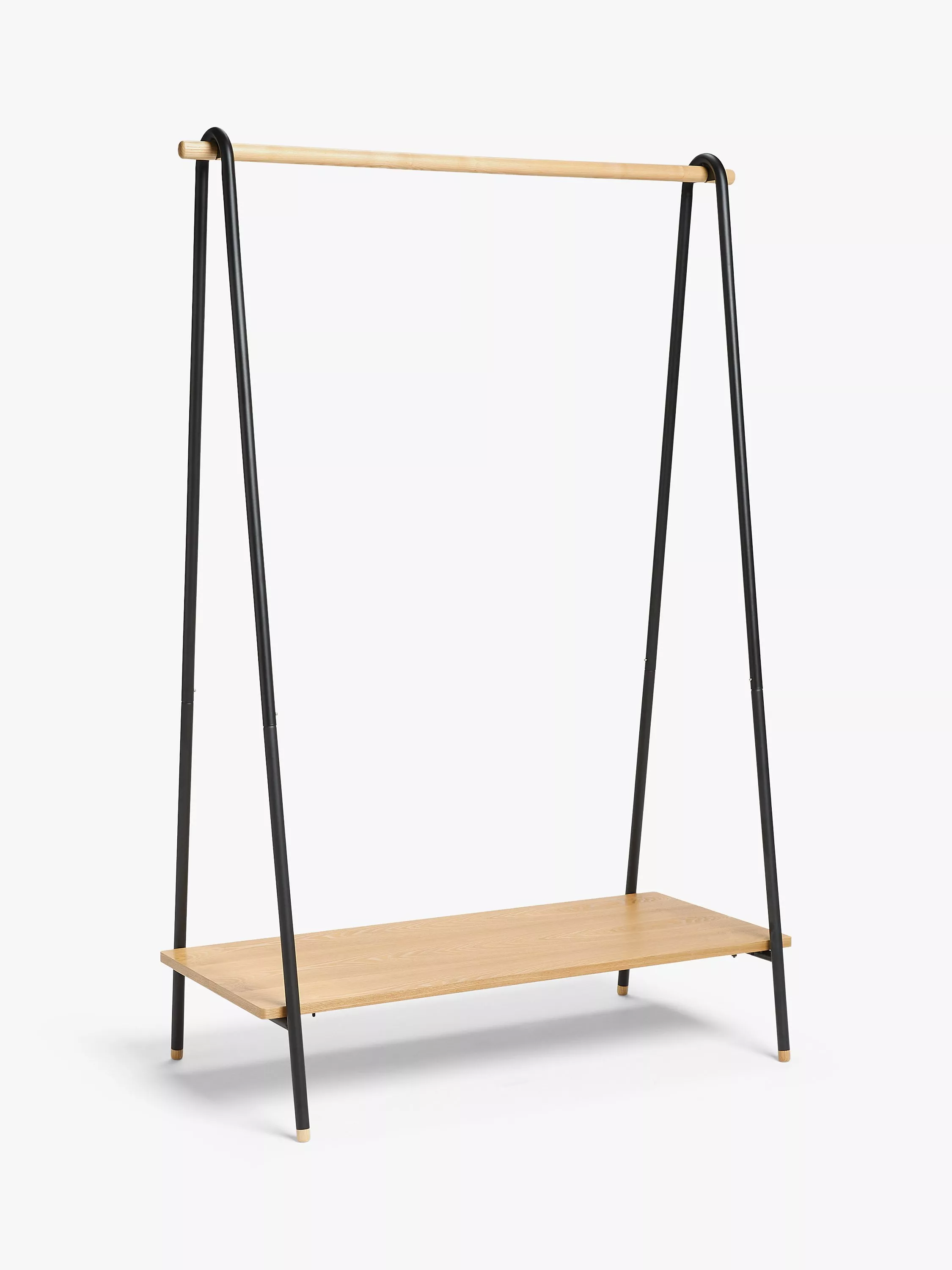Practical and attractive, this clothes rail has a sturdy ash wood pole to hang your clothes, plus a matching shelf for shoes or handbags. The frame is made from tubular steel, painted to match most surroundings.