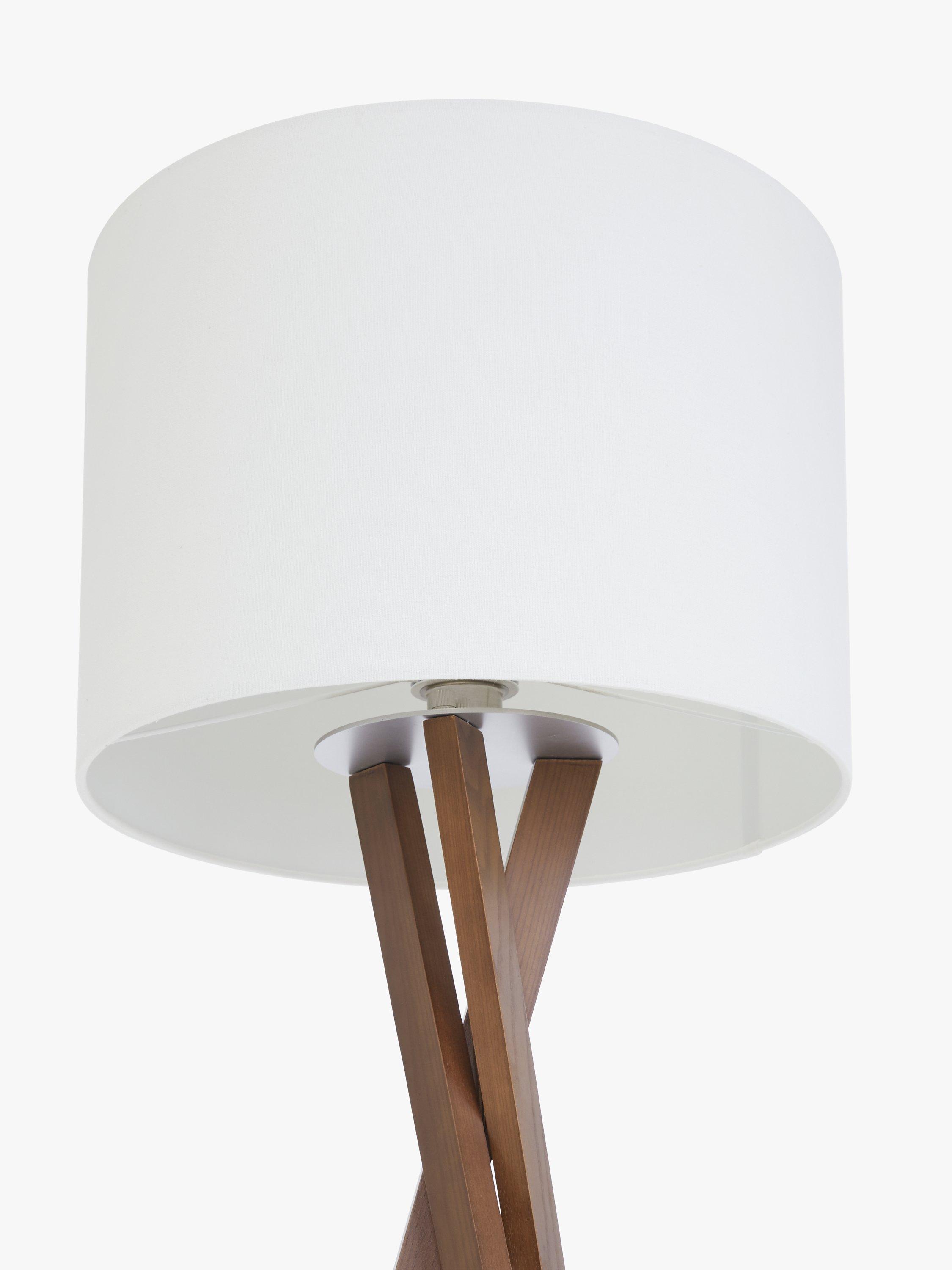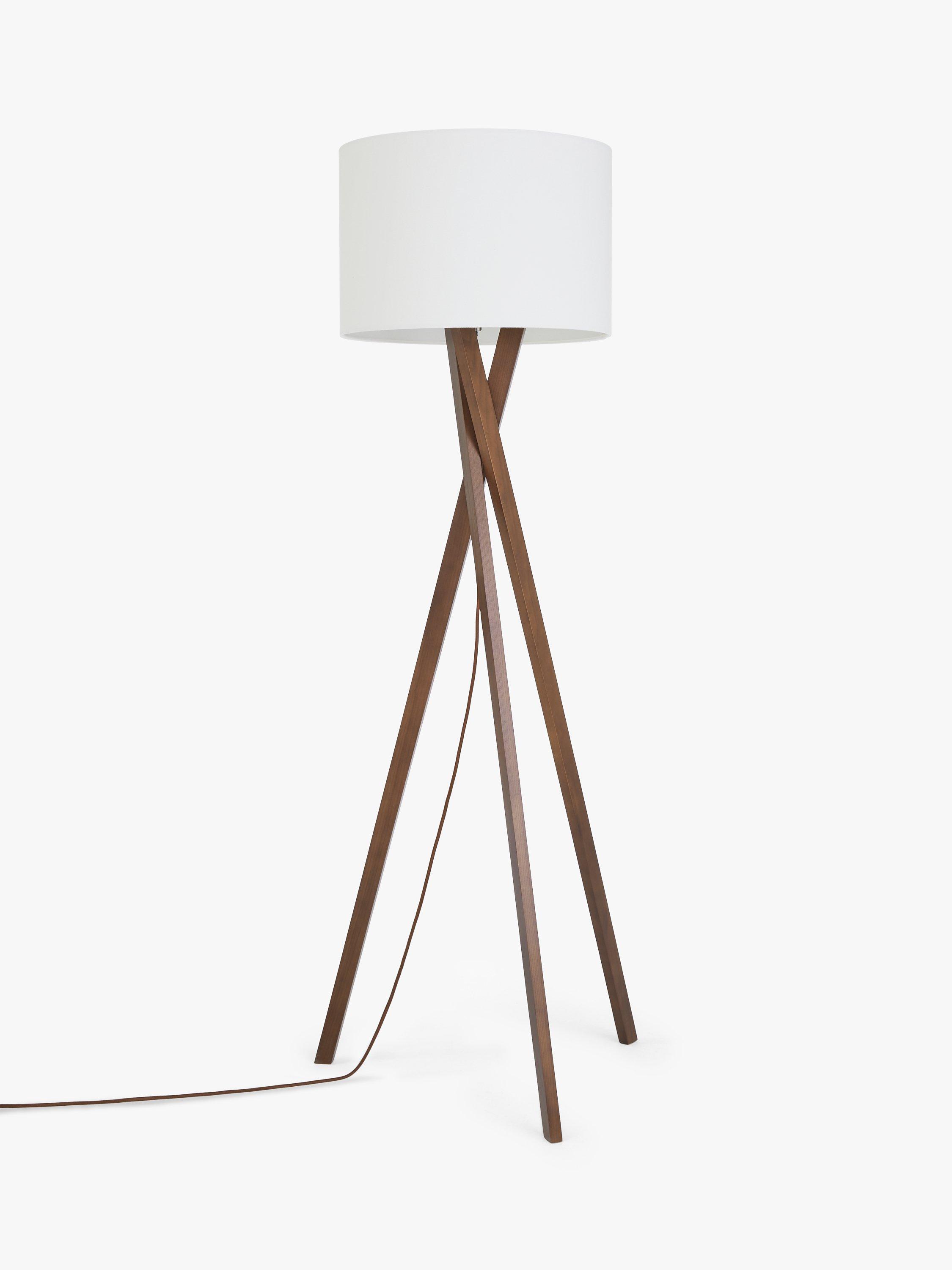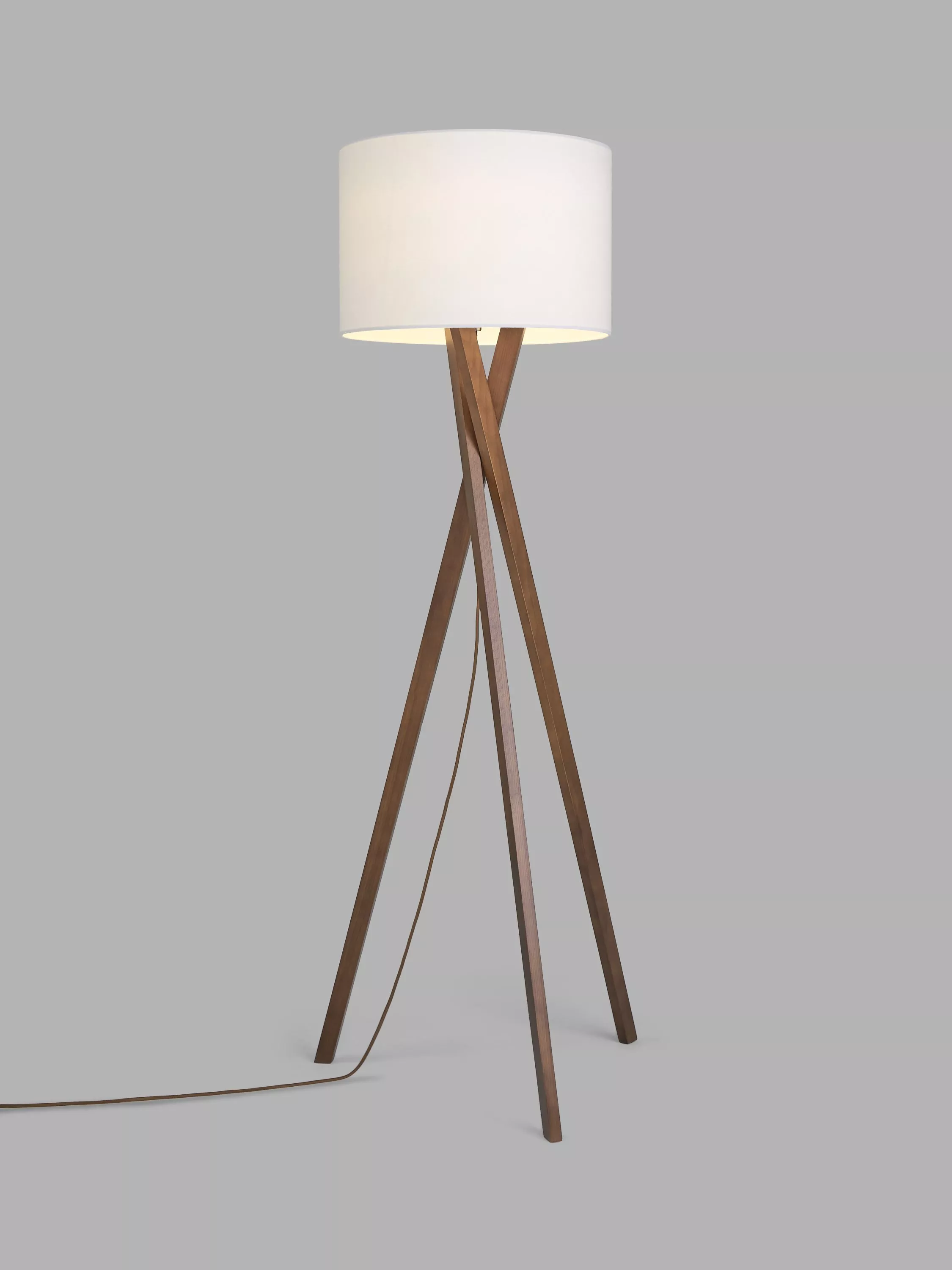 A sleek tripod base suits a variety of settings from contemporary, rustic, transitional to loft style. The legs attach to a metal disc that supports the socket and a textured linen shade. A sleek, decorative fabric covered cord hangs down from the socket and a three-way rotary switch, on the socket, controls the LED bulb. Designed with an on/off floor switch. This floor lamp is smart outlet compatible.