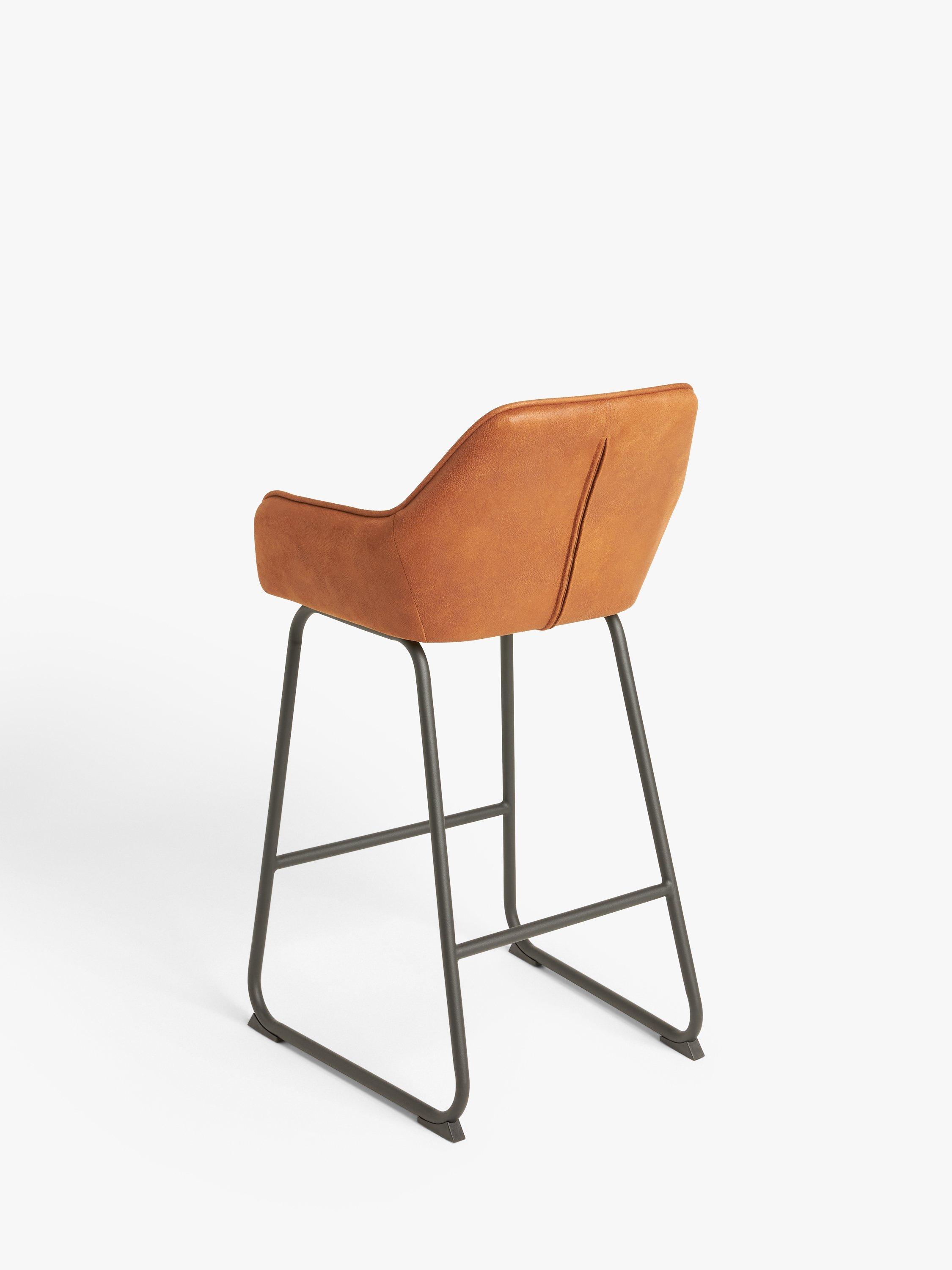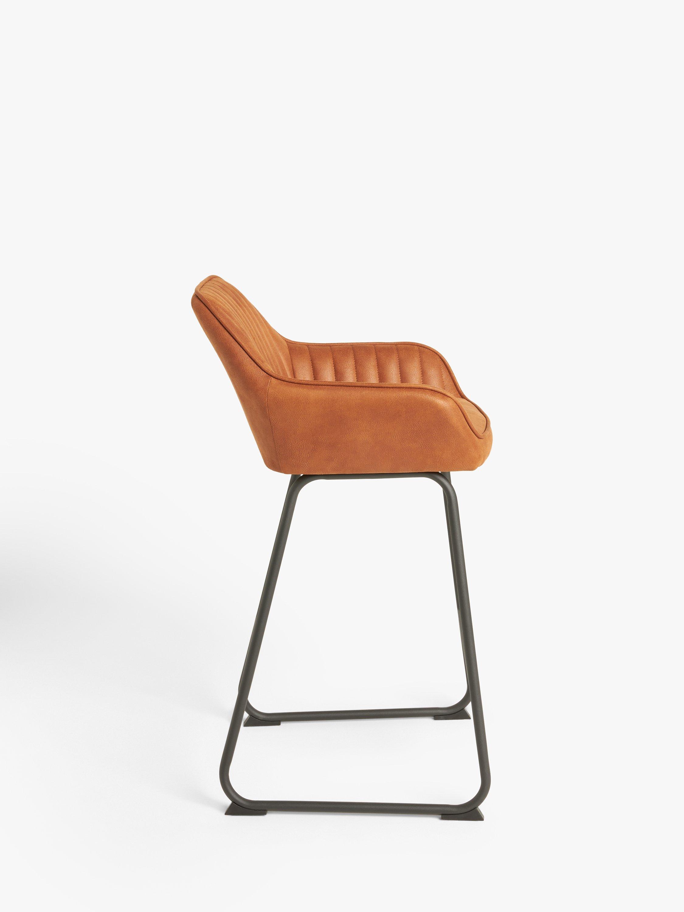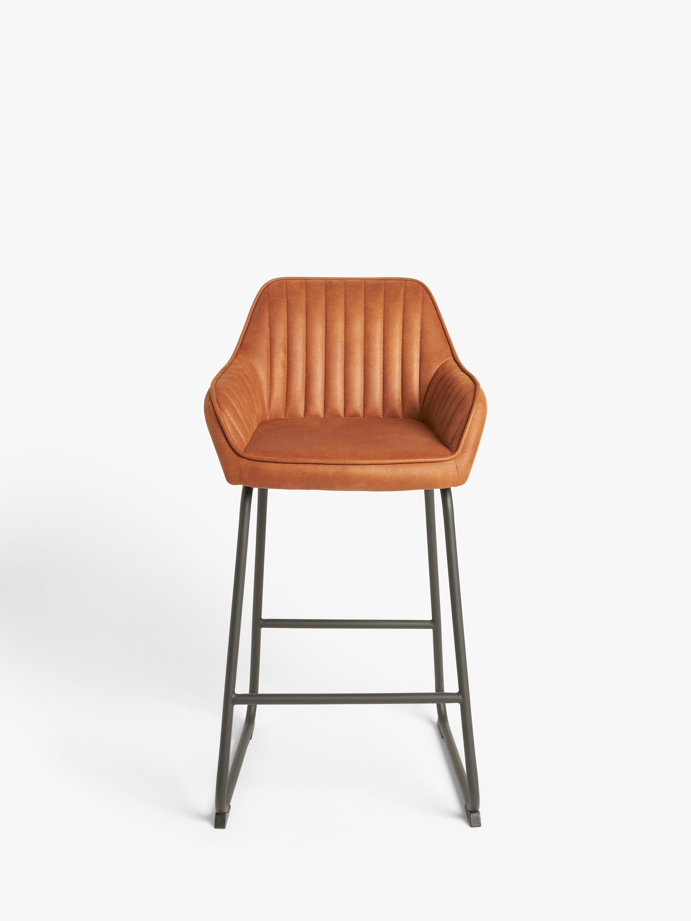Our Brooks bar stool has a tactile seat upholstered in resilient faux leather and a minimalist yet stable metal leg frame with a leg rest. Well-cushioned and quilted in a neatly stitched design, it's ideal for casual dining with the backrest, integrated arms and foam-filled seat providing comfortable support.