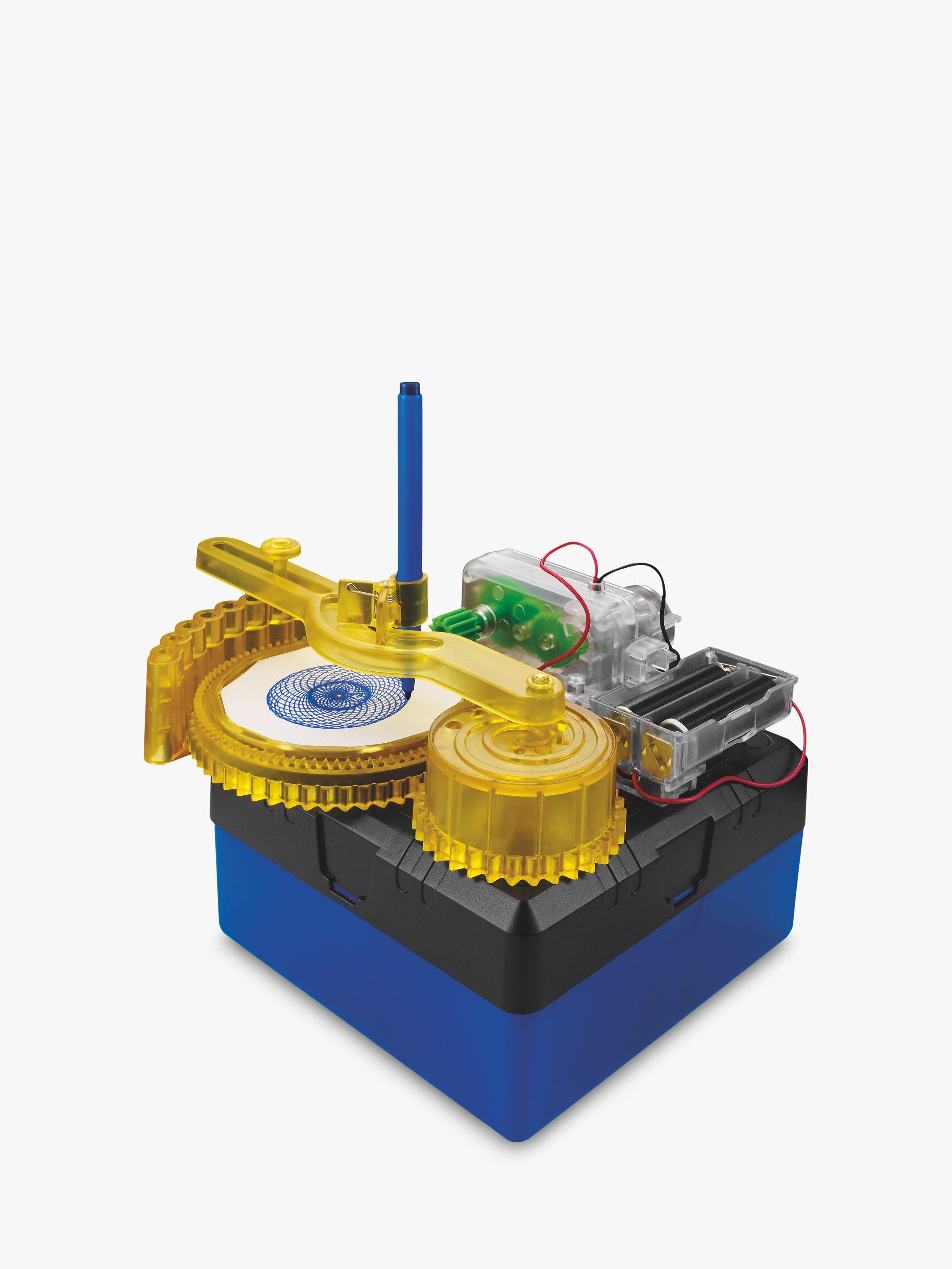 For those who can't decide between science and the arts, why not have both!? Ideal for curious and creative minds alike, this build-it-yourself spiral drawing kit we've designed connects together to create a battery-powered drawing machine.