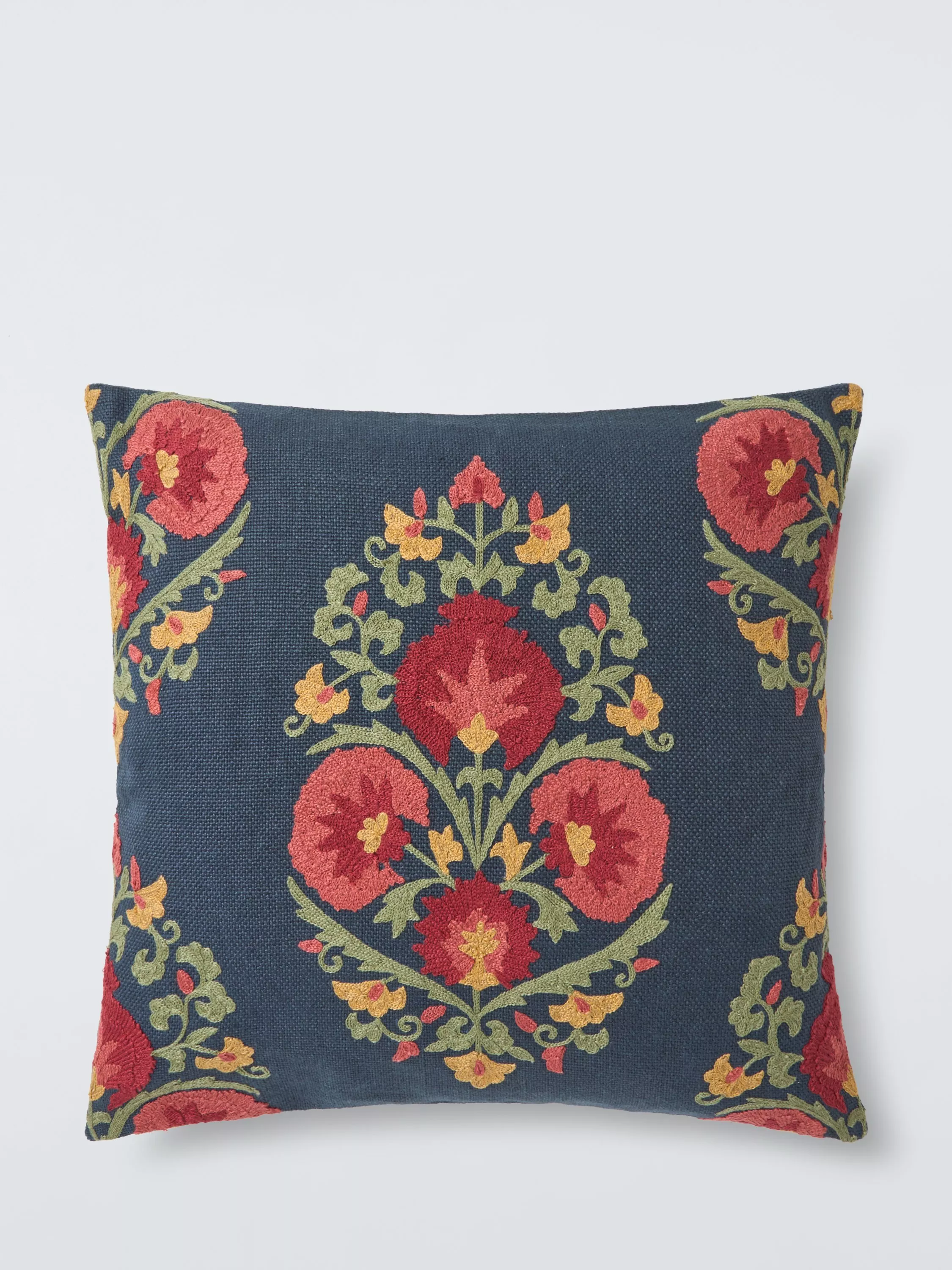 Bukhara features an elaborate stylised floral chainstitched onto a woven background.