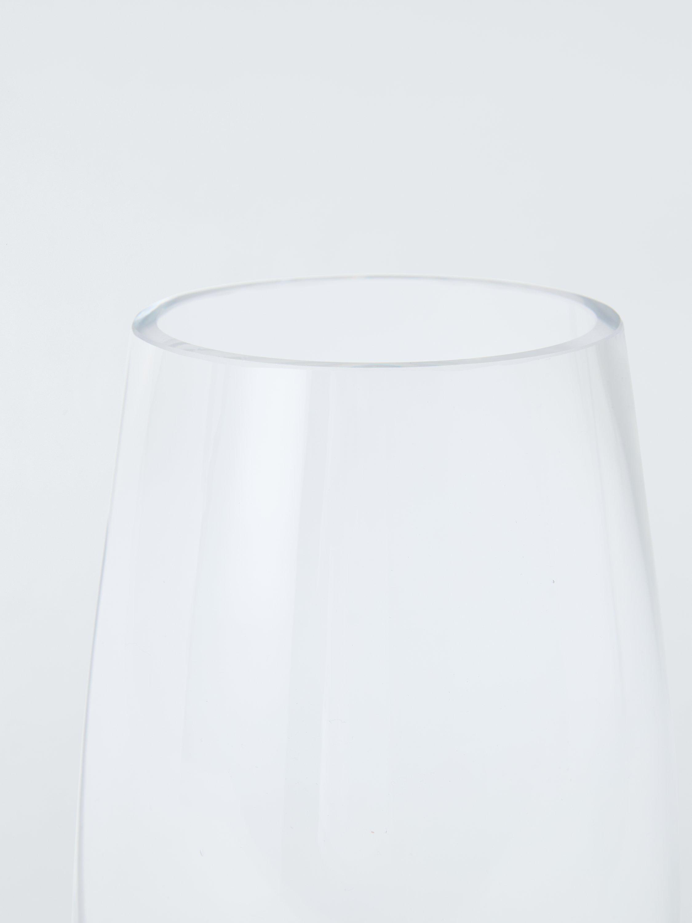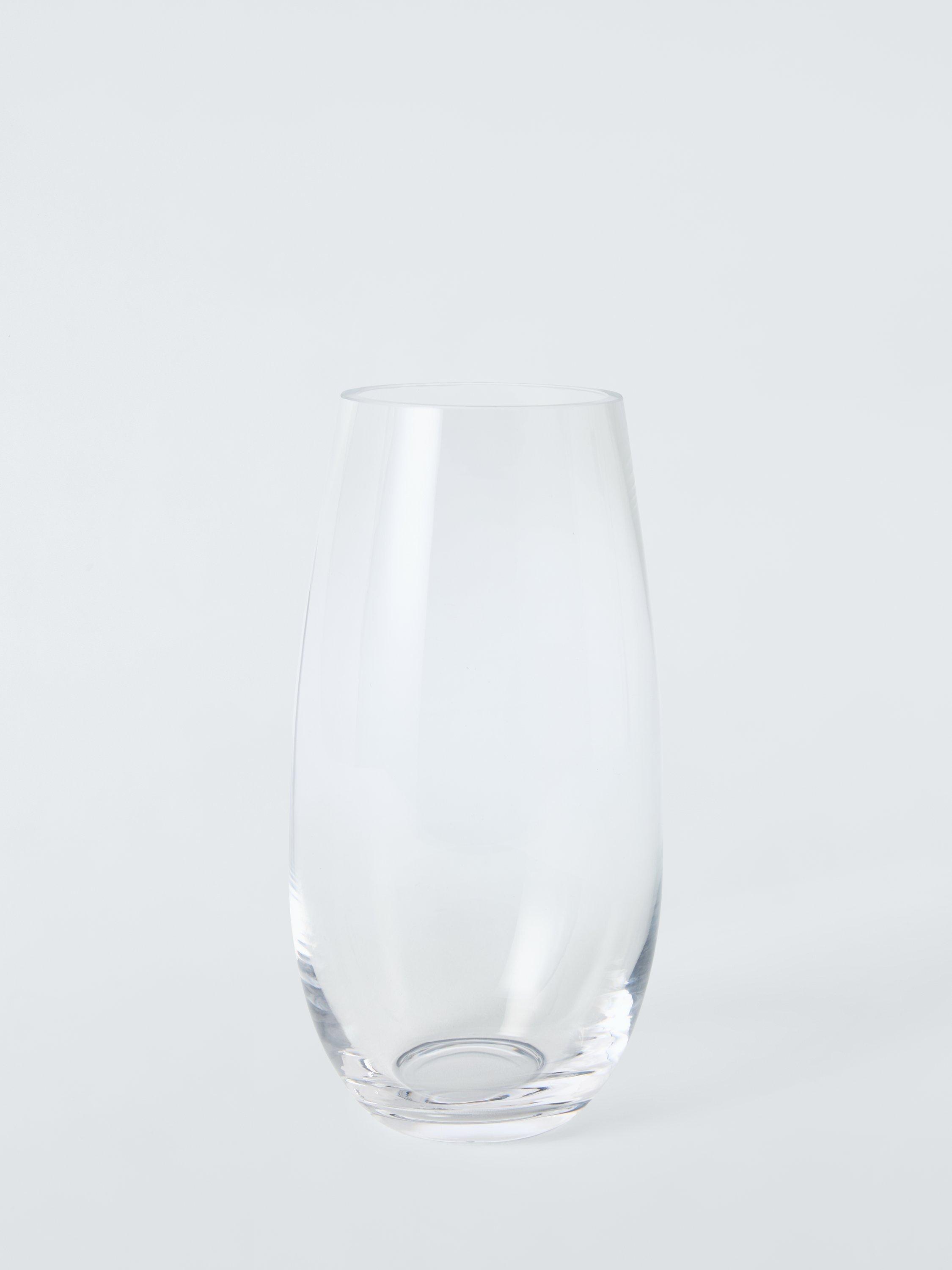 Barrel-shaped for displaying mixed bouquets, this glass vase has a simple design that keeps the focus on the florals.