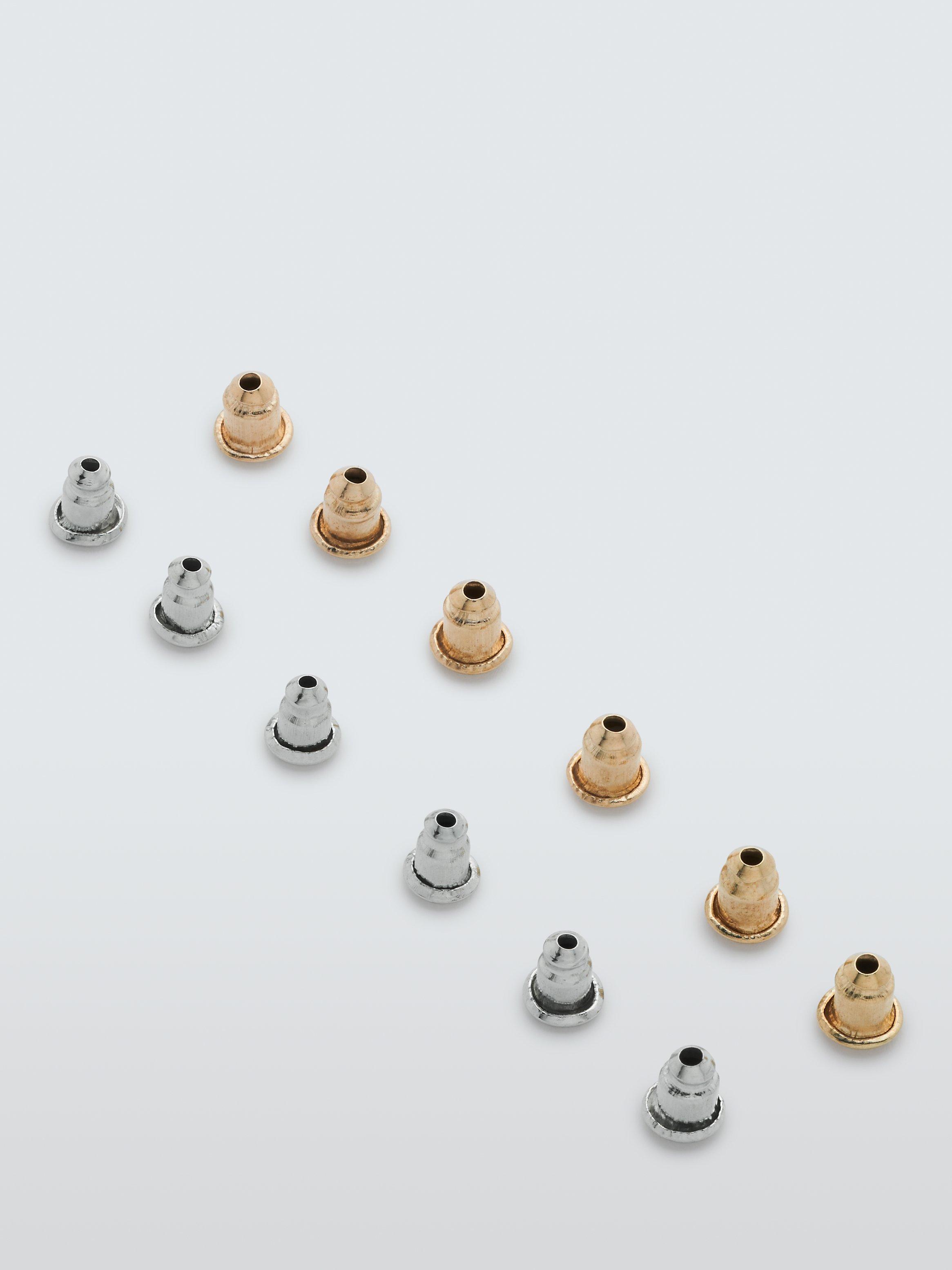This mixed pack of gold and silver bullet style earring backs contains 6 pairs.
