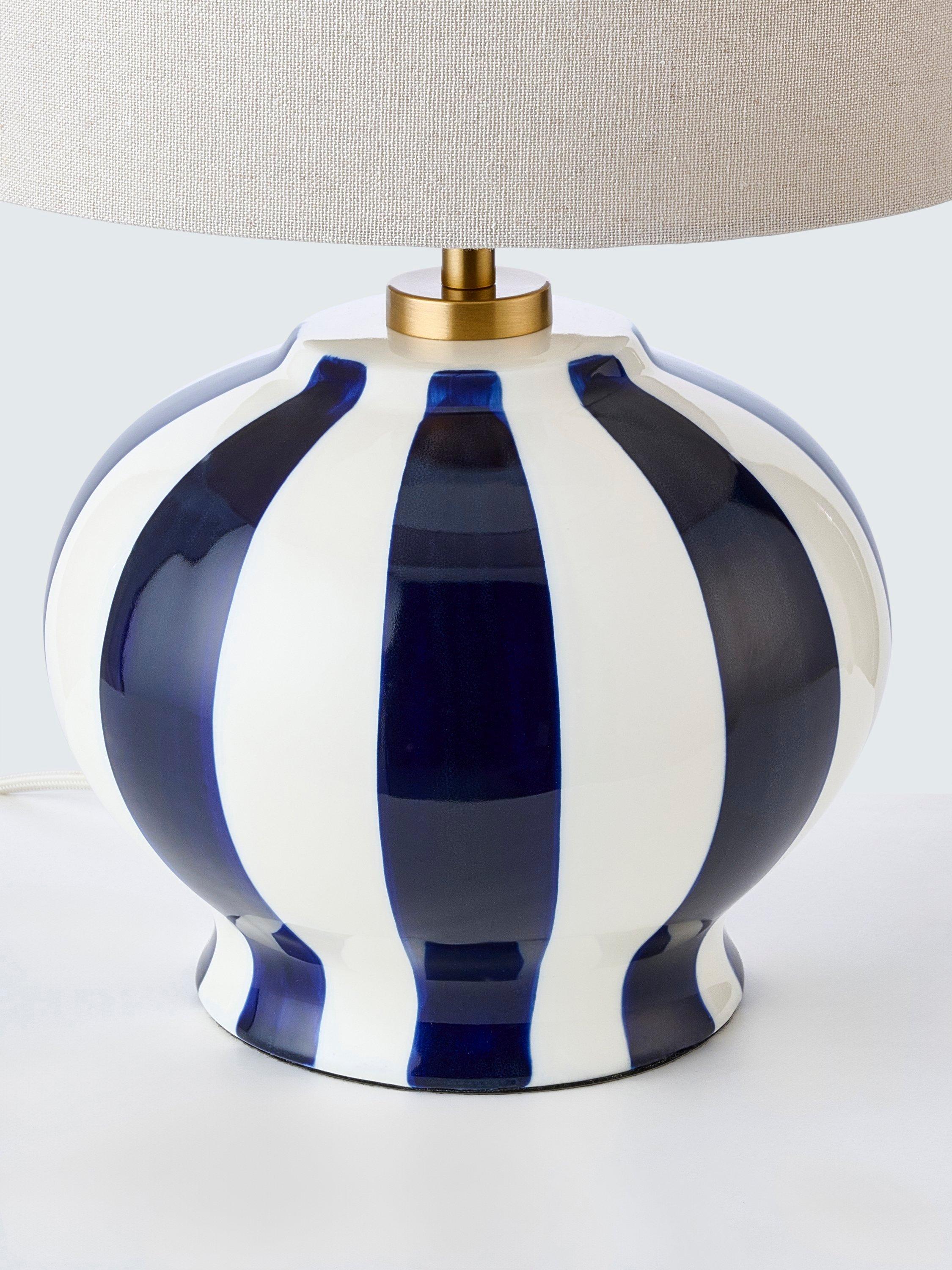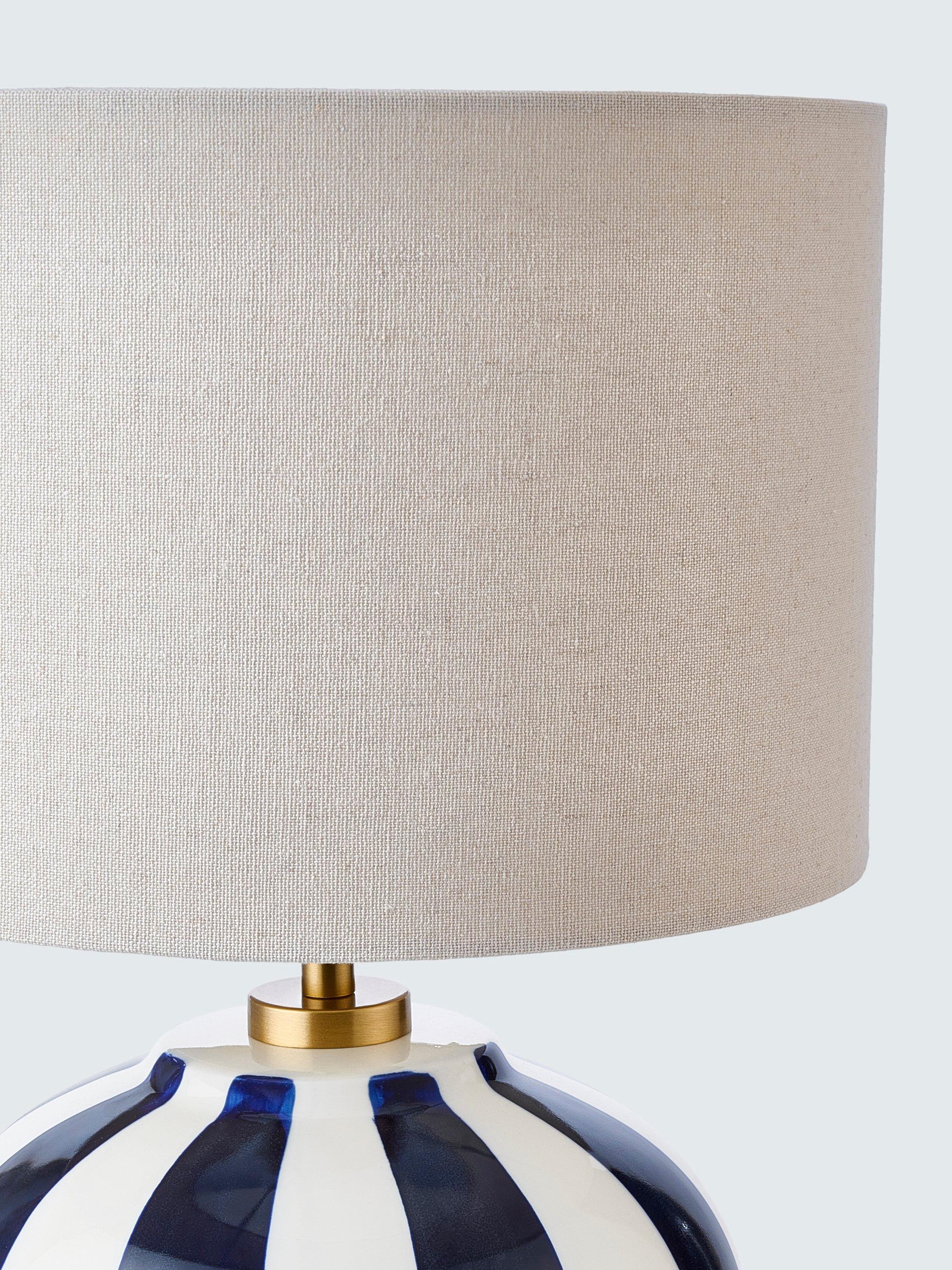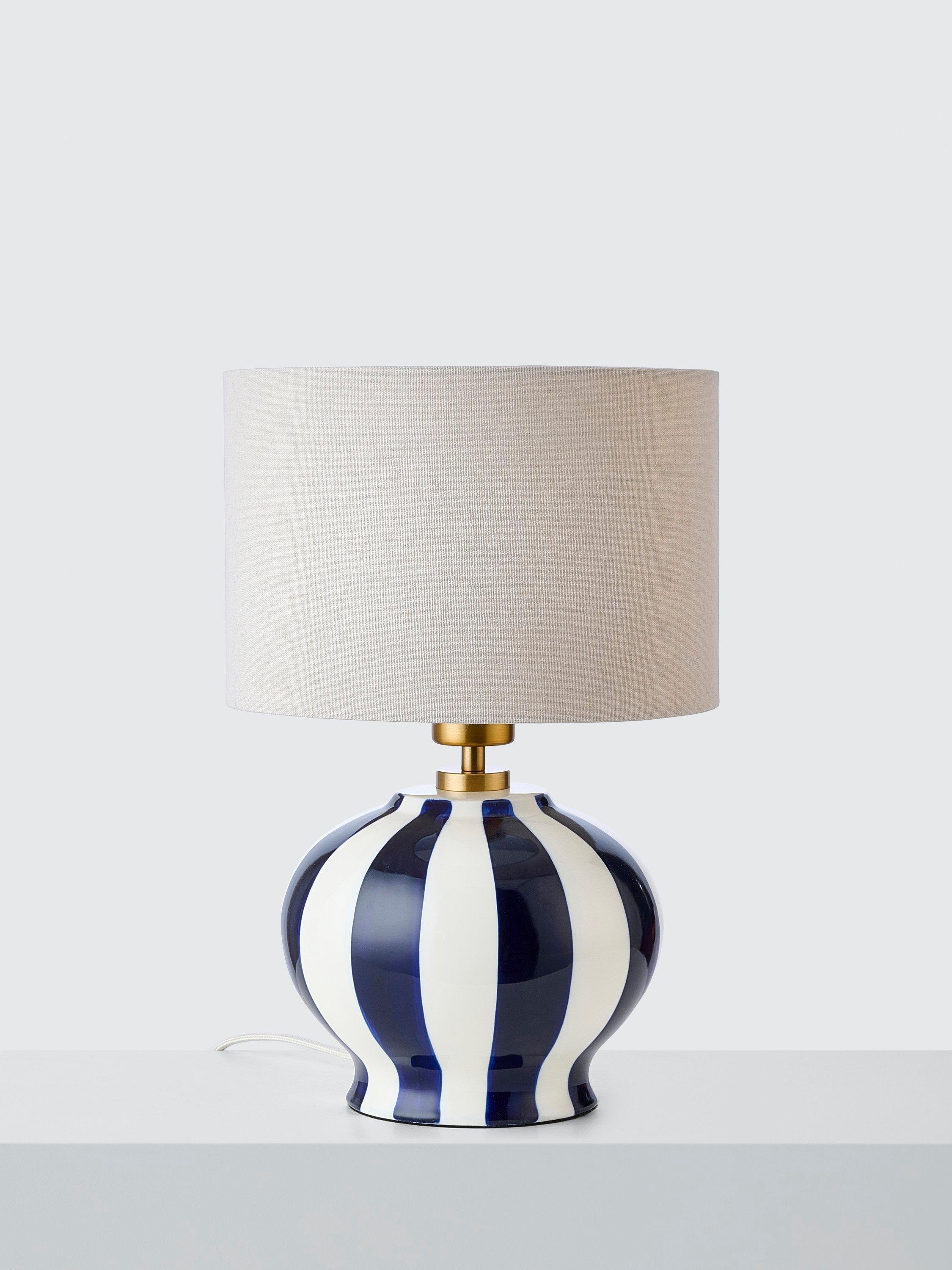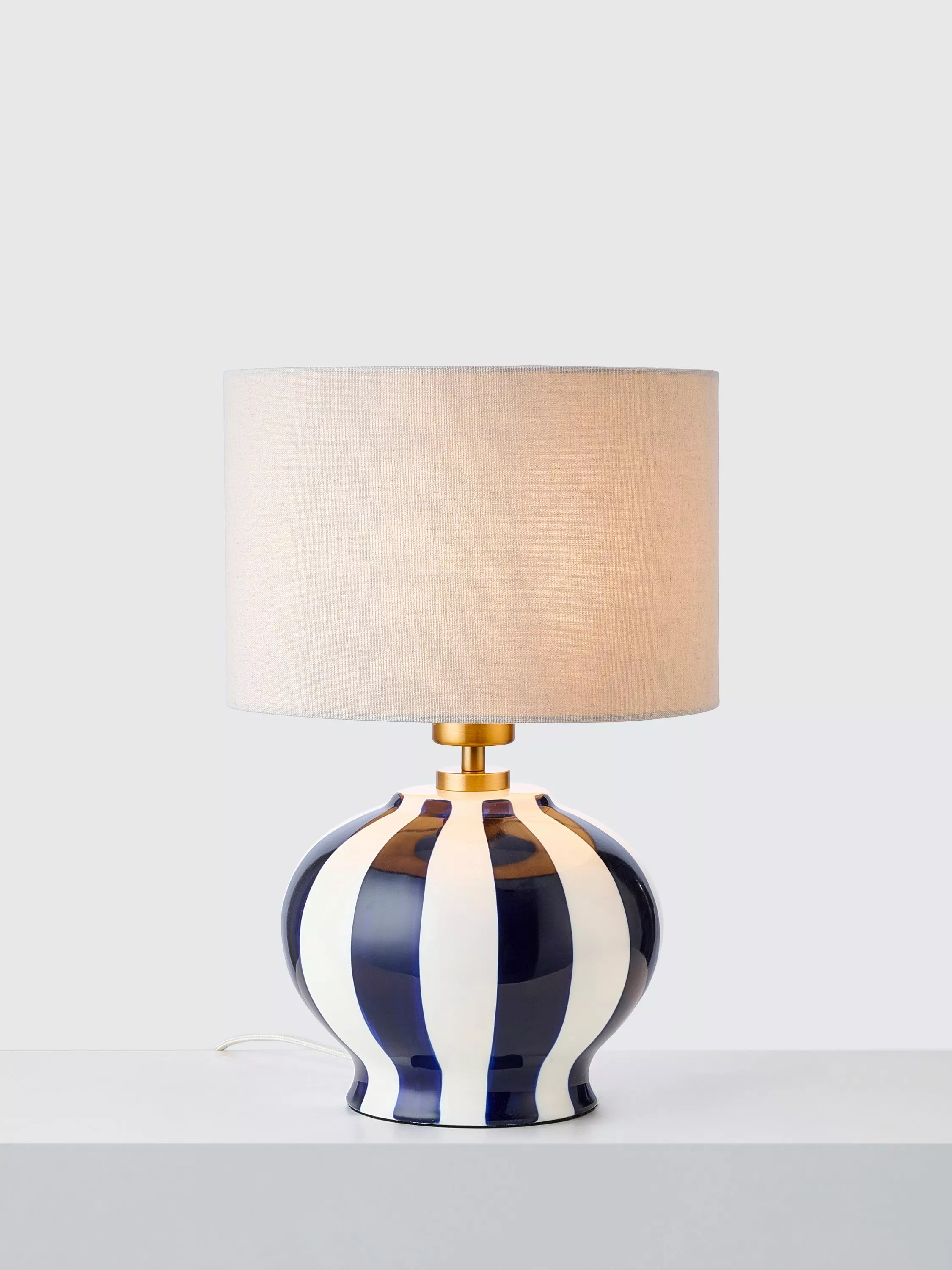 With colourful hand-painted stripes and a complementary lampshade, this striking lamp can be used in bedrooms, lounges and hallways for a maximalist look. Comes with a braided cable in a neutral tone.