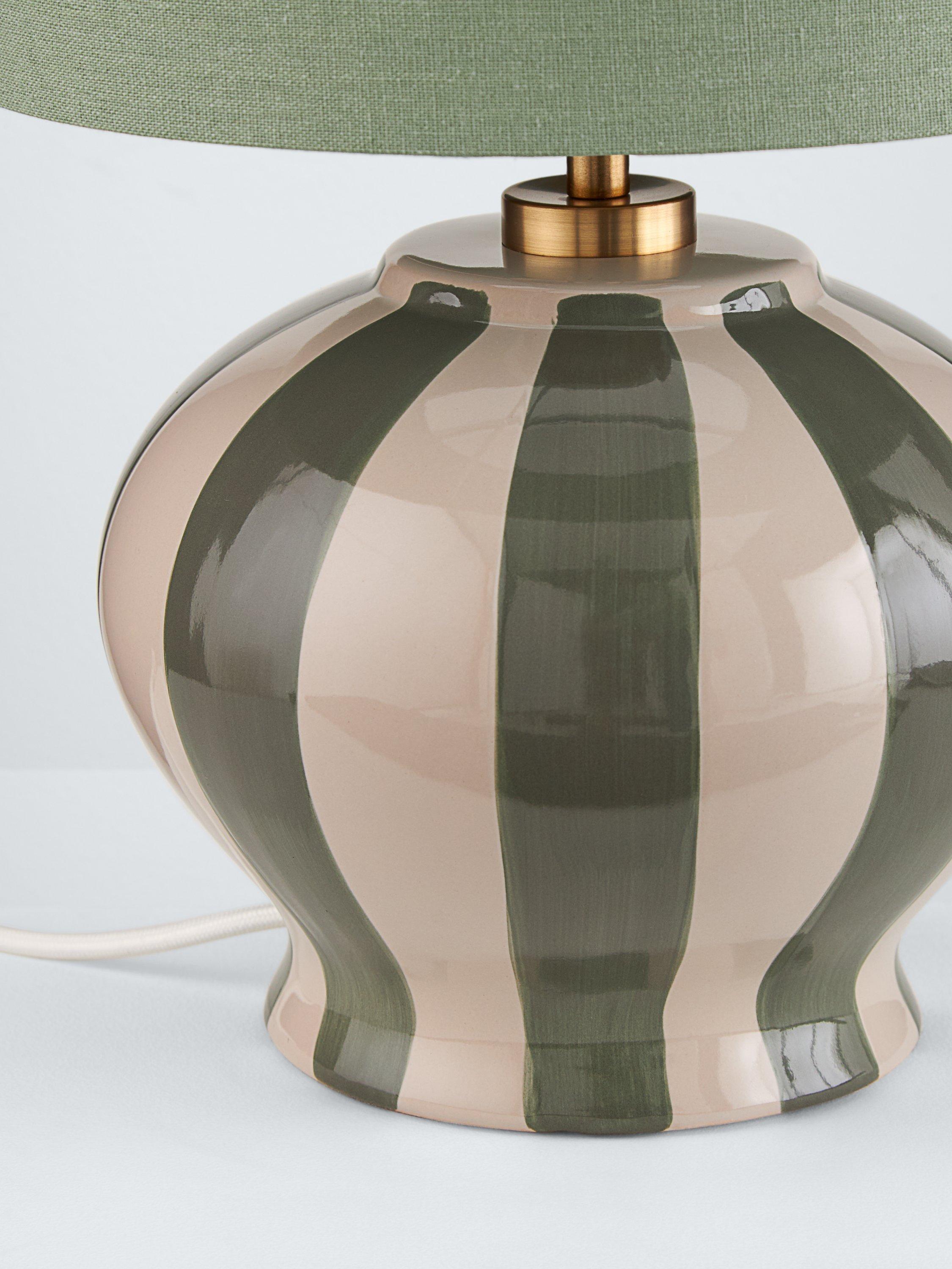 With colourful hand-painted stripes and a complementary lampshade, this striking lamp can be used in bedrooms, lounges and hallways for a maximalist look. Comes with a braided cable in a neutral tone.