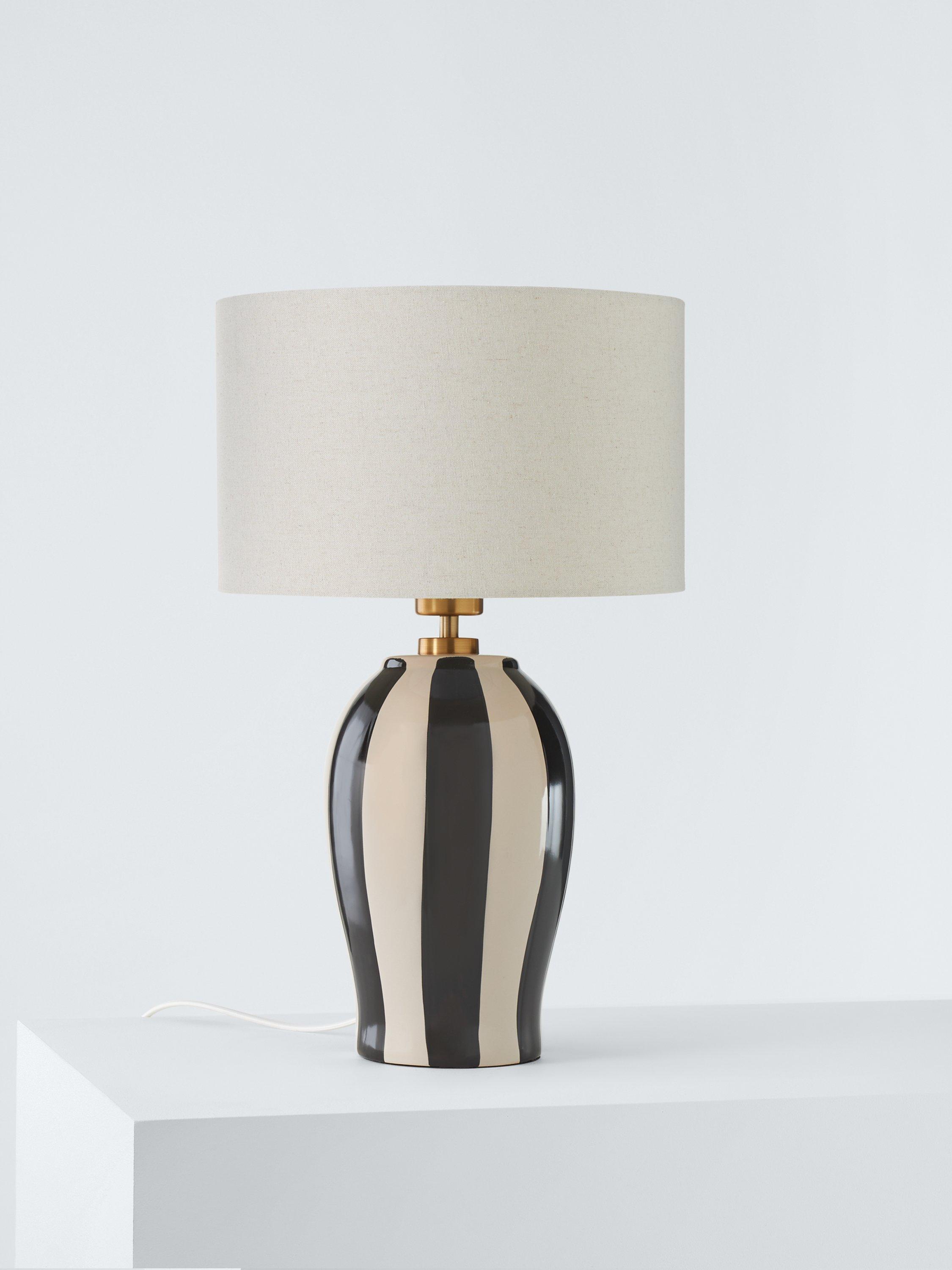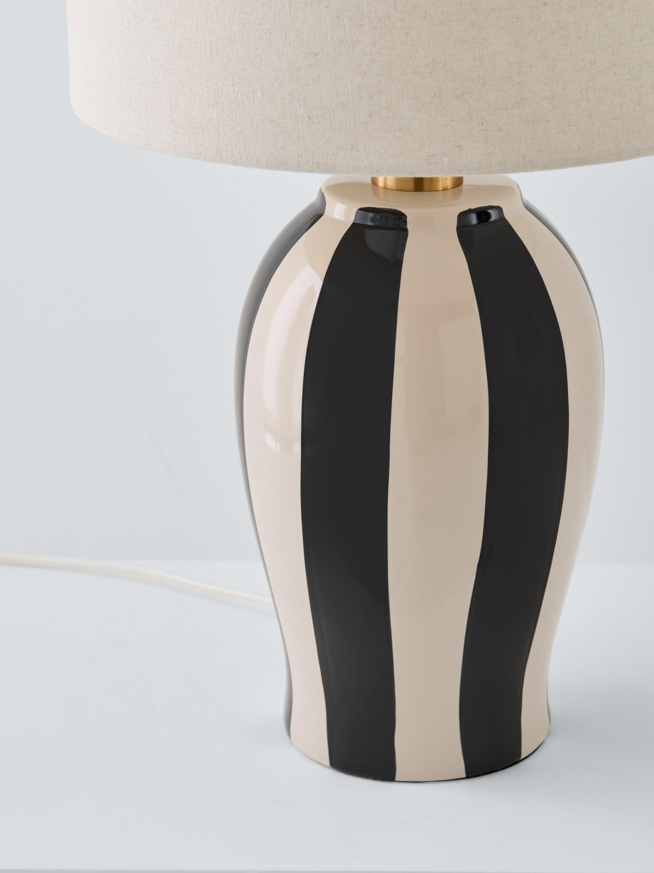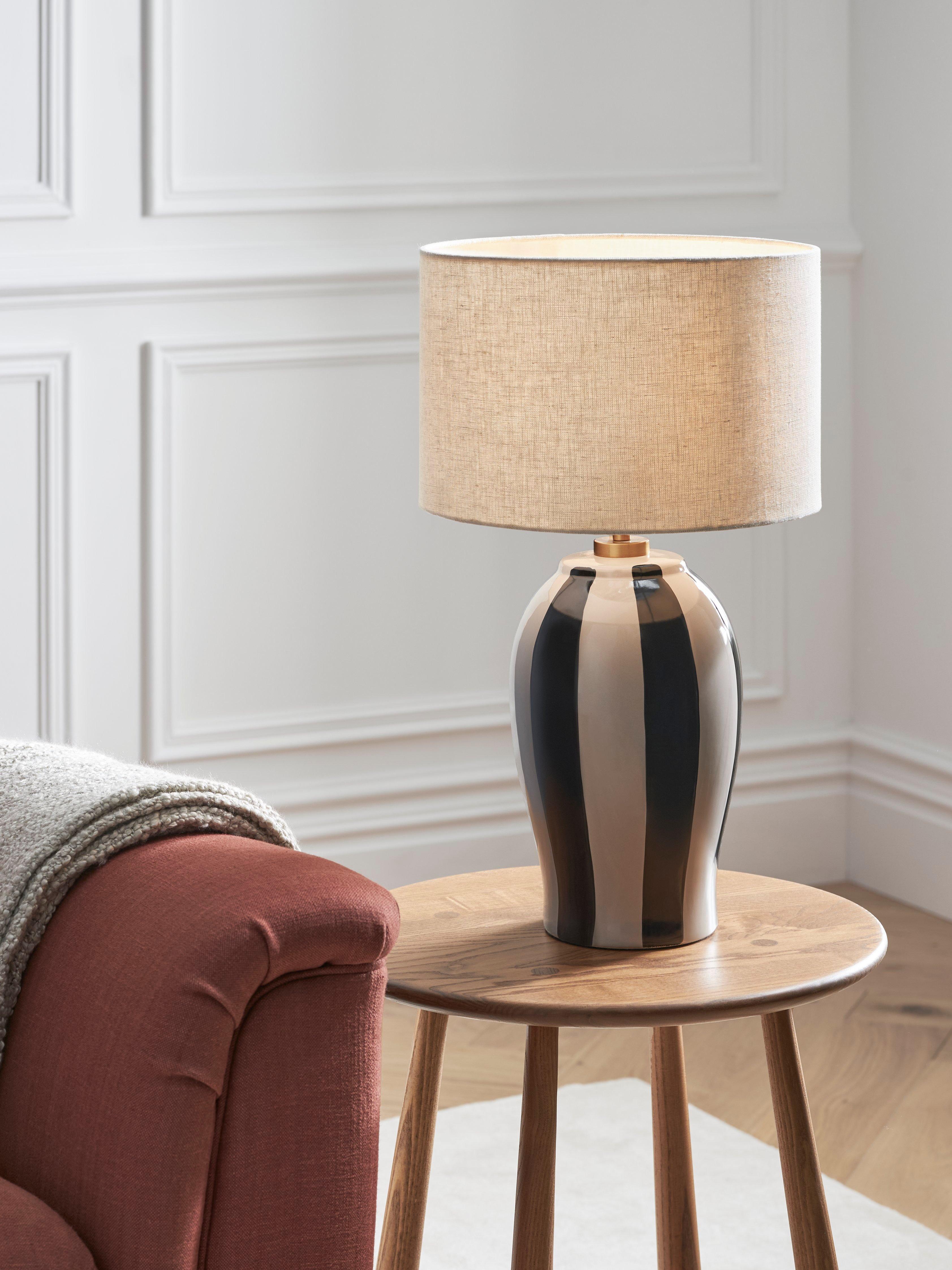 With colourful hand-painted stripes and a complementary lampshade, this striking lamp can be used in bedrooms, lounges and hallways for a maximalist look. Comes with a braided cable in a neutral tone.