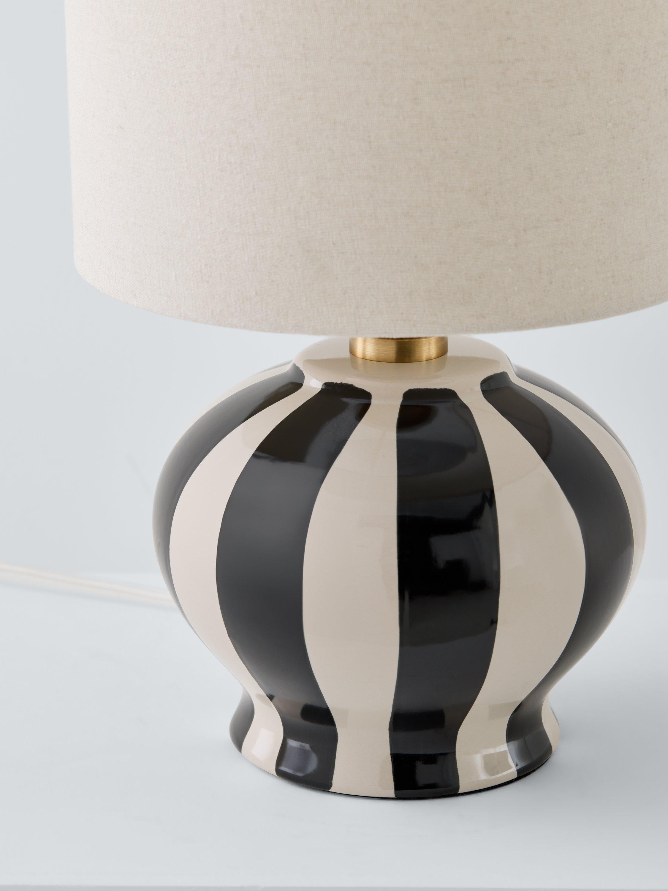 With colourful hand-painted stripes and a complementary lampshade, this striking lamp can be used in bedrooms, lounges and hallways for a maximalist look. Comes with a braided cable in a neutral tone.