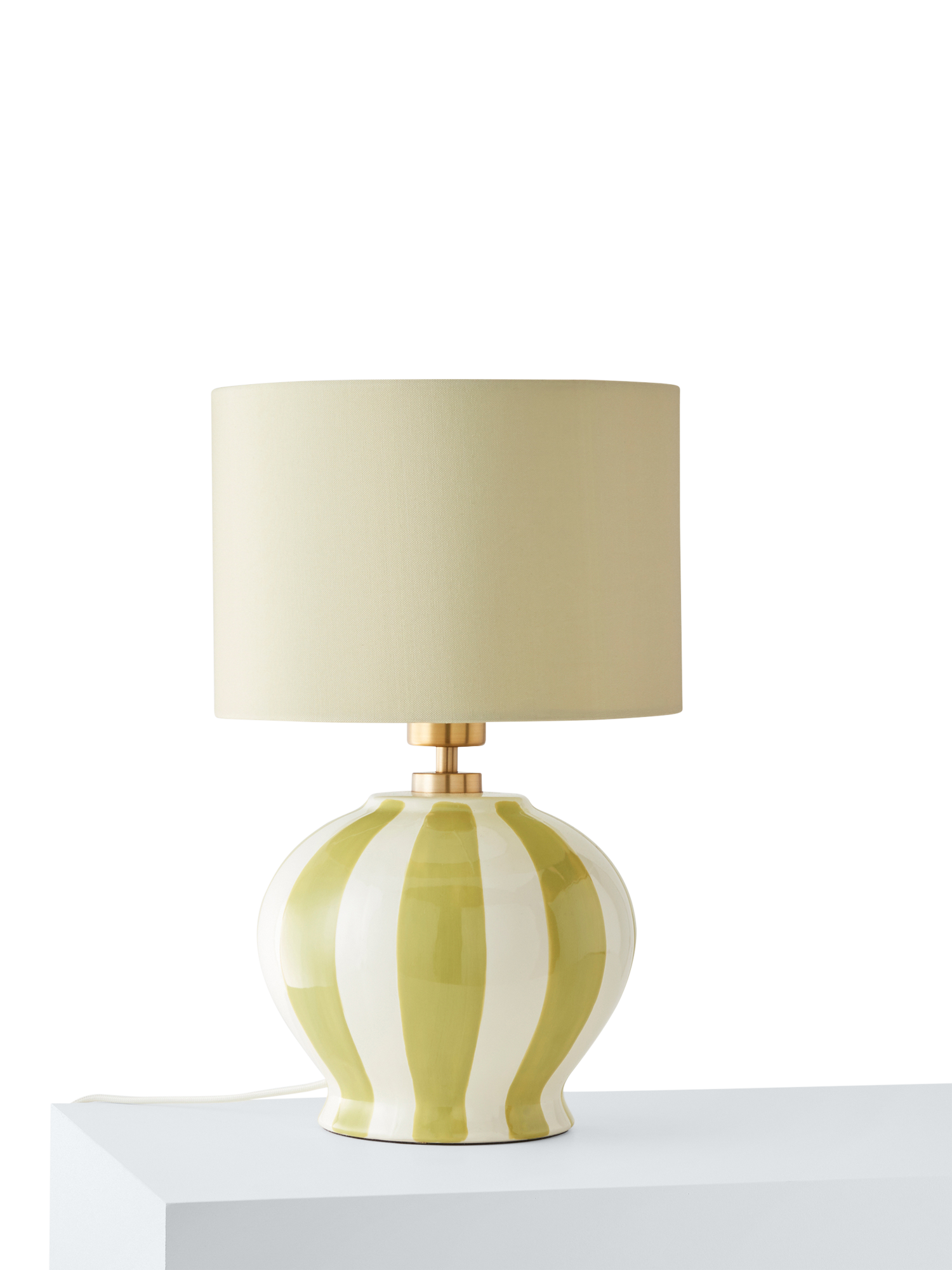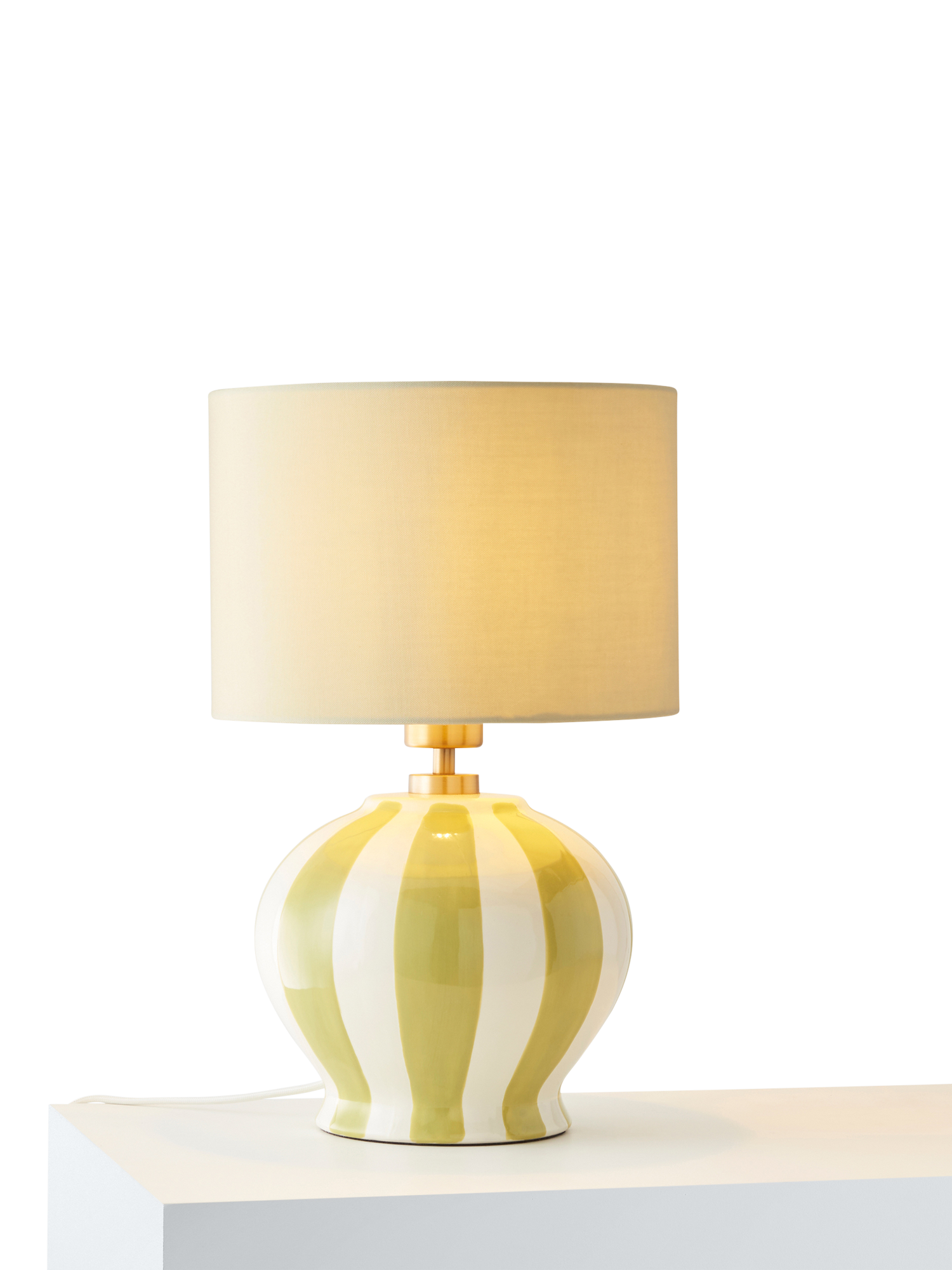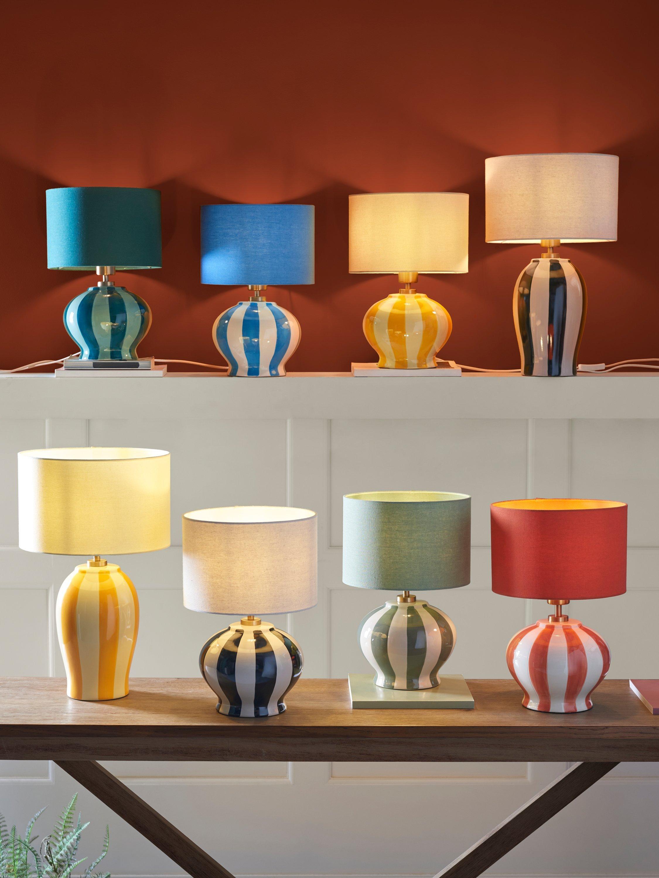 With colourful hand-painted stripes and a complementary lampshade, this striking lamp can be used in bedrooms, lounges and hallways for a maximalist look. Comes with a braided cable in a neutral tone.