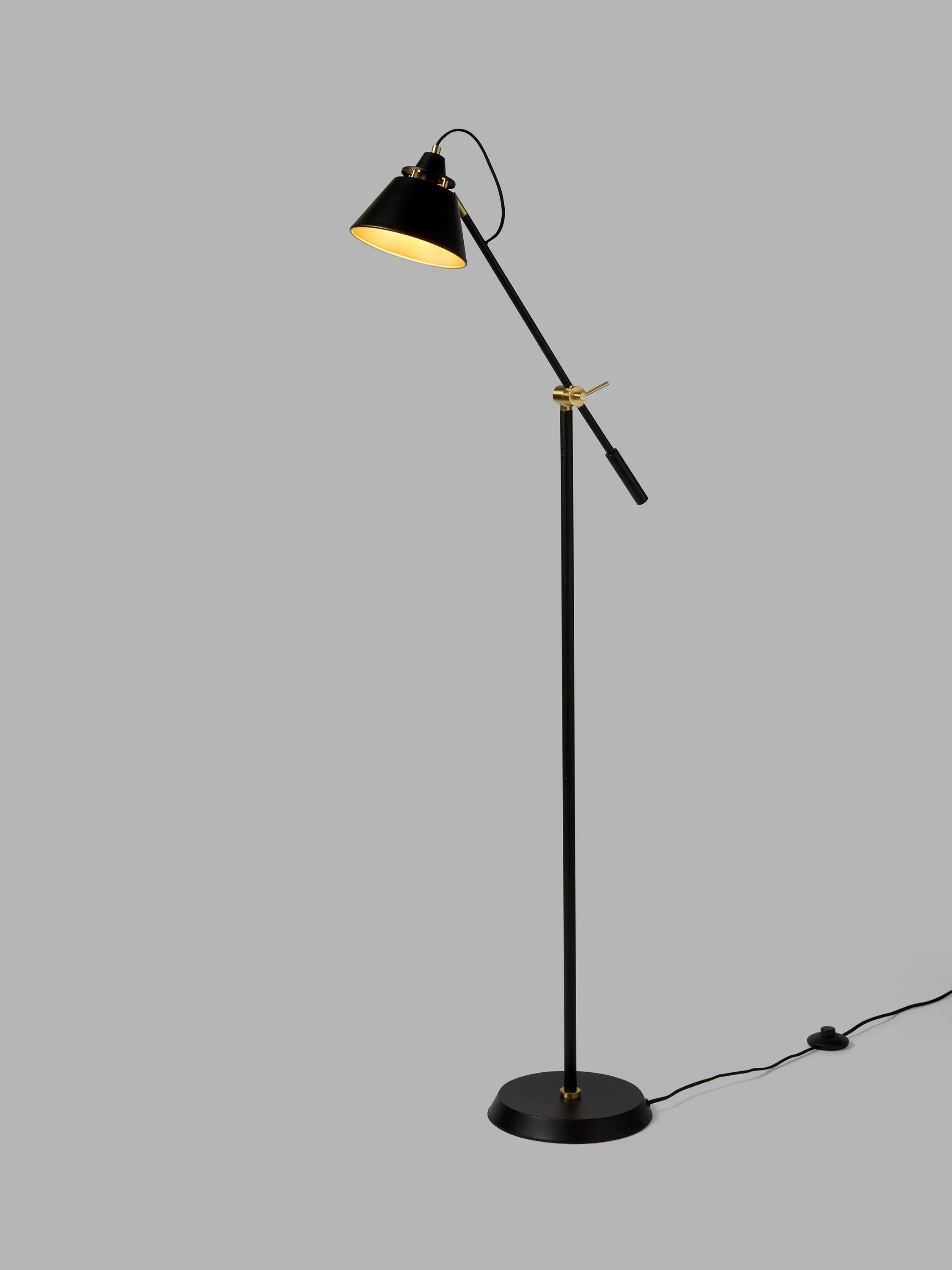 A brilliant option for your reading nook, we've designed this floor lamp with an adjustable arm and head so you can direct the light exactly where you need it. It's made from sturdy steel in a painted, matt finish and accented with brushed gold details. One LED bulb is required.