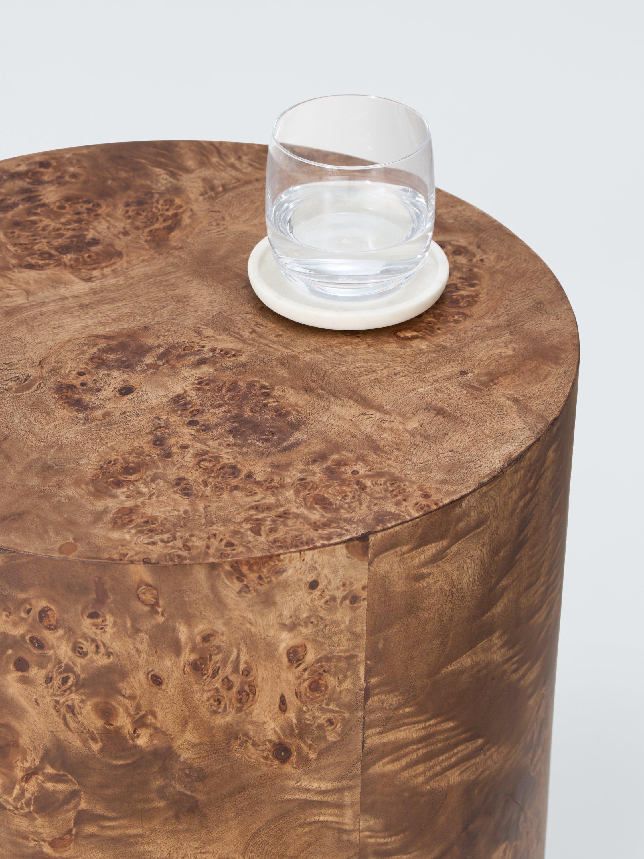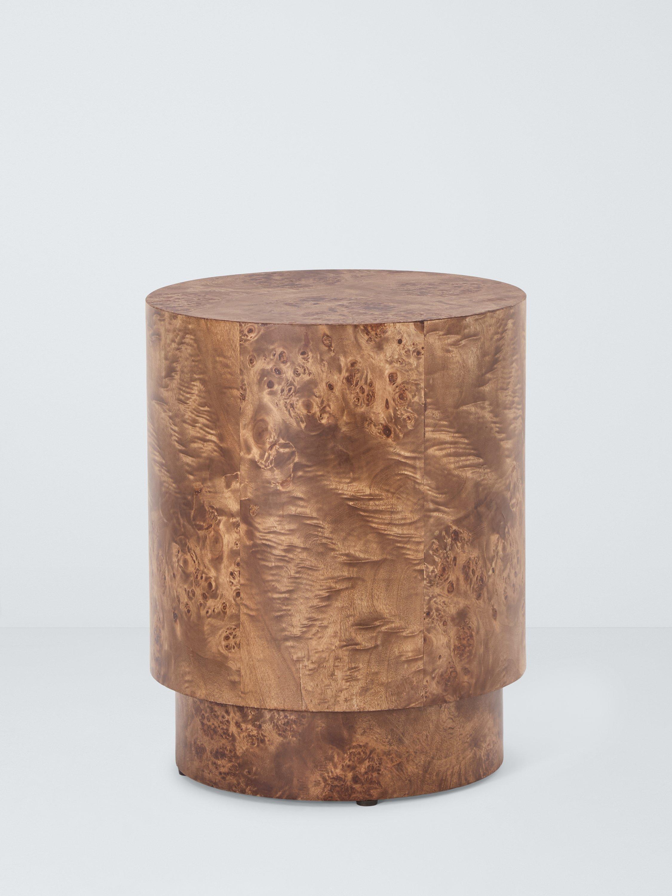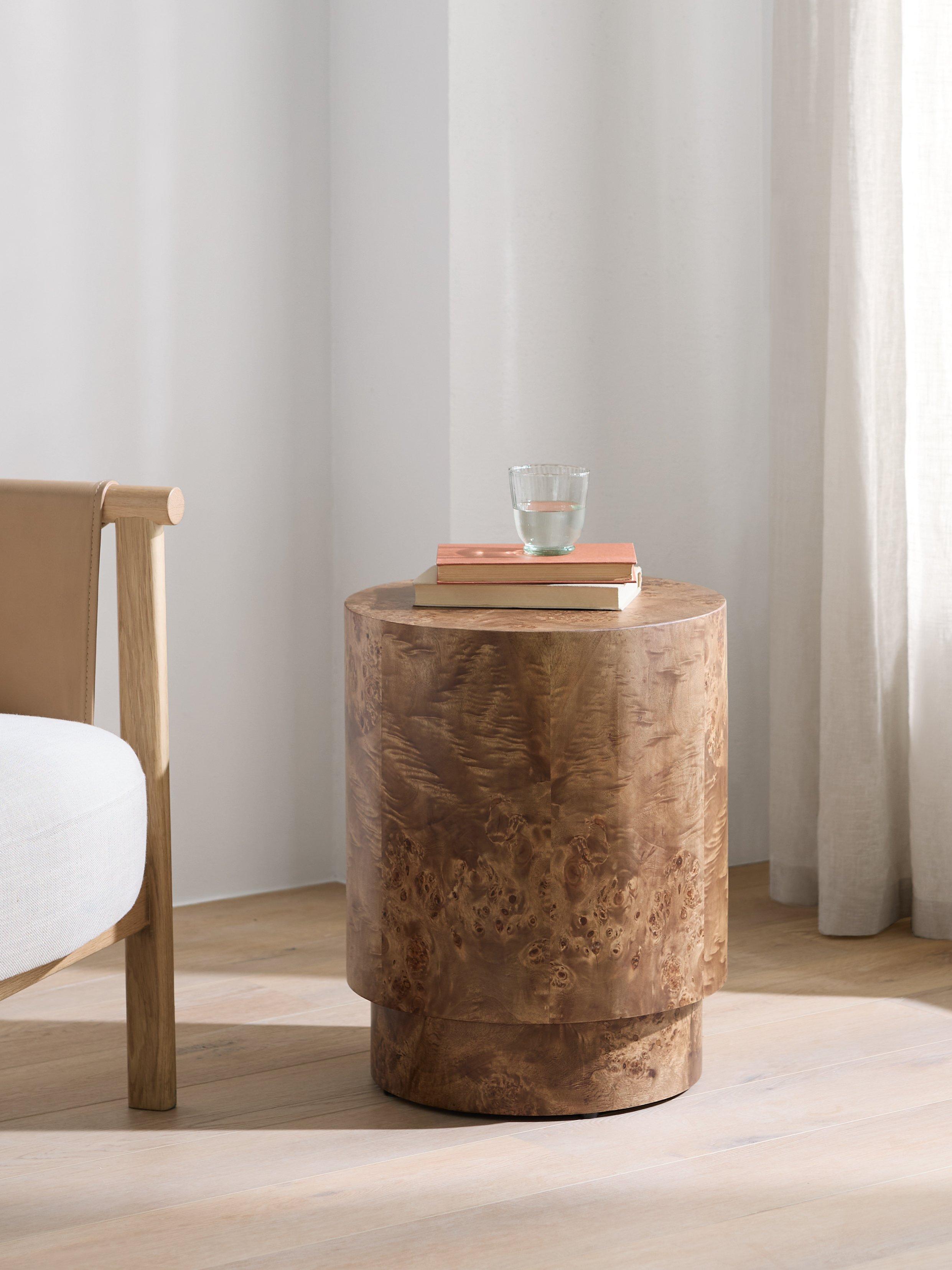 Our Burl side table features a unique woodgrain-patterned burl veneer. The natural swirling pattern adds a touch of elegance and sophistication to any room.