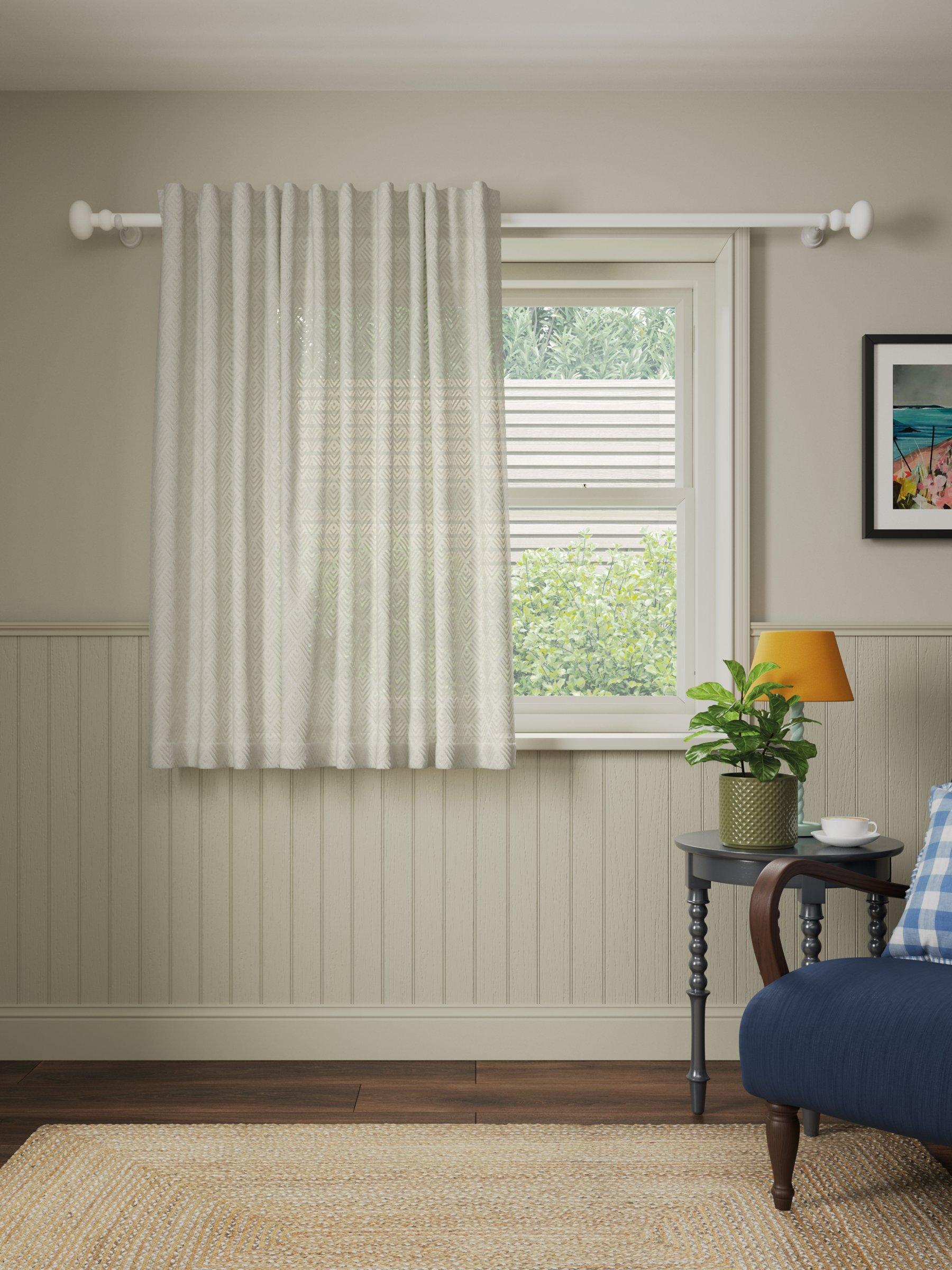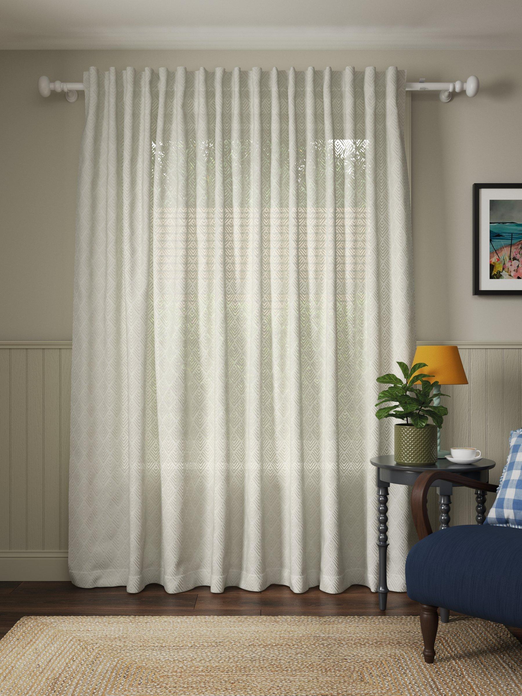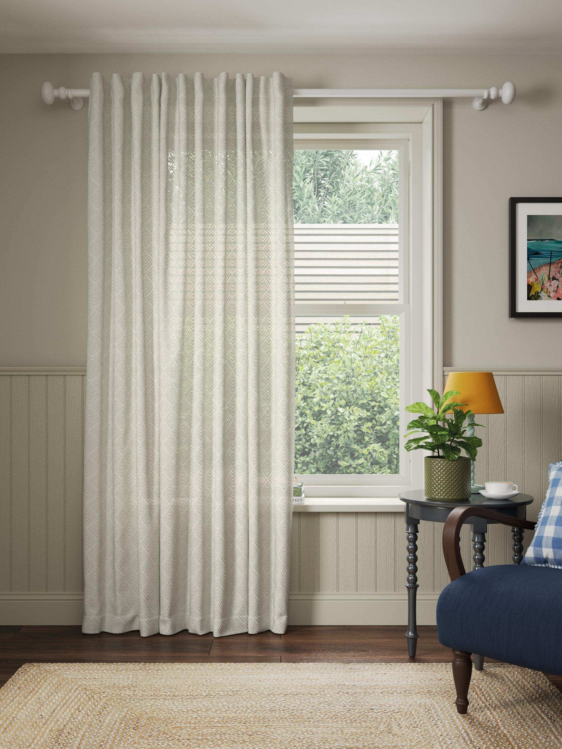 Allow softly diffused light into your room with this delicate geometric voile panel with a simple hidden tab header.