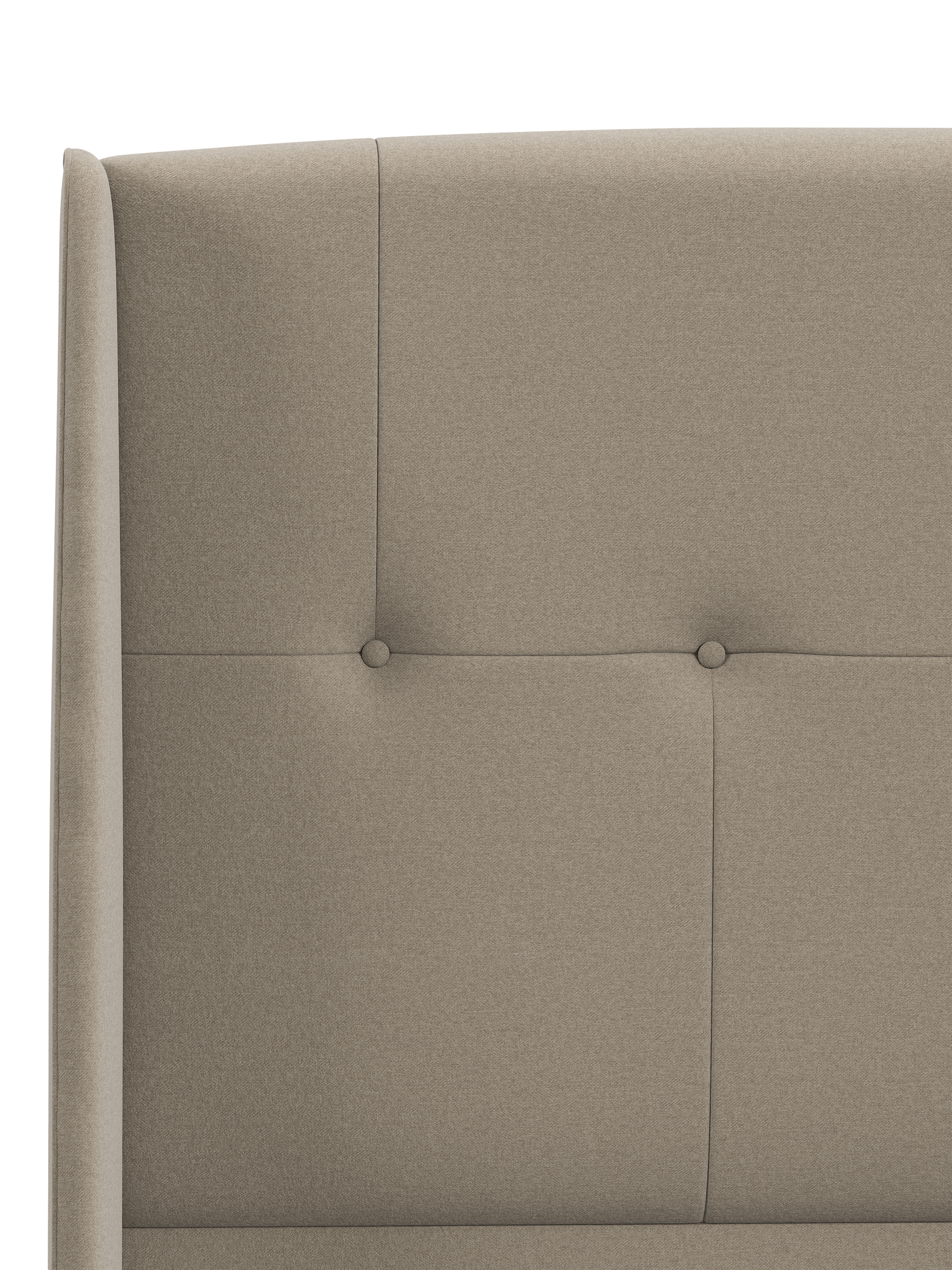 Our Button Winged headboard combines classic charm with contemporary flair, featuring a row of buttons in the centre and shaped wings at the sides. Its design seamlessly blends traditional and modern aesthetics, making it a versatile choice for any bedroom decor. This full-depth fitting has standard fixings on each side to ensure easy attachment to your divan base, and it's available in a range of fabrics and colours.