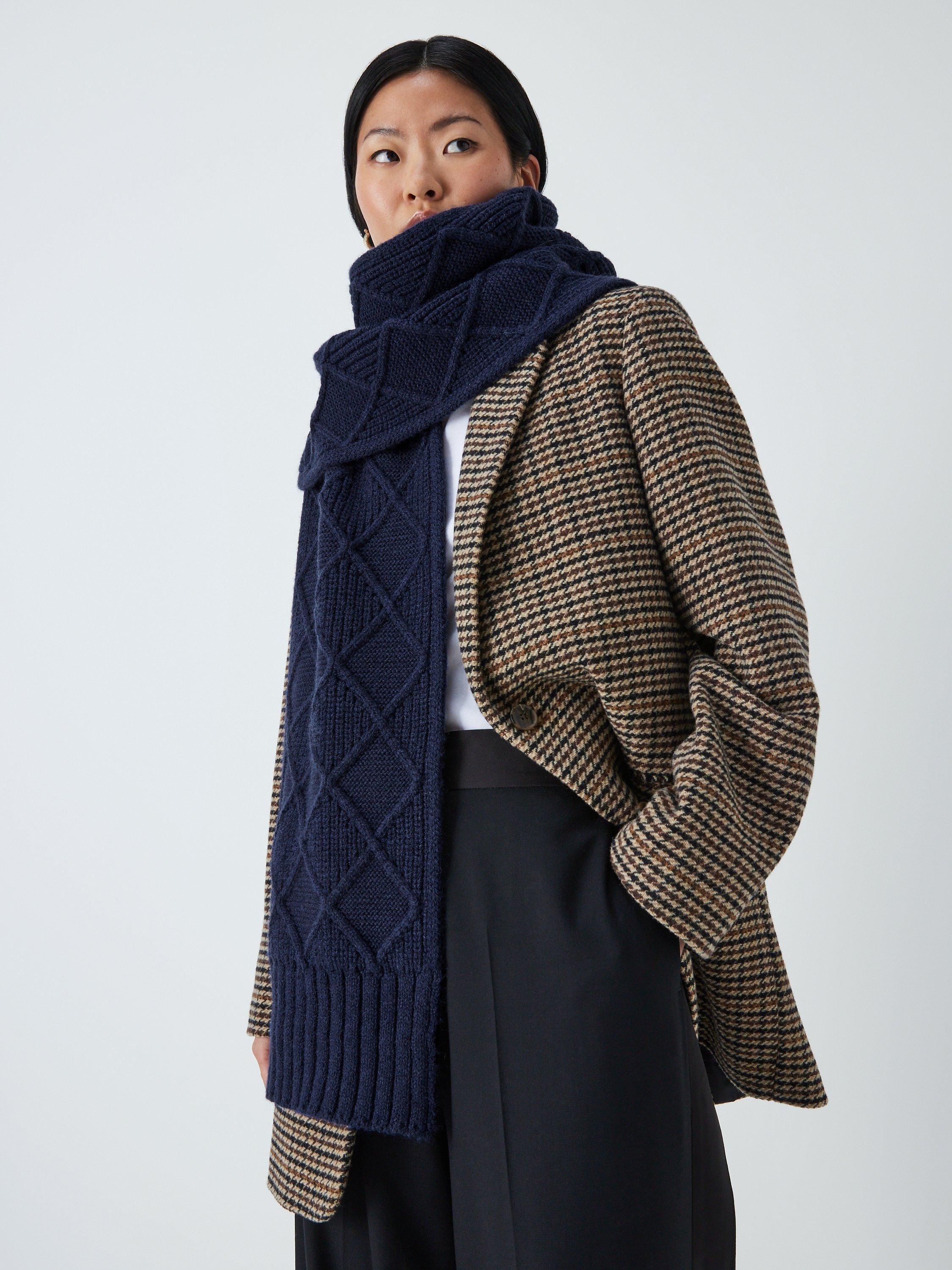 When the colder season descends, wrap up against the elements to stay snug. Made with a blend of both alpaca and sheep wool for maximum warmth and comfort, our chunky cable-knit scarf is a winter winner.