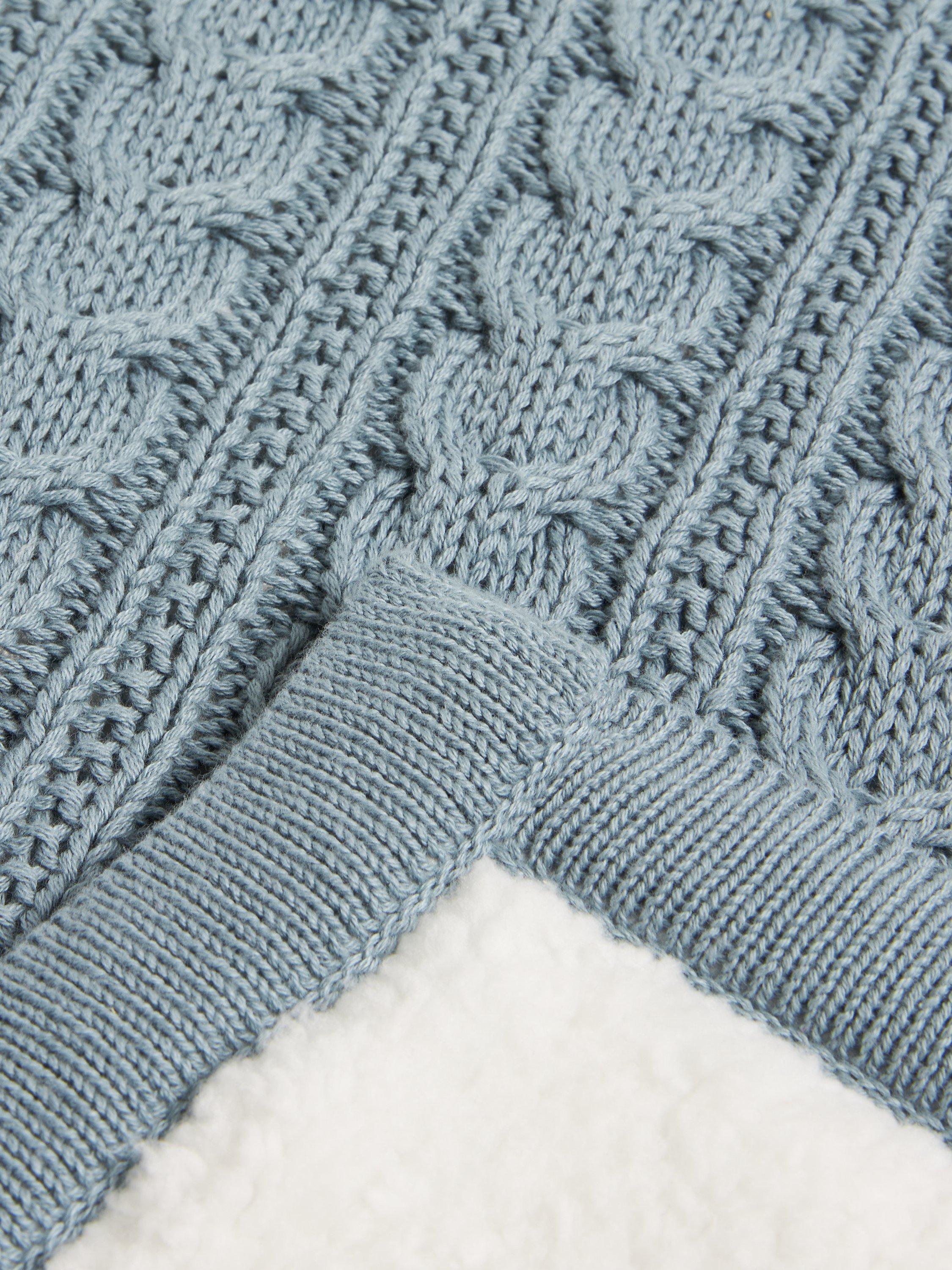 Perfect for keeping warm on a chilly evening, this throw has a timeless cable knit on the front and a soft and cosy sherpa fleece back.