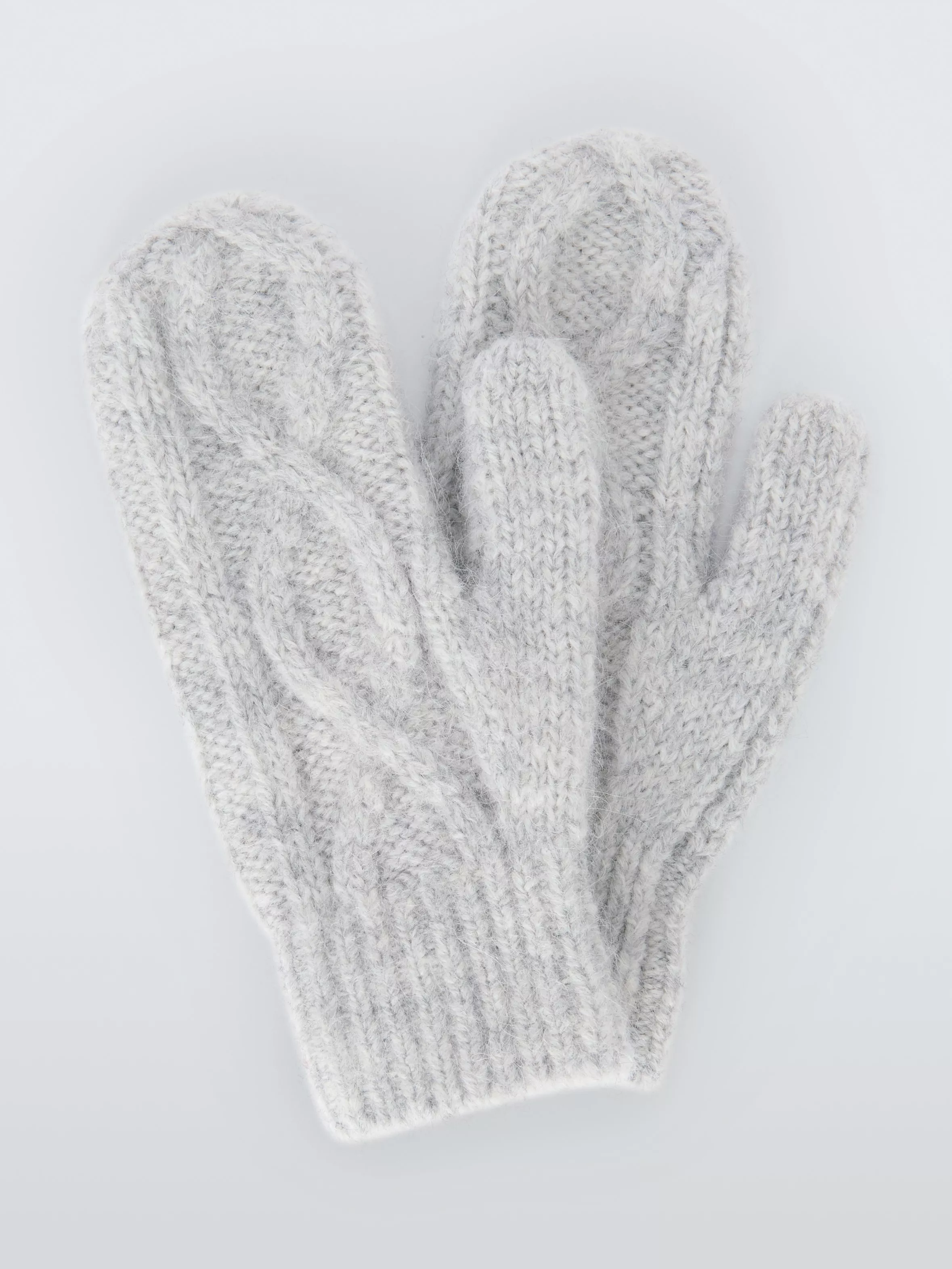 With warming wool to keep fingers toasty, these mittens have a classic cable knit design. A matching scarf is available.