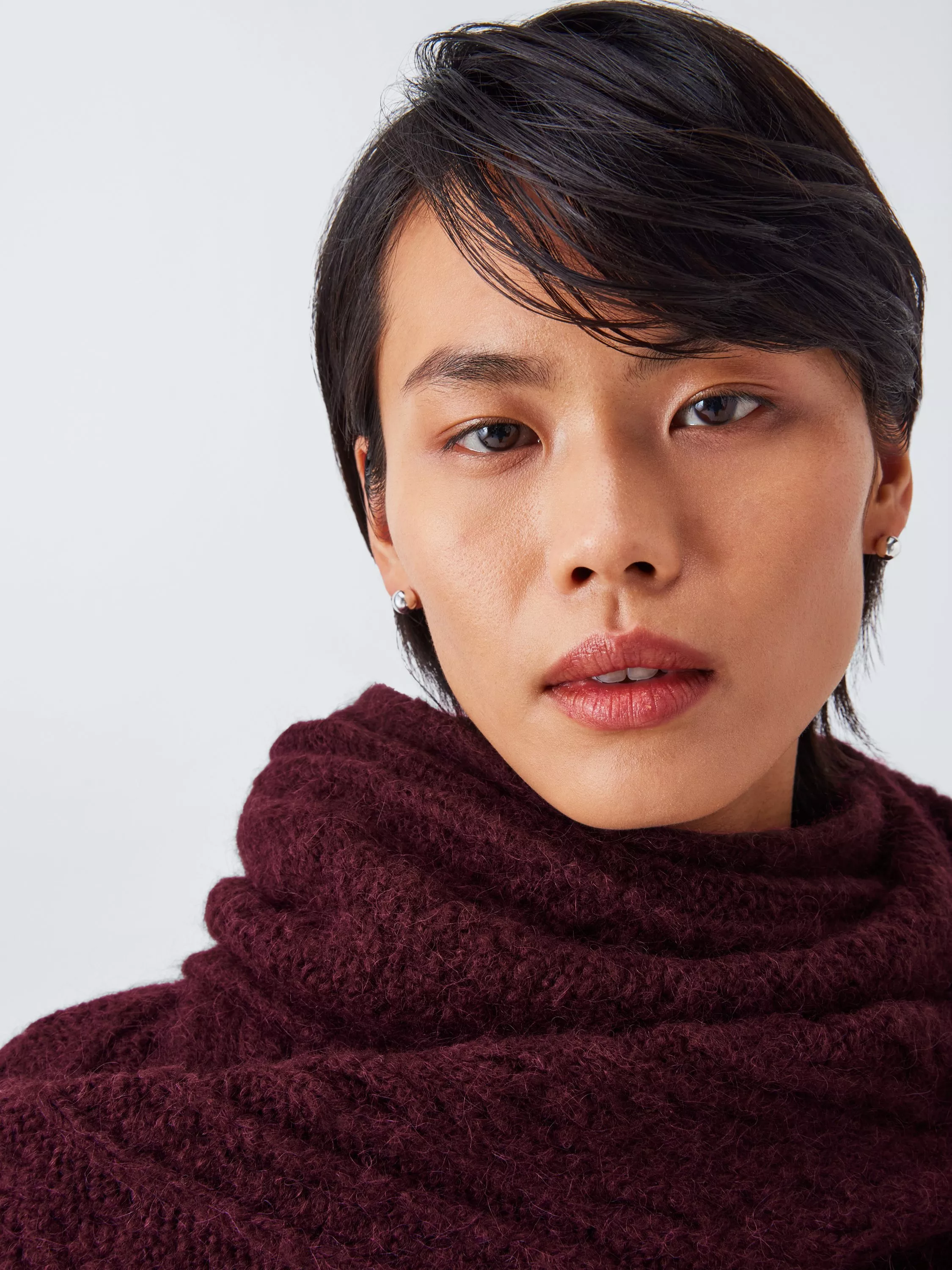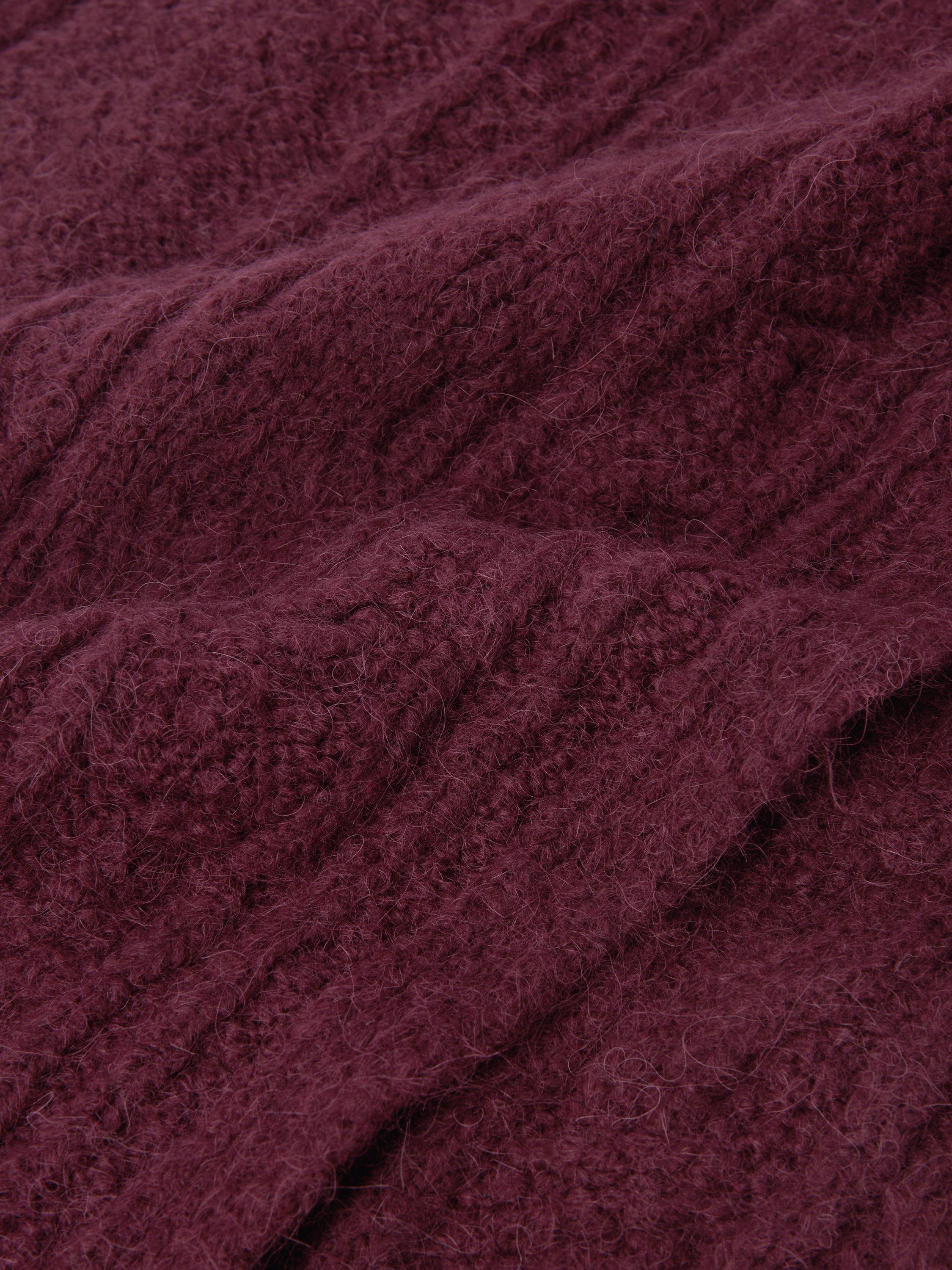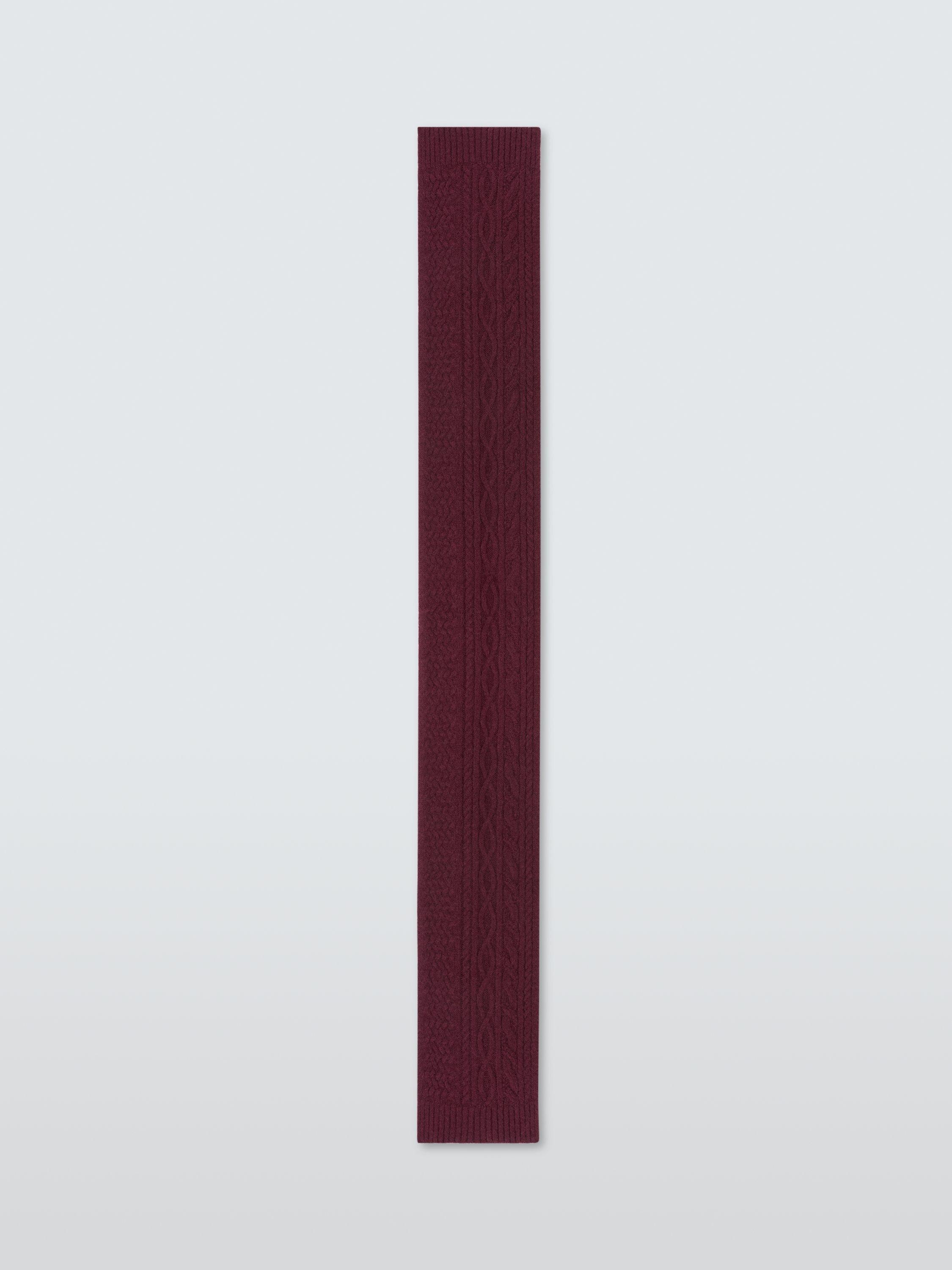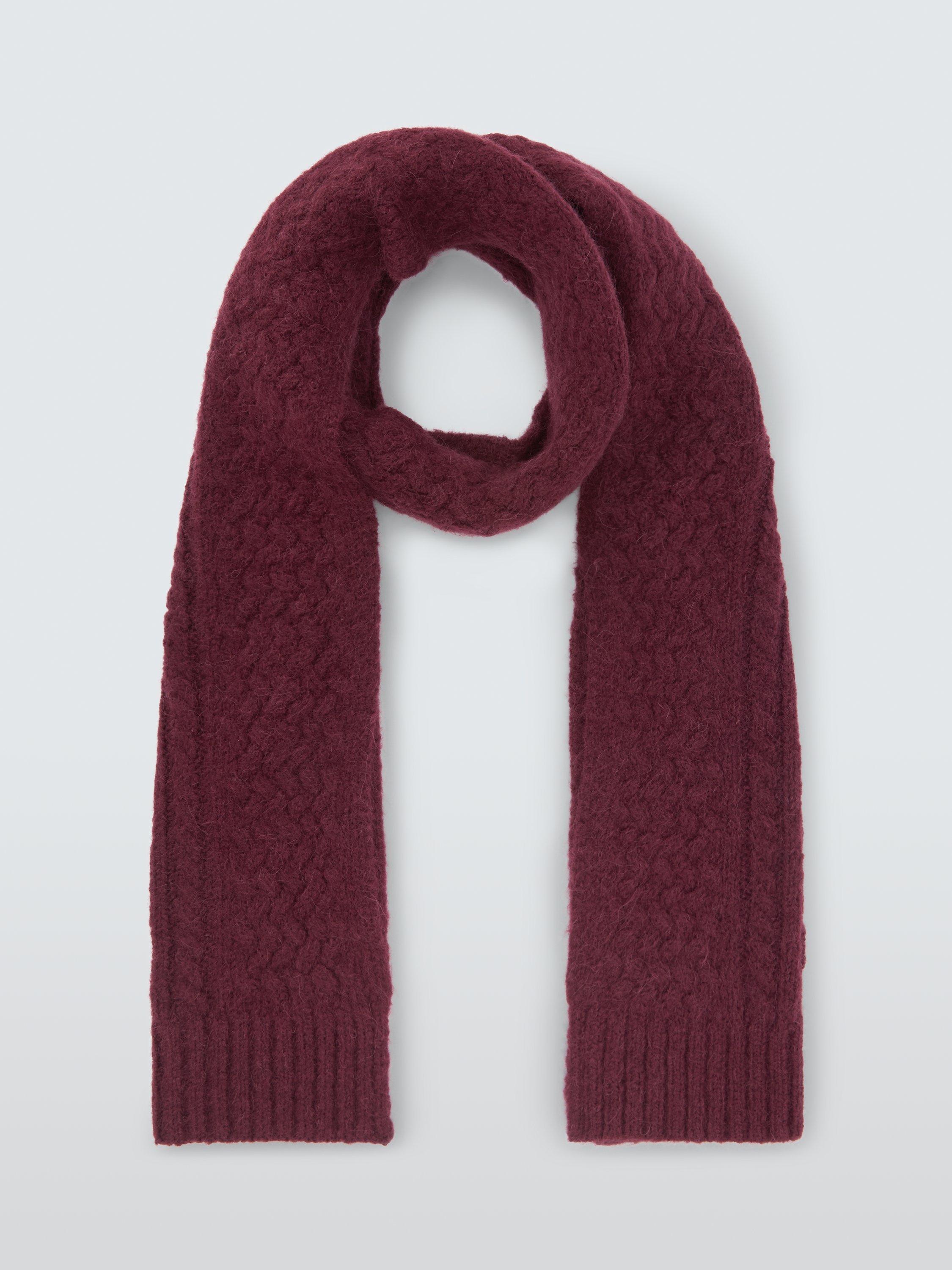 Knitted from a warming wool blend, this scarf has a classic cable knit pattern. Matching mittens are available.