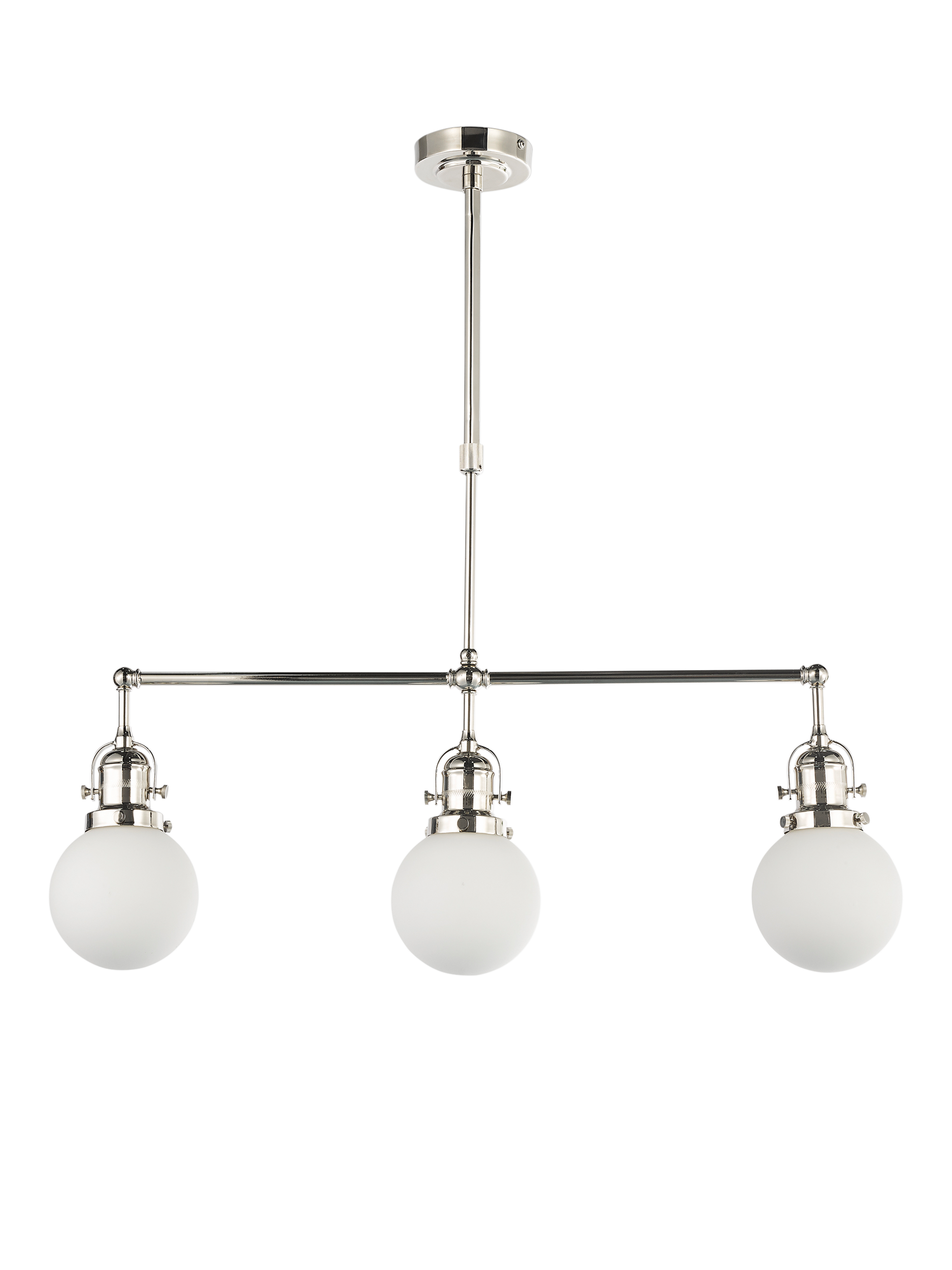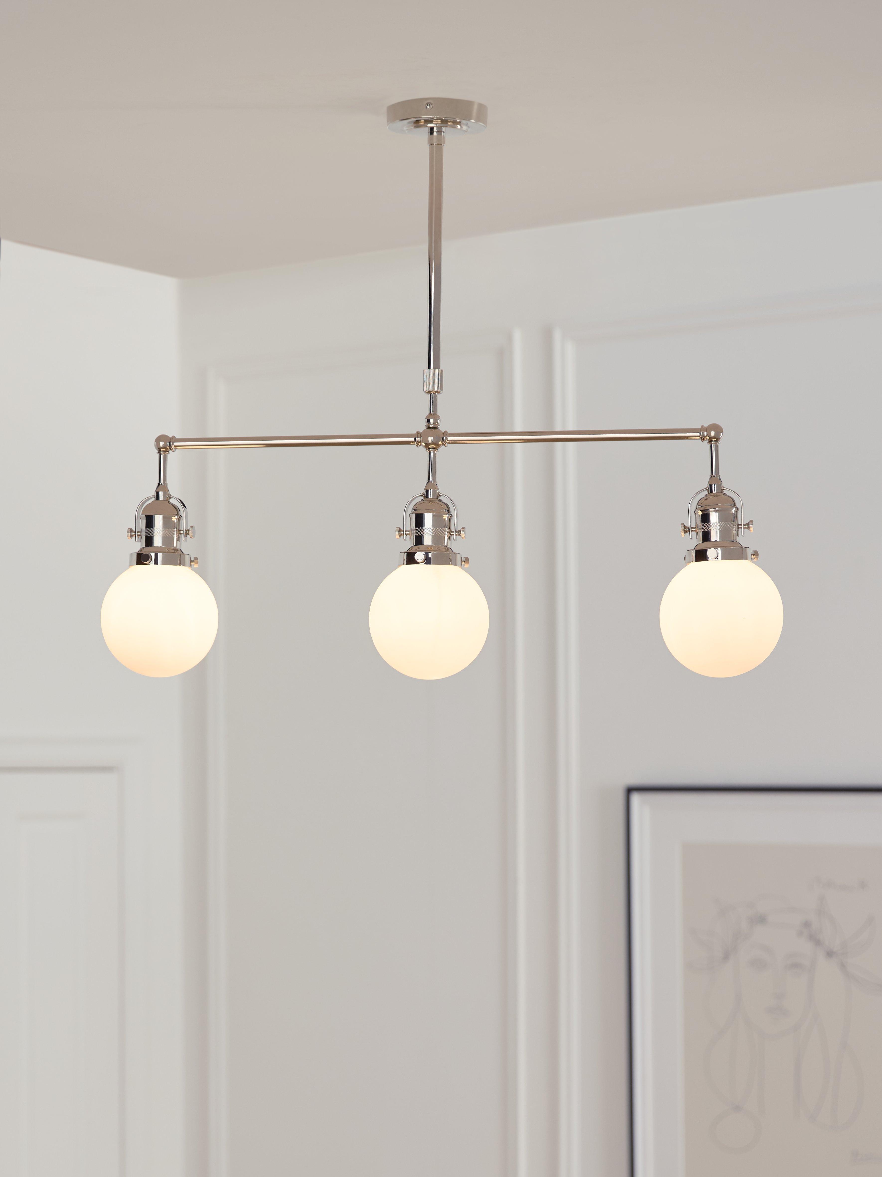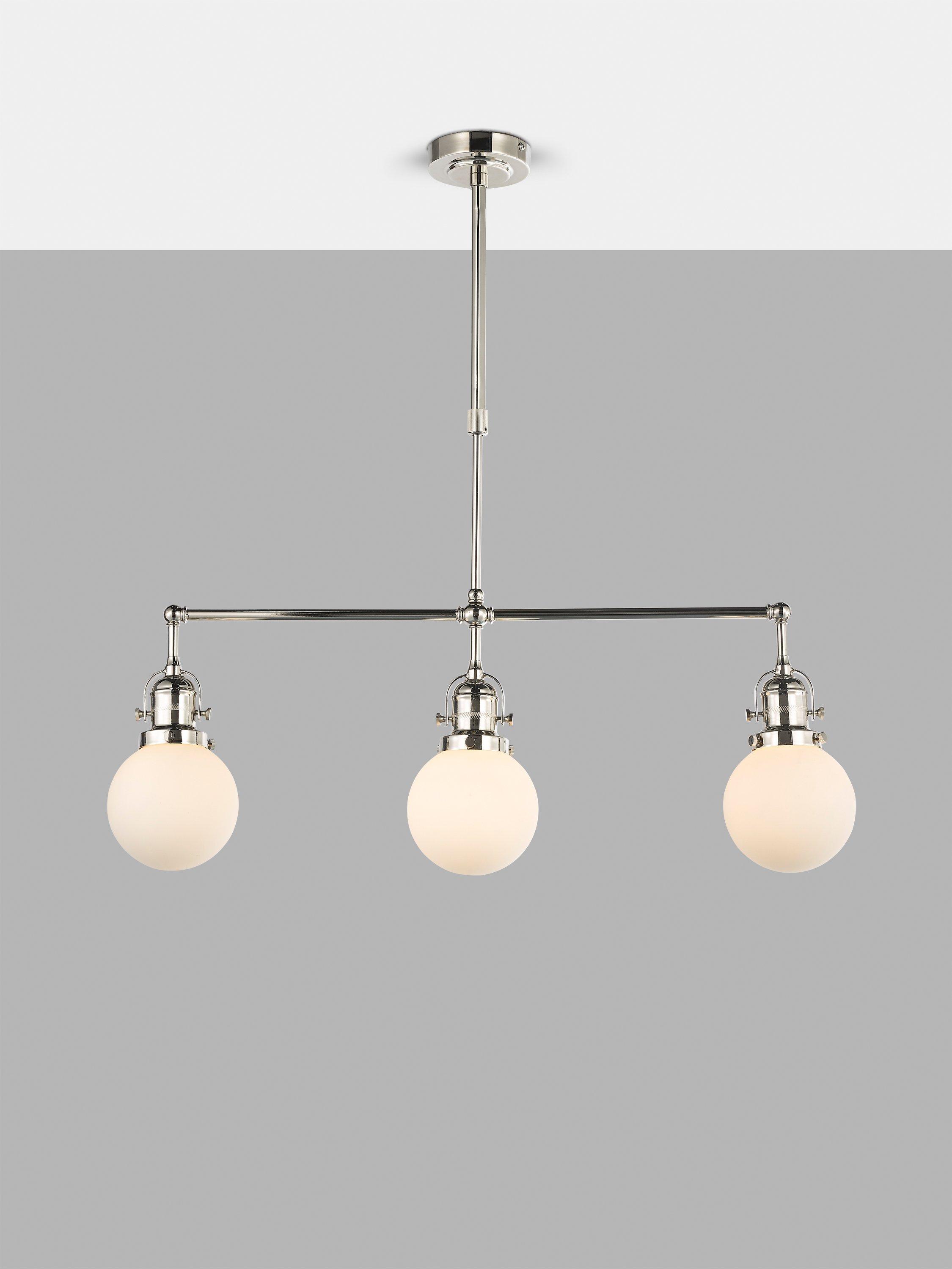 Our exciting new John Lewis Studio design is inspired by French Cafés. This diner ceiling light has three opal glass shades for plenty of light and polished chrome metal with heritage detailing. This ceiling light works well over a kitchen island or dining table to create personality.