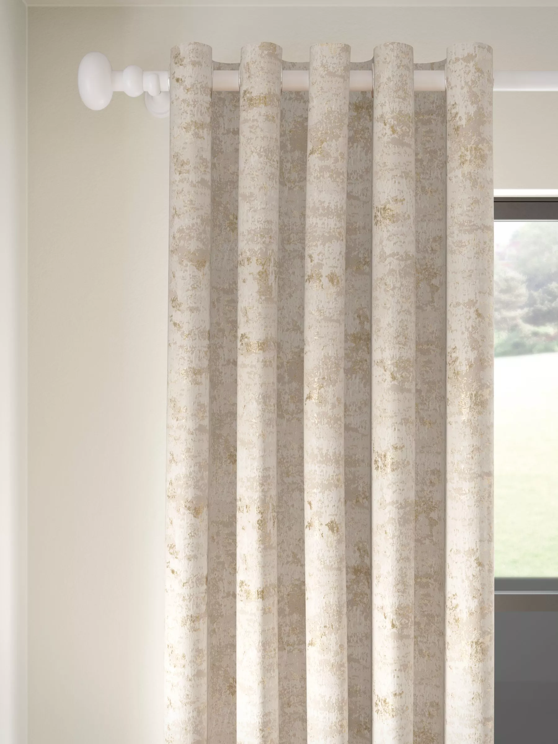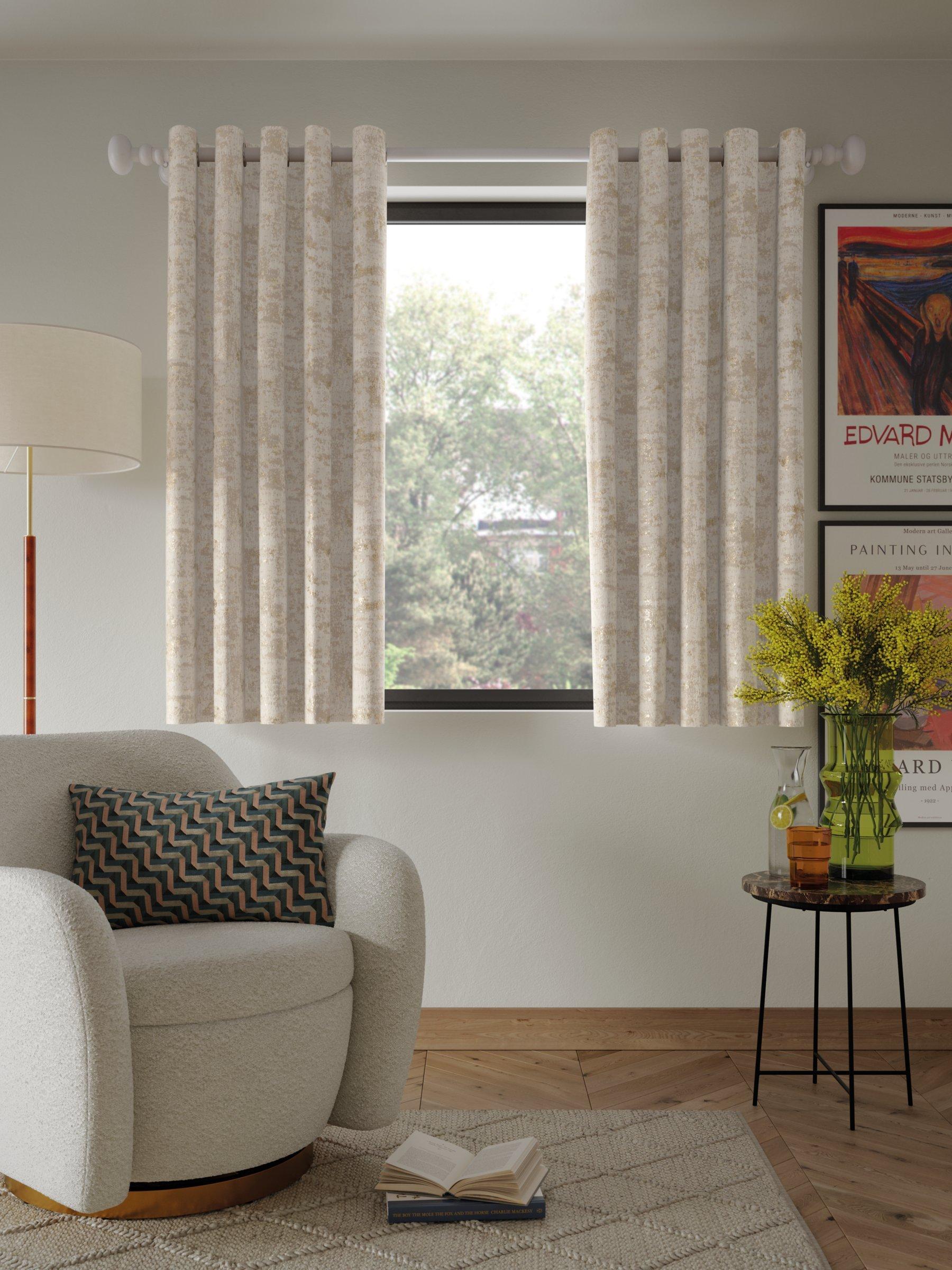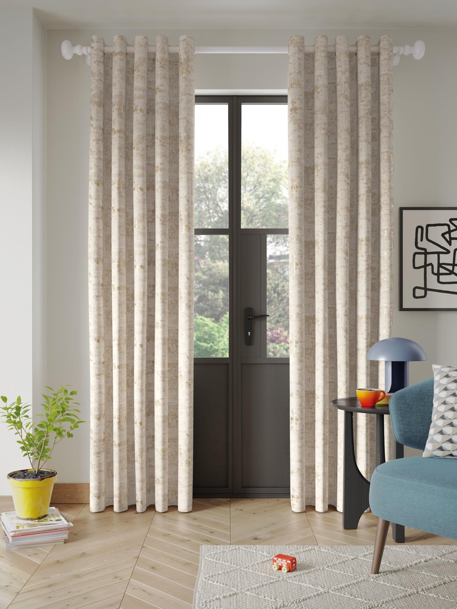 These jacquard, eyelet curtains have a textured finish with a metallic touch, fully lined for improved drape.