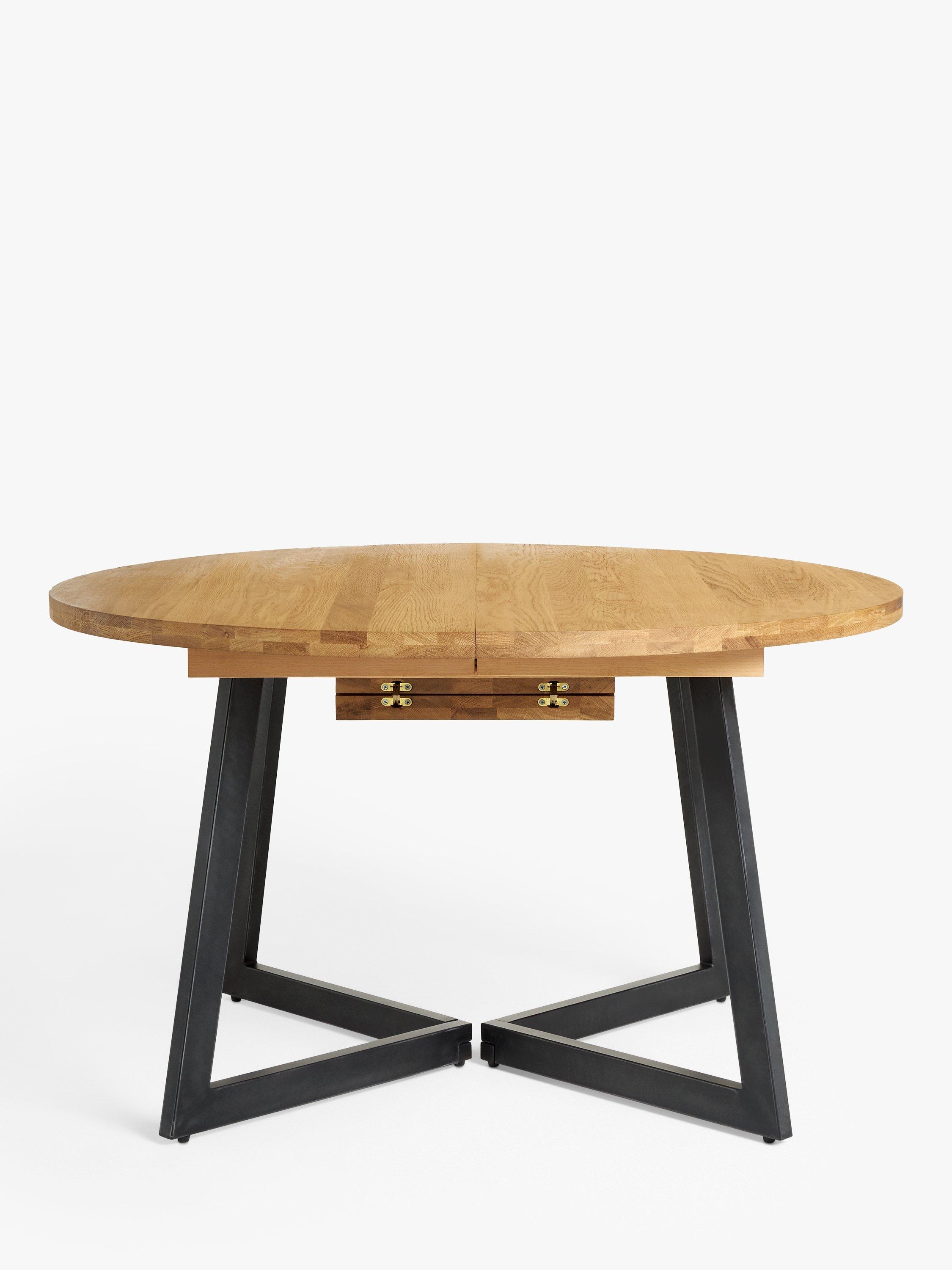 This solid, round dining table offers seating for up to six diners. Supported by a robust, welded iron base that's finished with a durable lacquer, it has a striking and industrial-inspired aesthetic. It is easy to assemble and ideal for smaller spaces.